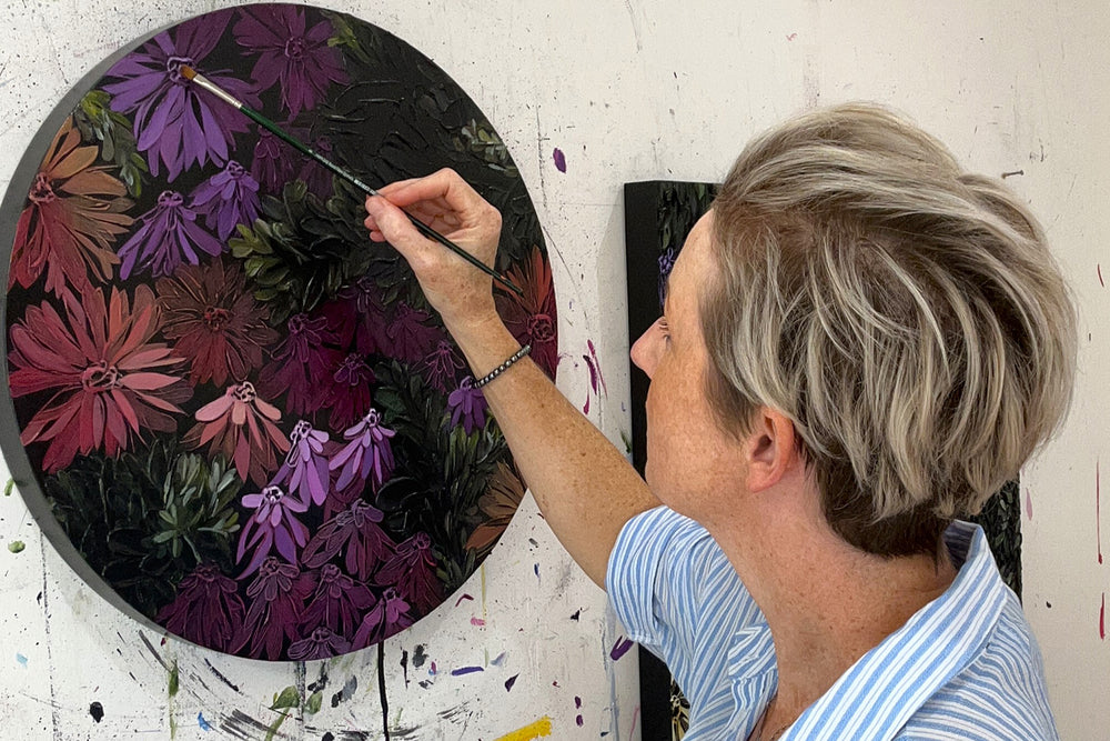 I studied interior design straight out of school, and ended up working in the fashion industry for many decades before I started painting in 2018. Leaving my job in the fashion industry was a major change of pace and lifestyle. My role was very corporate and involved extensive international travel. I had got to the point where I was burnt out and the joy had gone.