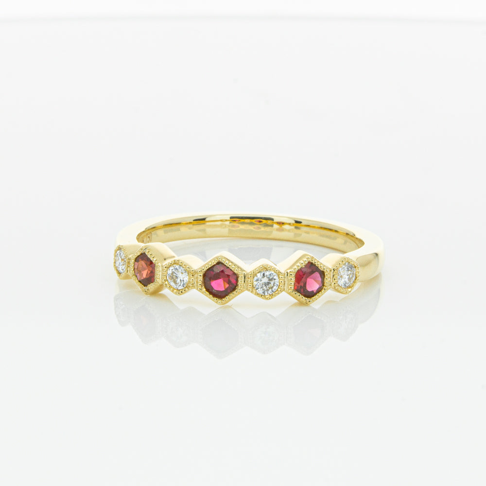 18ct Yellow Gold Ruby & Diamond Deco Band