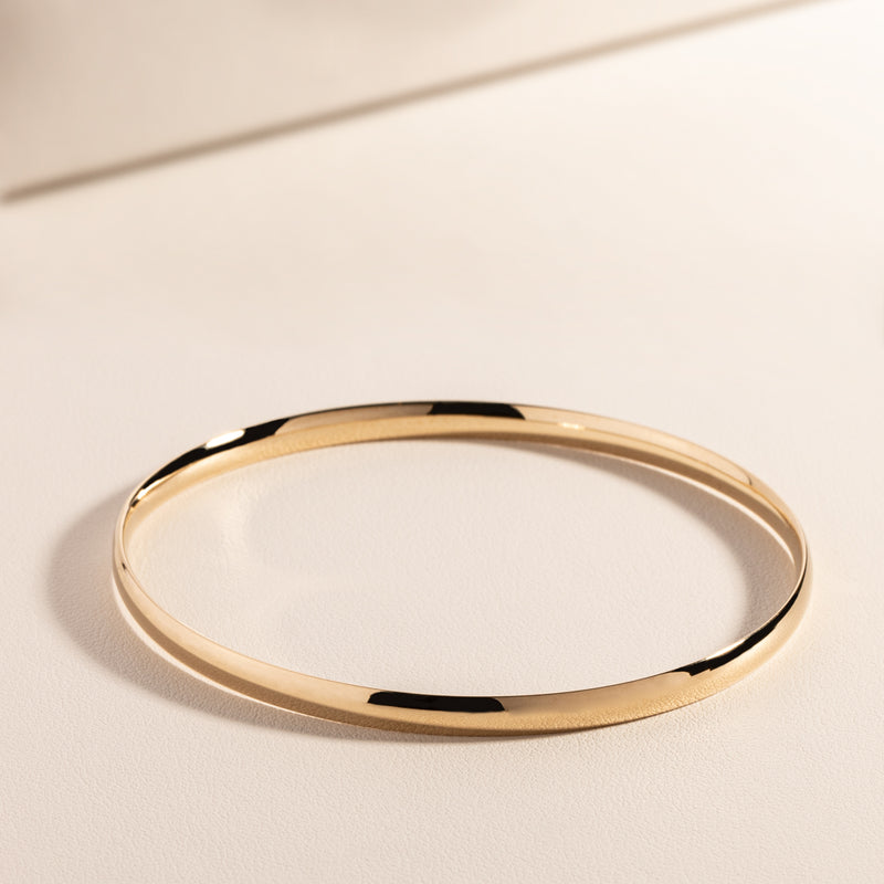A classic bangle with an elegant width of 4mm. Graceful on its own or stunning stacked with other gold bracelets.