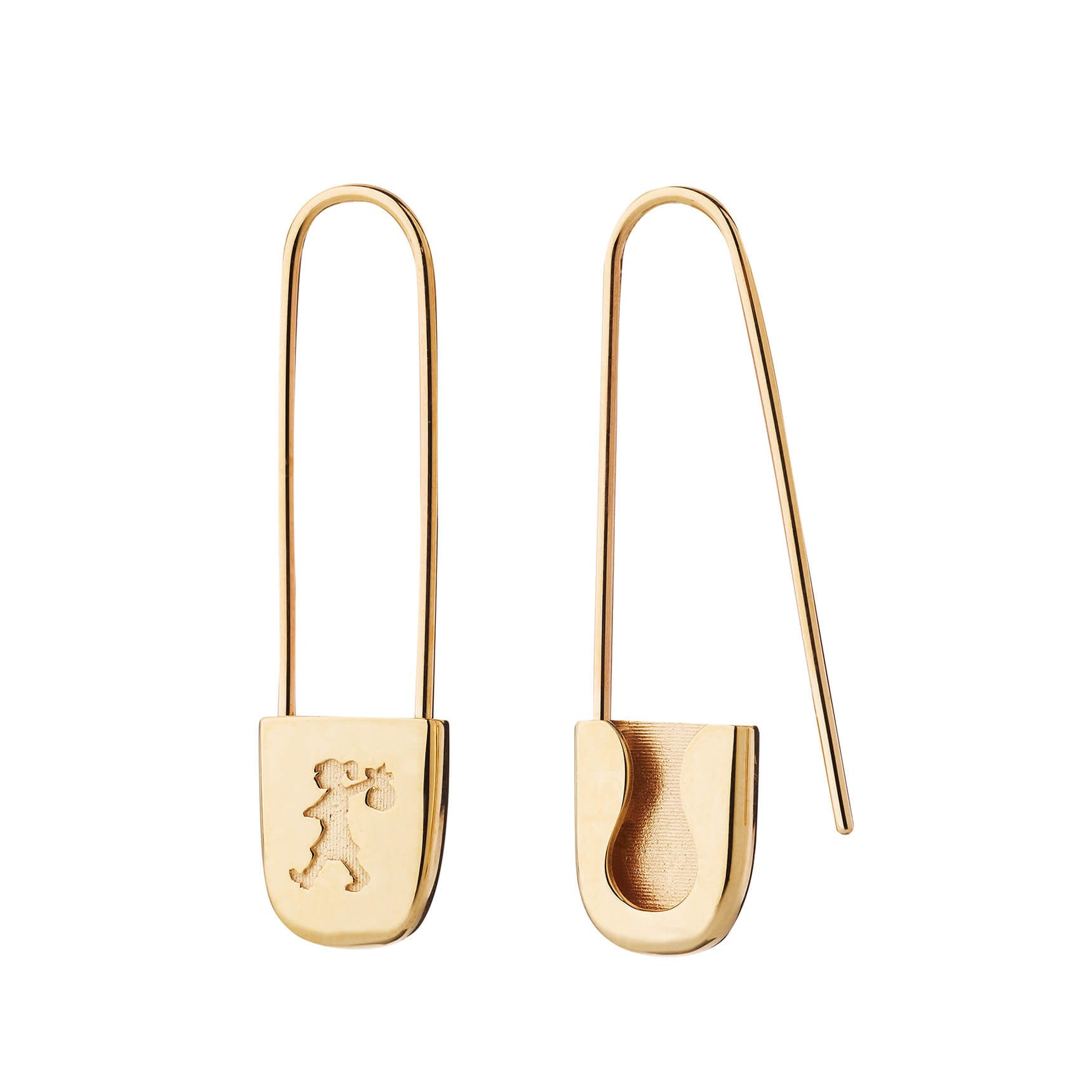 Karen Walker Runaway Safety Pin Earrings - Gold Plated
