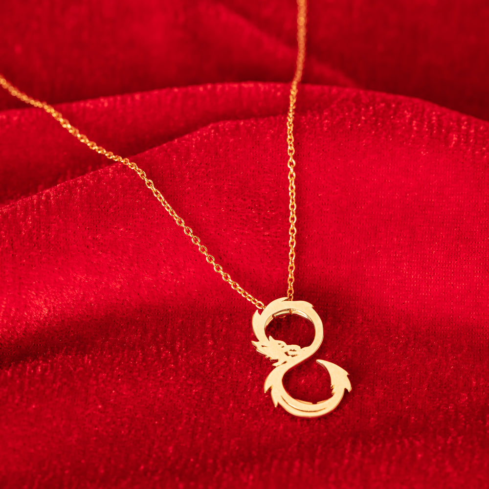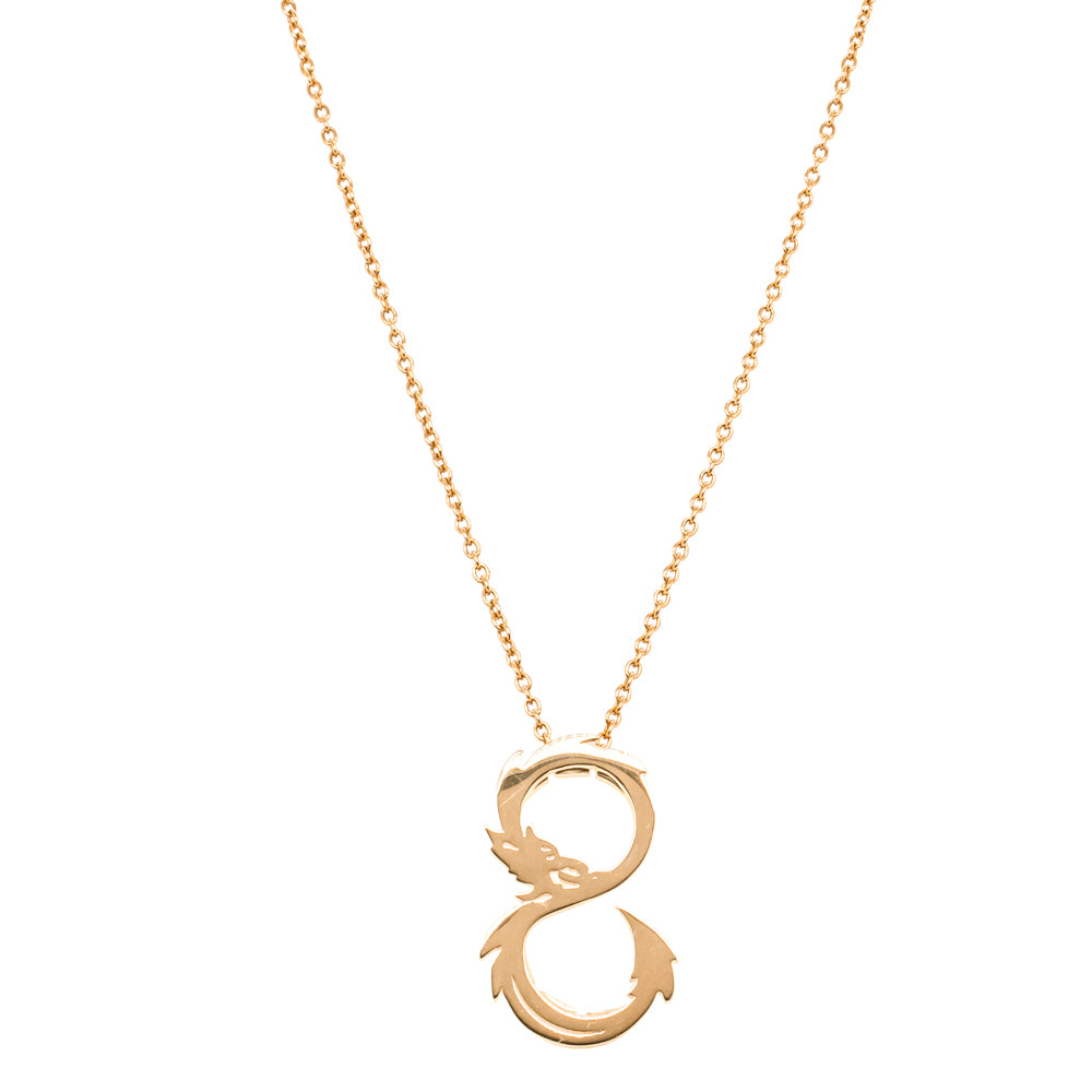 The dragon symbolises strength, good fortune, and success, making it a perfect talisman for the year ahead.  Bold yet intricately designed, our dragon gracefully hangs on a fine 9ct yellow gold cable chain.