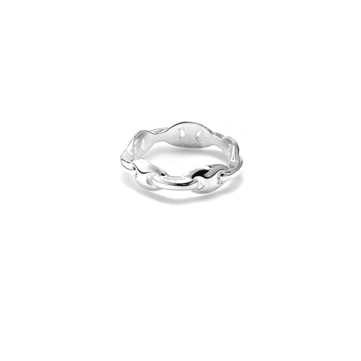 Our Maxi Mariners Ring is made in solid, high polish sterling silver. Featuring a band with chain links, this fine jewellery piece makes a statement styled on its own, or as part of a layered stack.