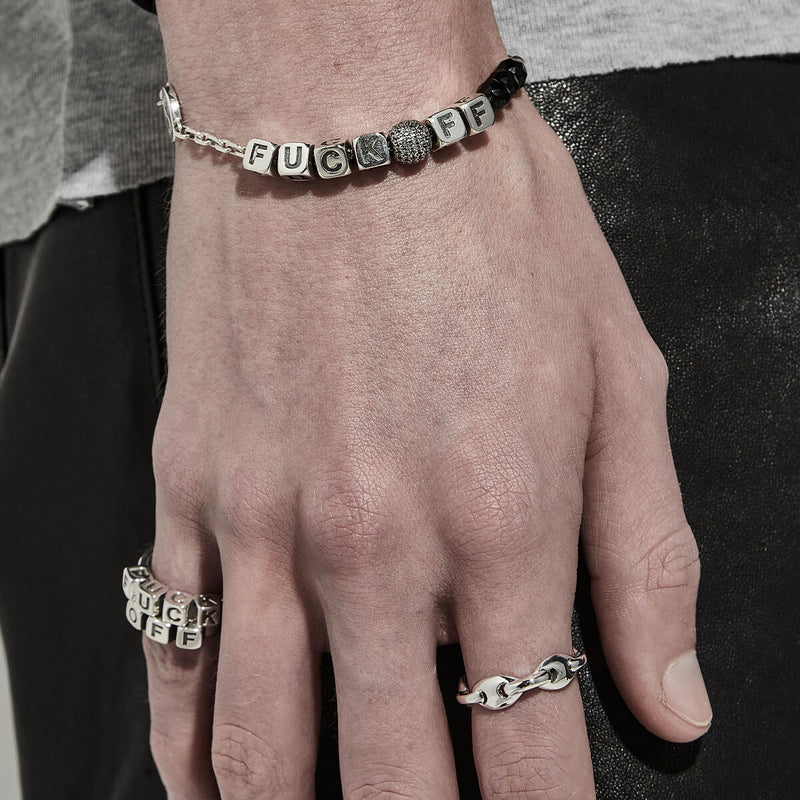 Model wearing Stolen Girlfriends Club ring and bracelet