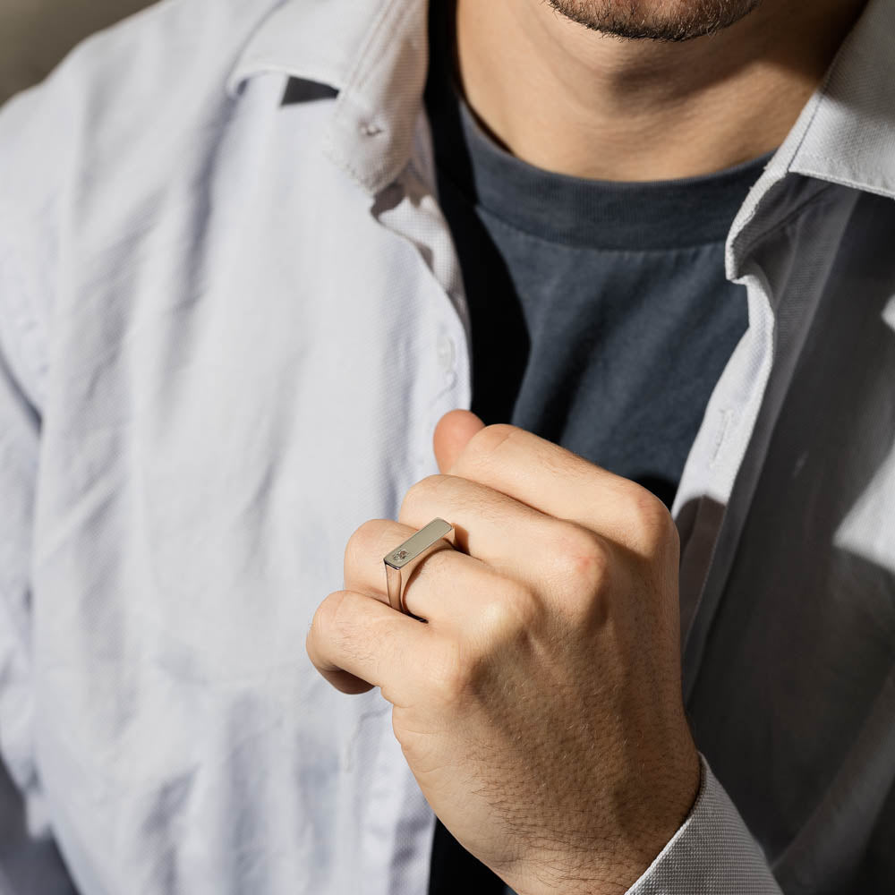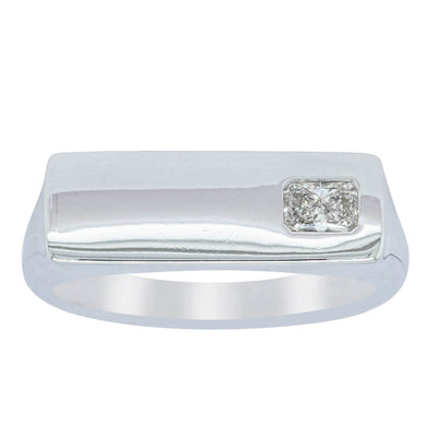 Carefully crafted in 14ct white gold this timeless signet ring features one radiant cut diamond.