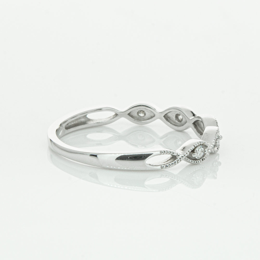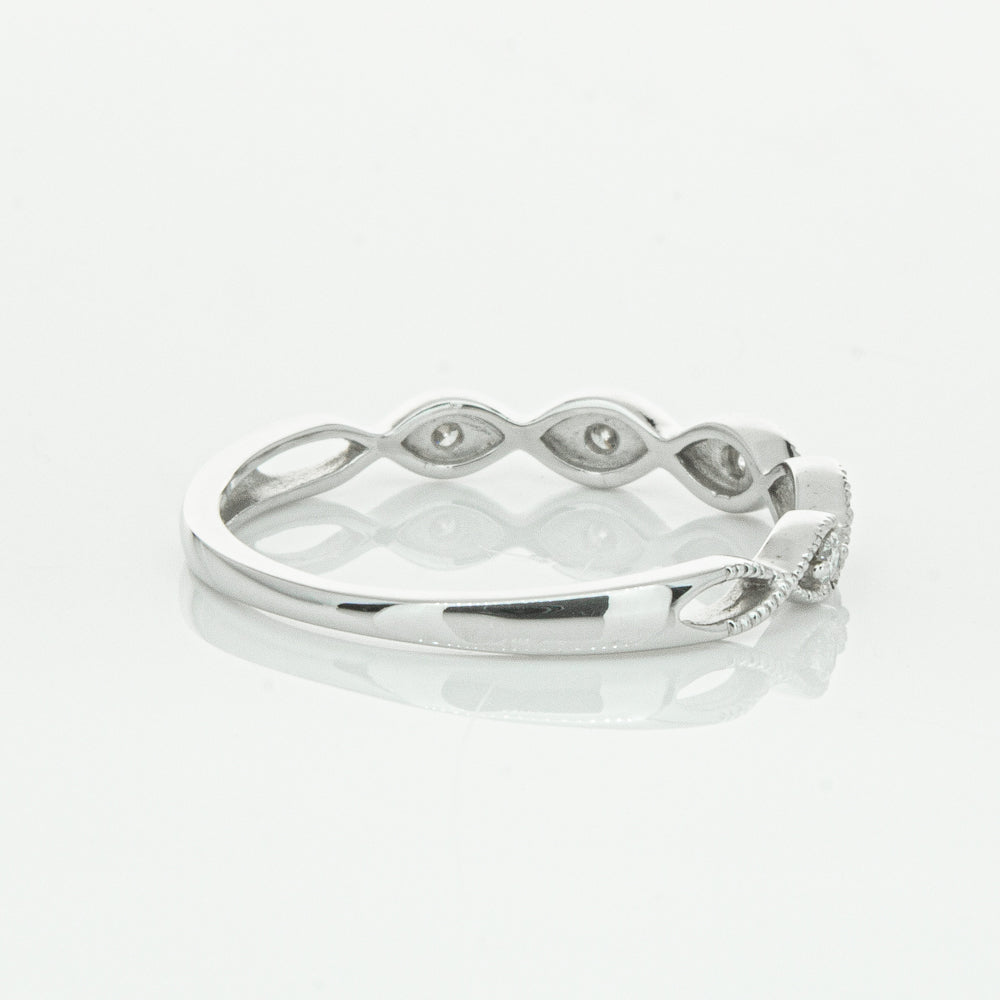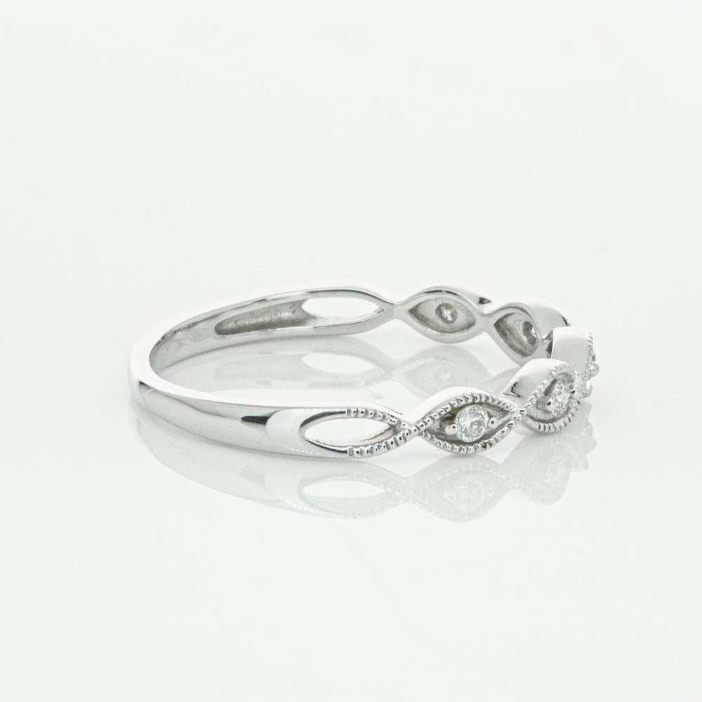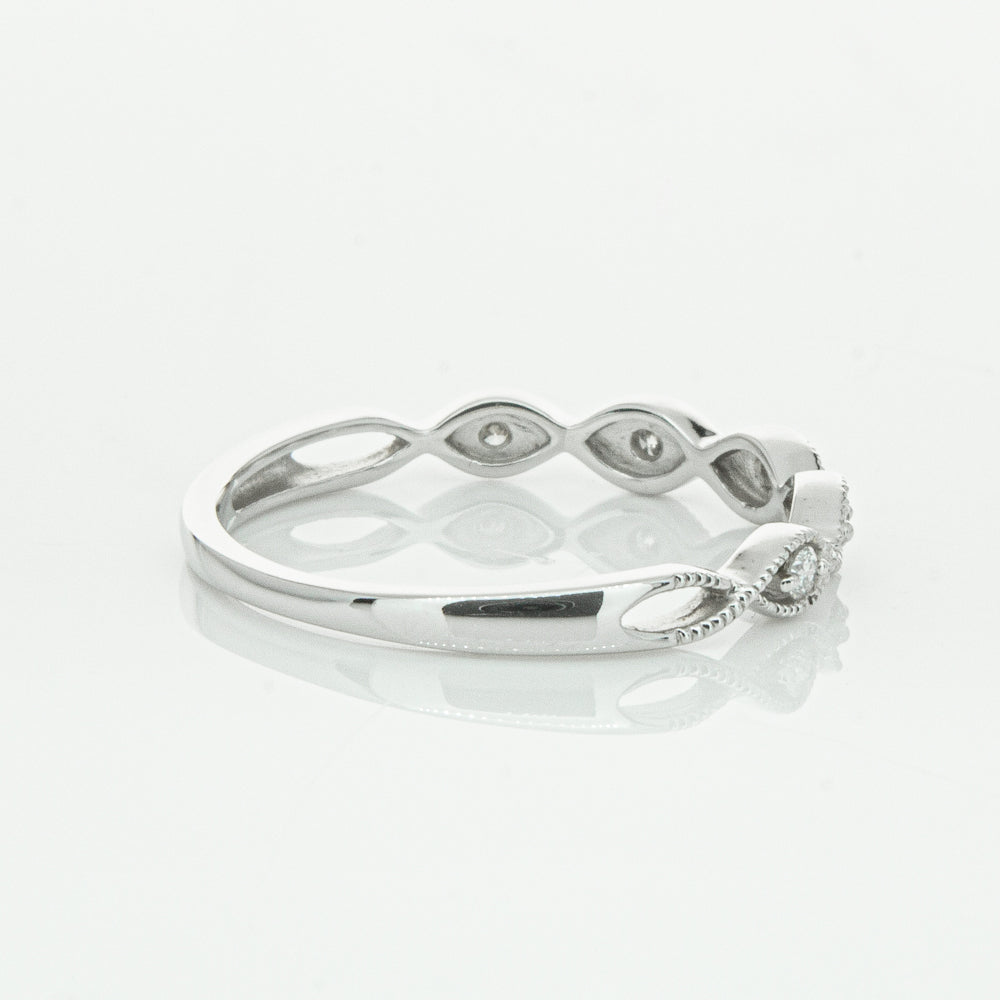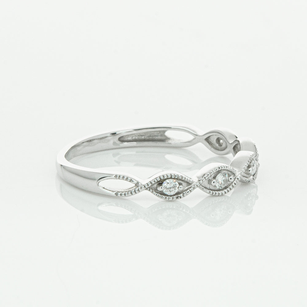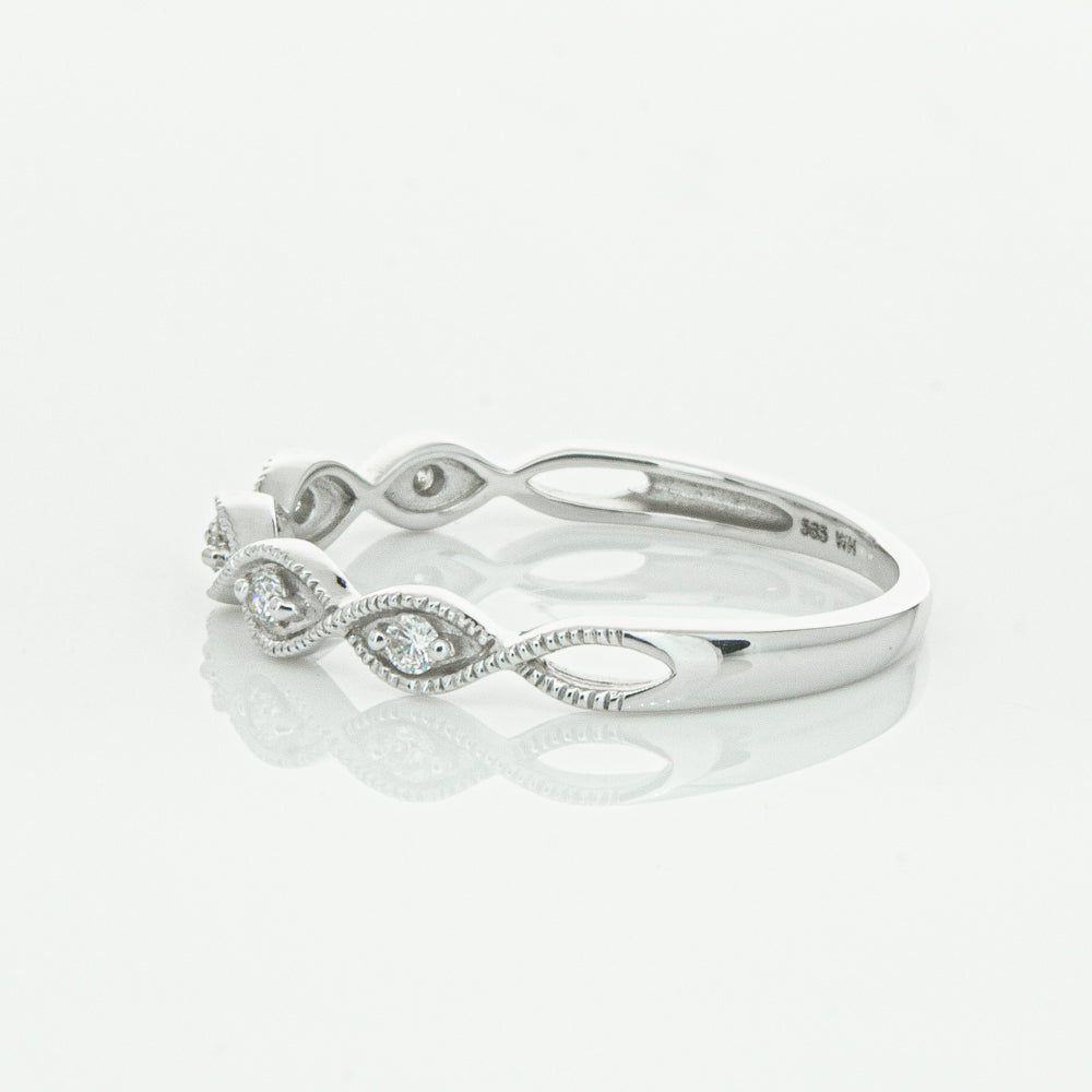 14ct white gold Rapunzel eternity band from our Stellar collection featuring marquise shaped motifs with five round brilliant cut diamonds delicately set in a millgrain setting.