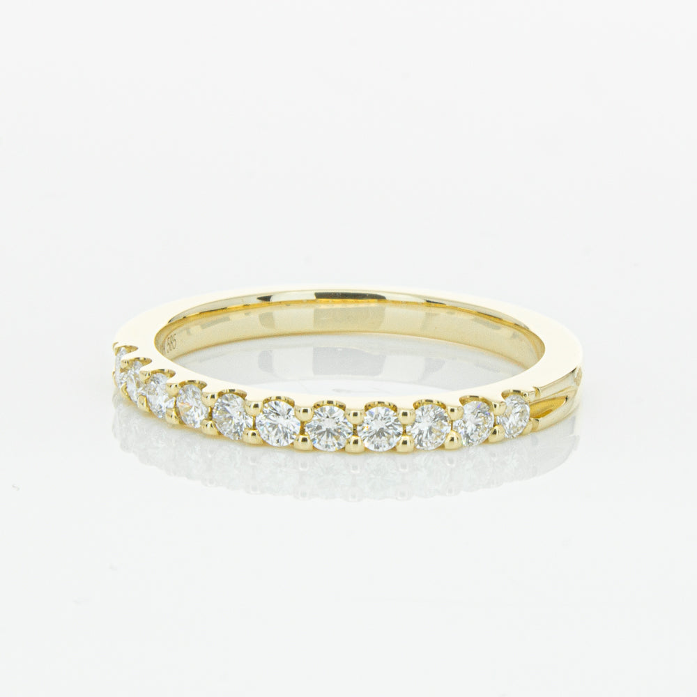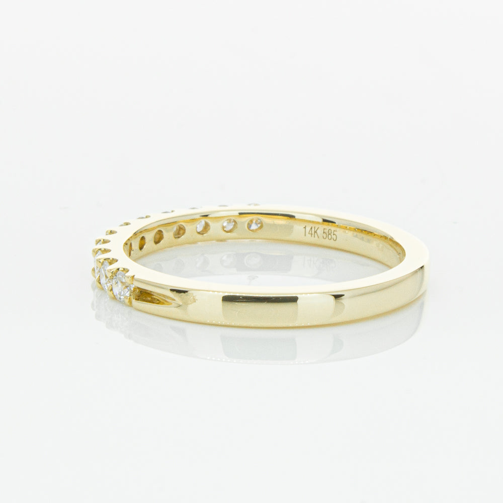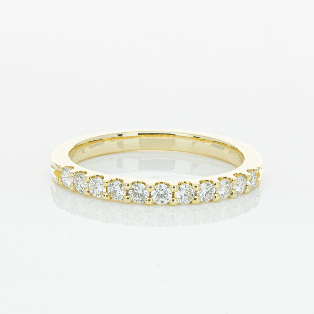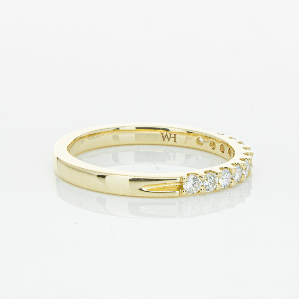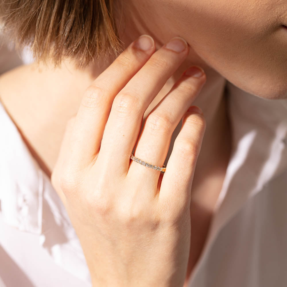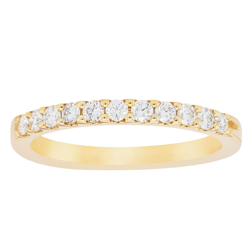 A row of sparkling round brilliant cut diamonds set in 14ct yellow gold shimmer brightly in this Luna band from our Stellar collection.