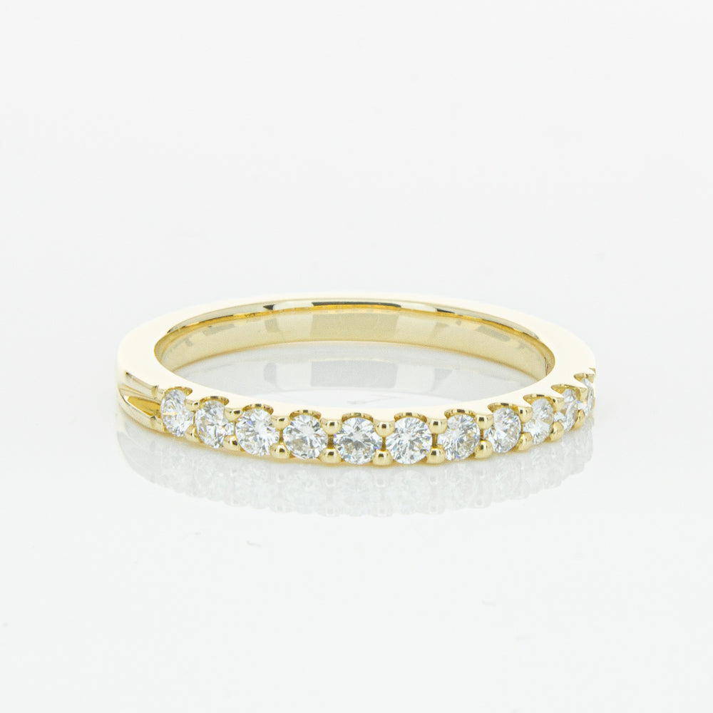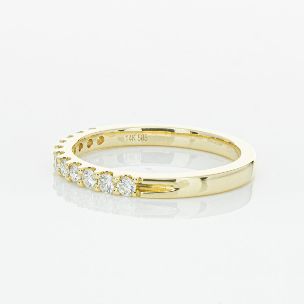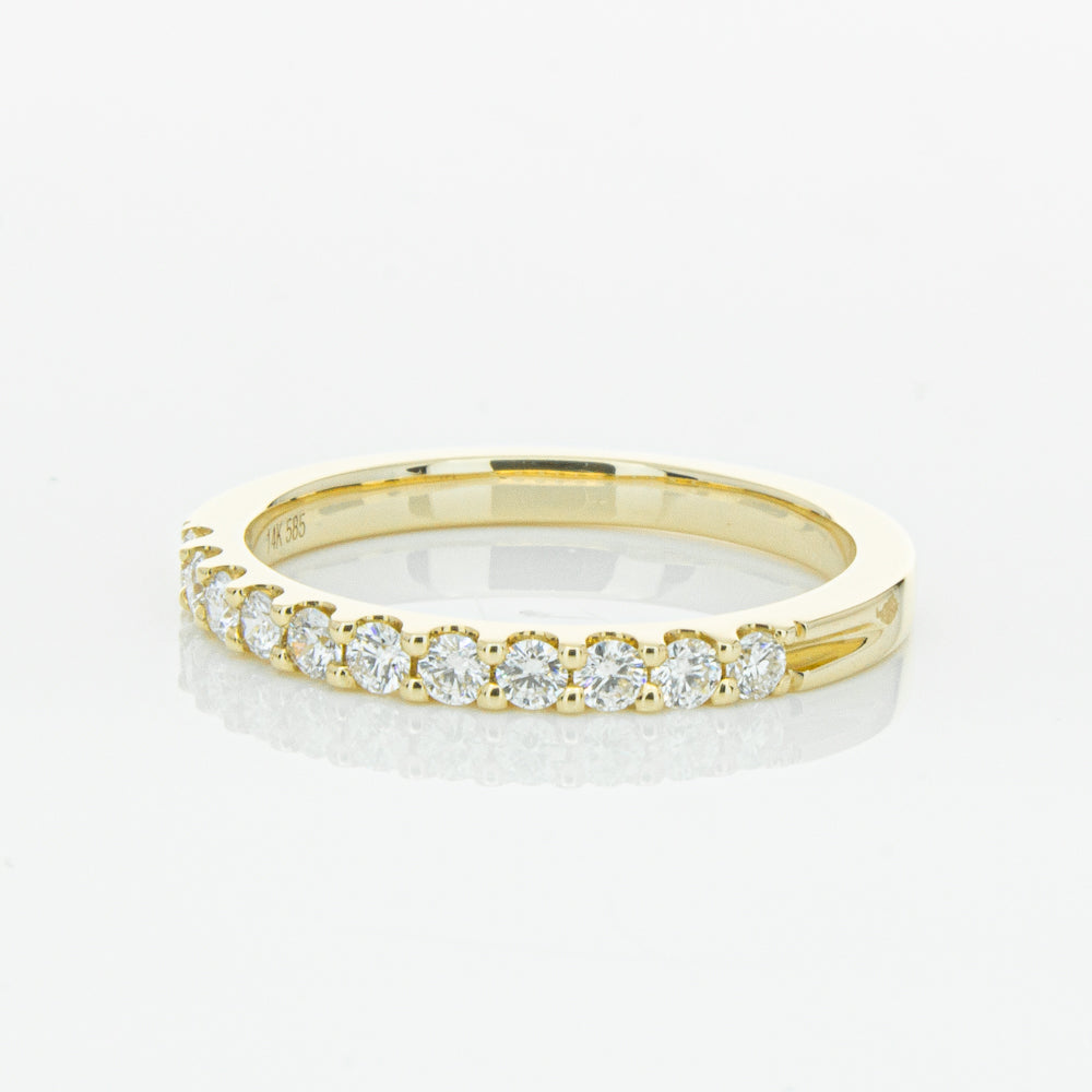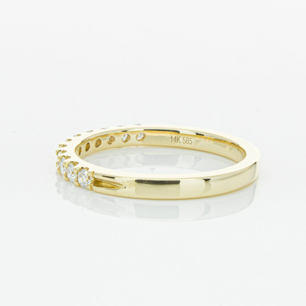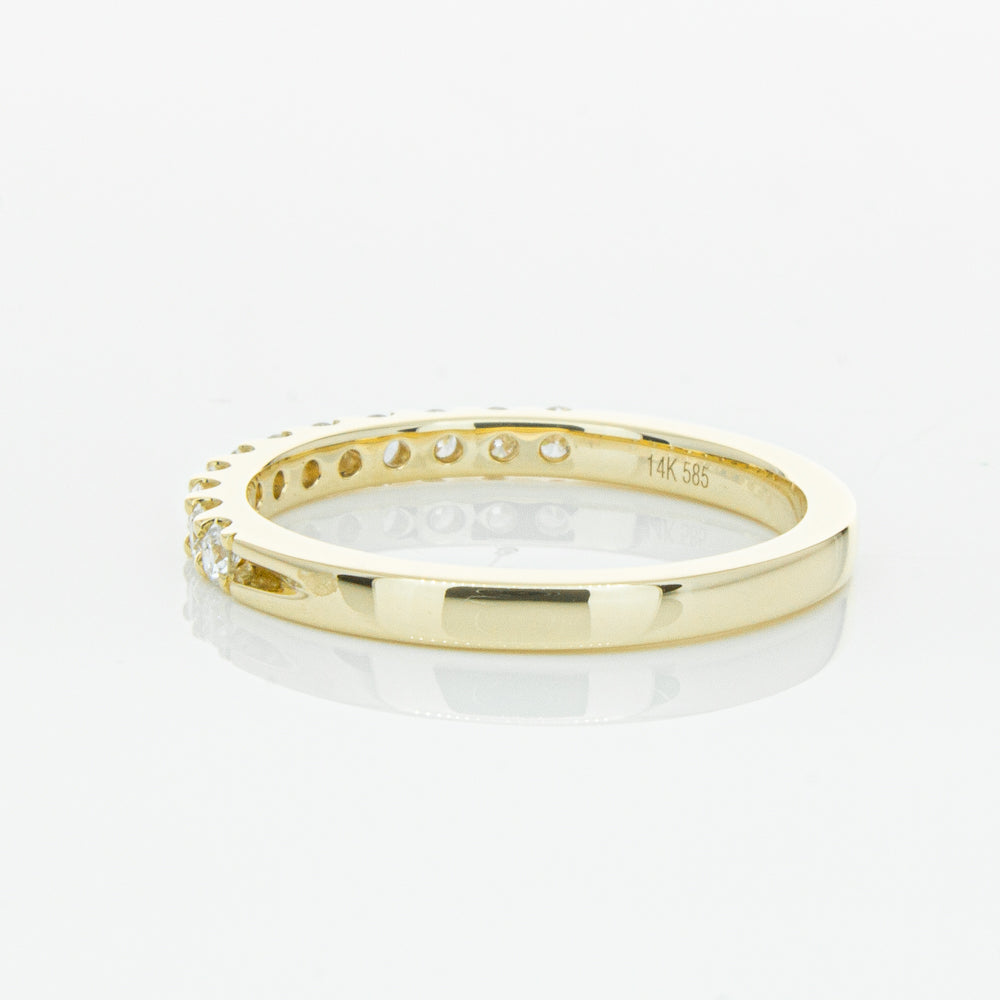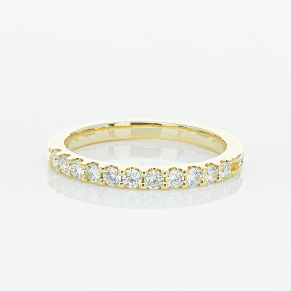 A row of sparkling round brilliant cut diamonds set in 14ct yellow gold shimmer brightly in this Luna band from our Stellar collection.