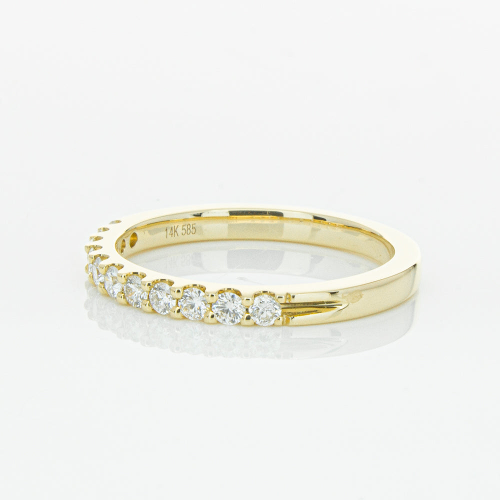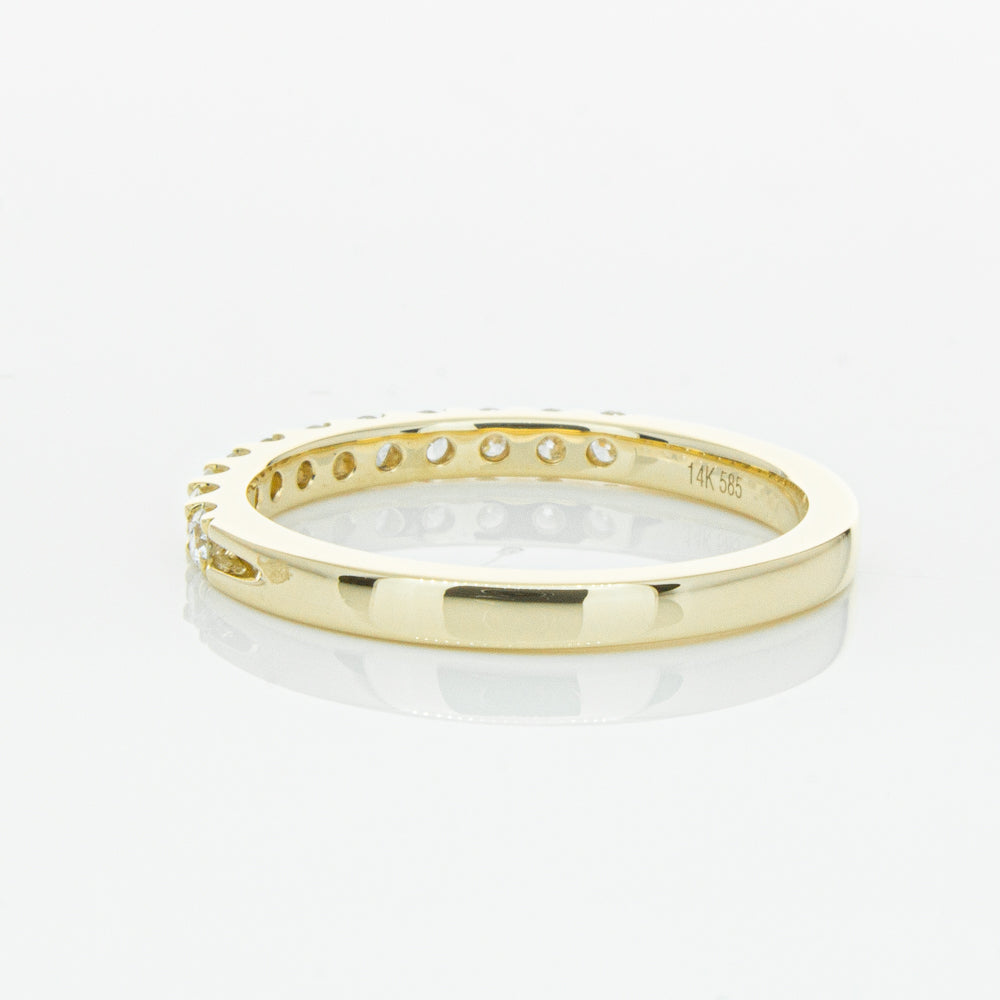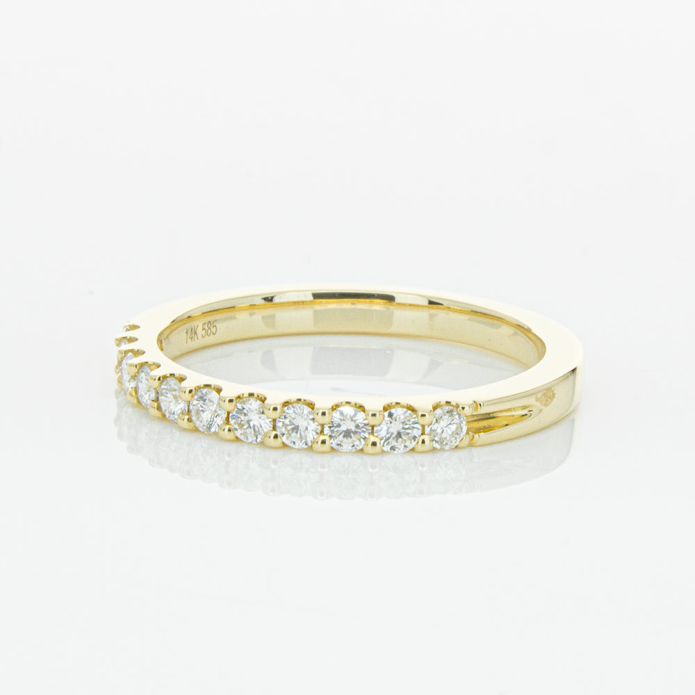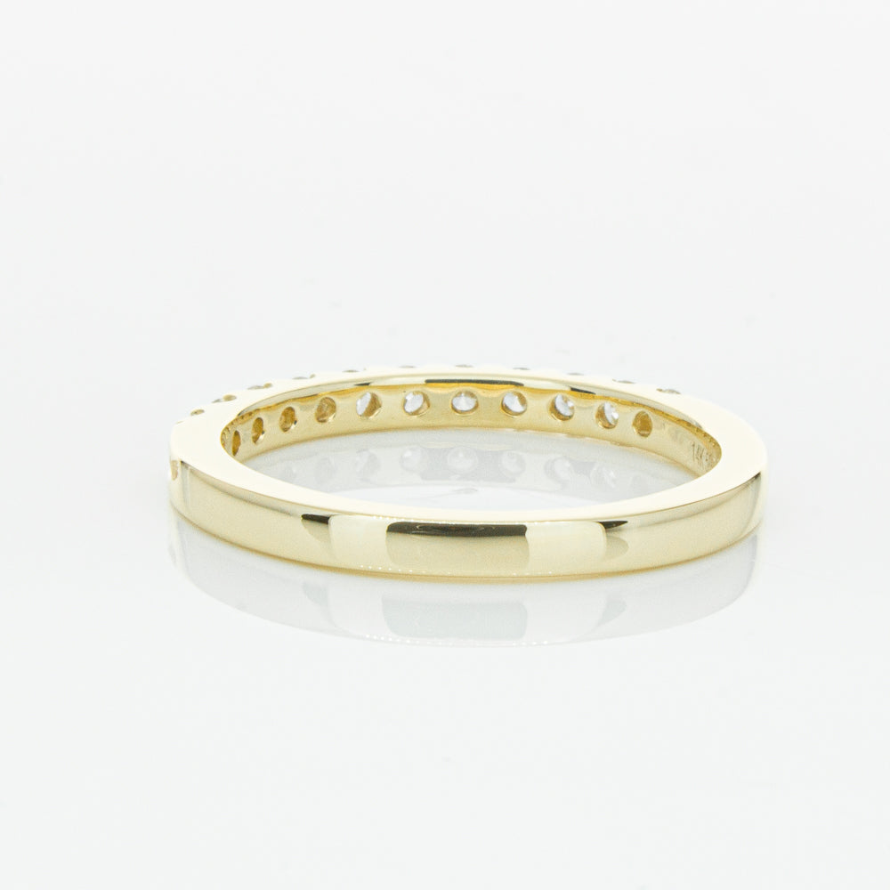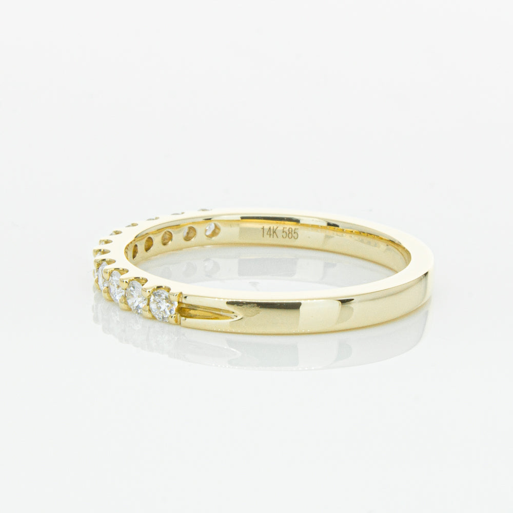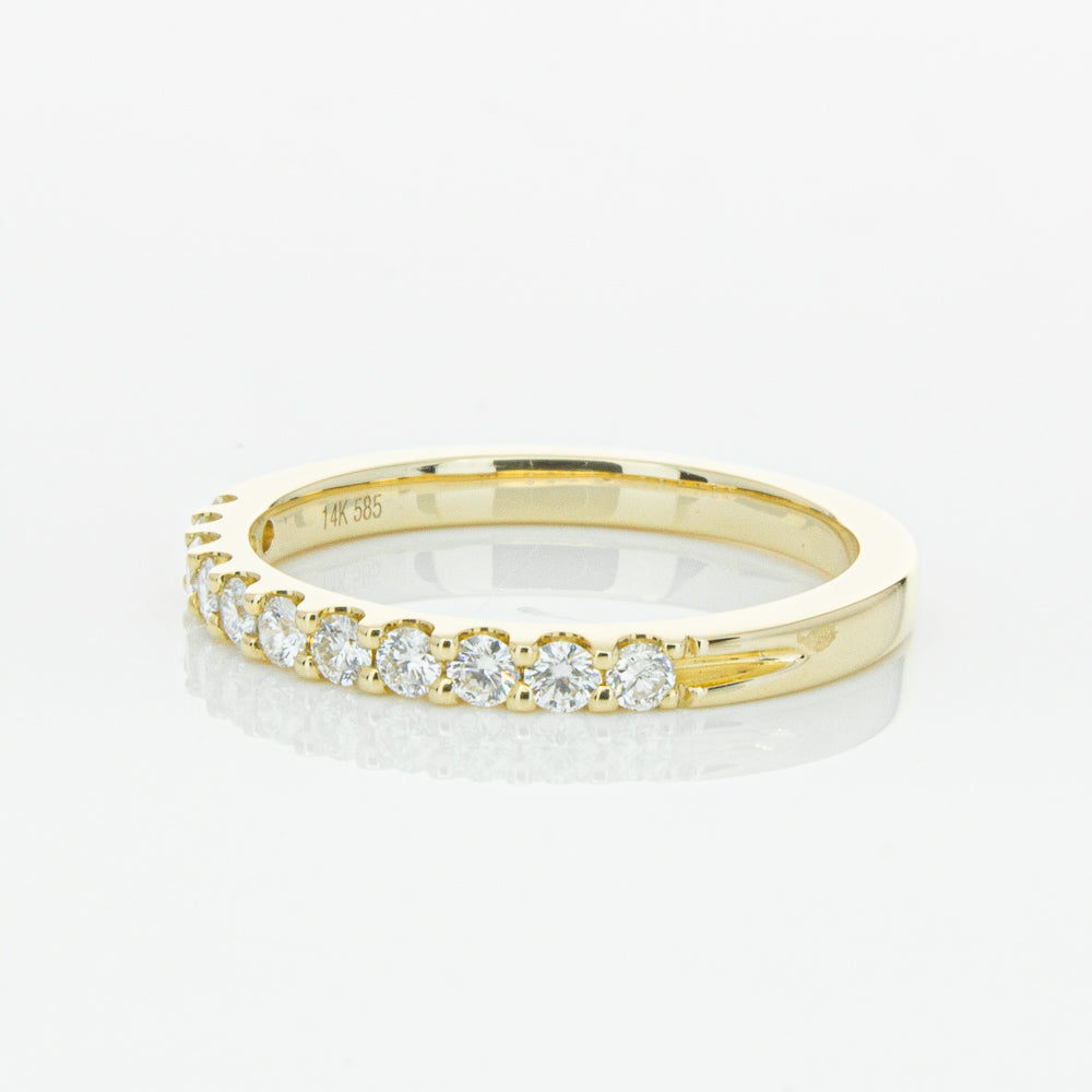 A row of sparkling round brilliant cut diamonds set in 14ct yellow gold shimmer brightly in this Luna band from our Stellar collection.
