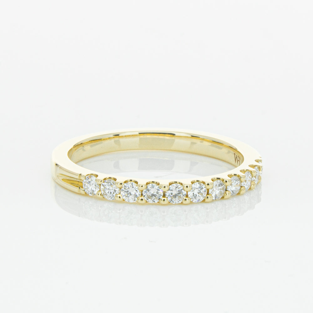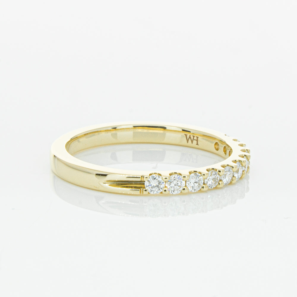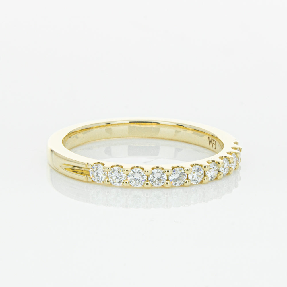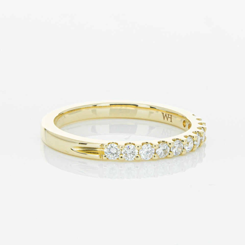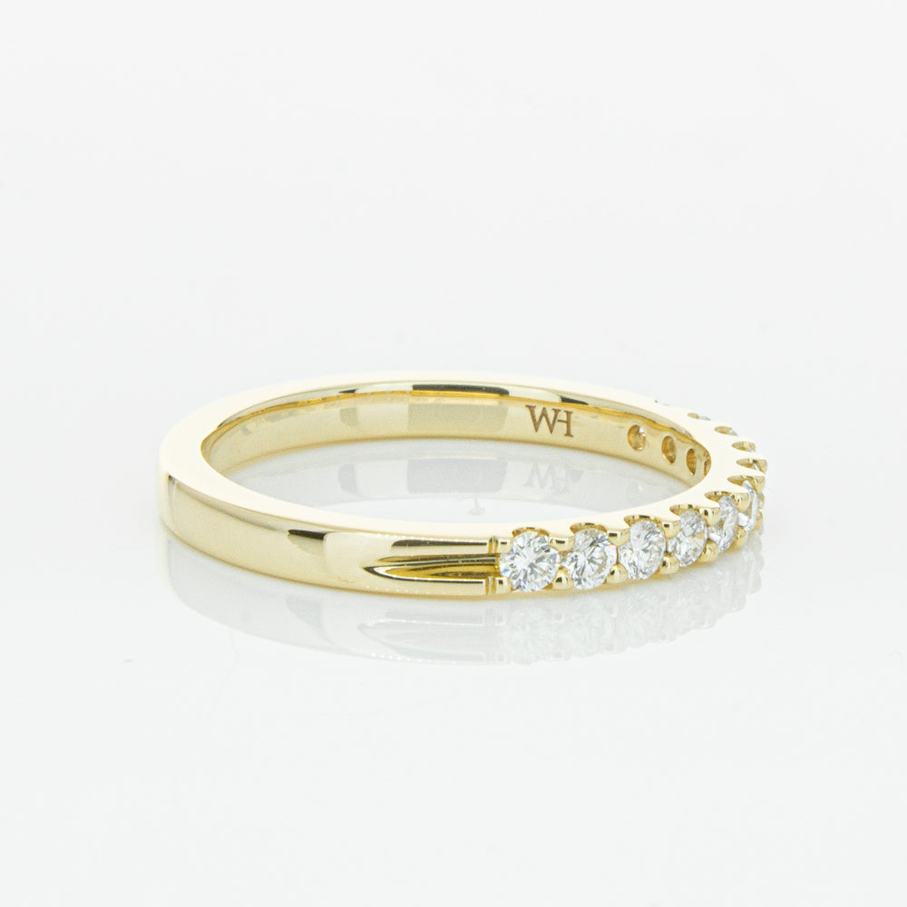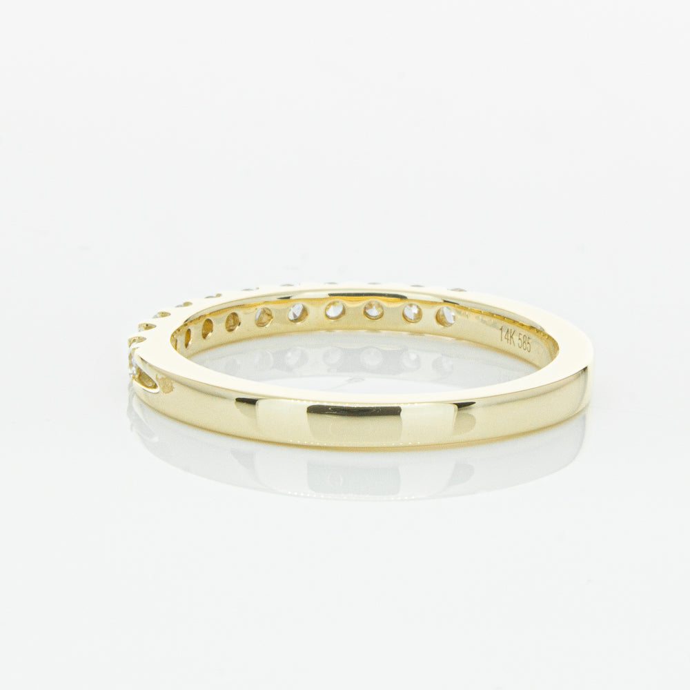 A row of sparkling round brilliant cut diamonds set in 14ct yellow gold shimmer brightly in this Luna band from our Stellar collection.