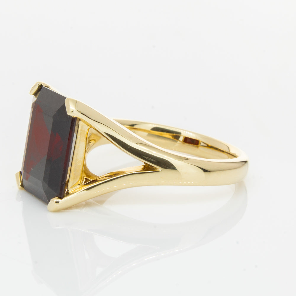 An eye-catching cocktail ring that is sure to brighten your day! Crafted in 14ct yellow gold, this bold Verona ring boasts a vivid garnet. A statement ring that will turn heads.