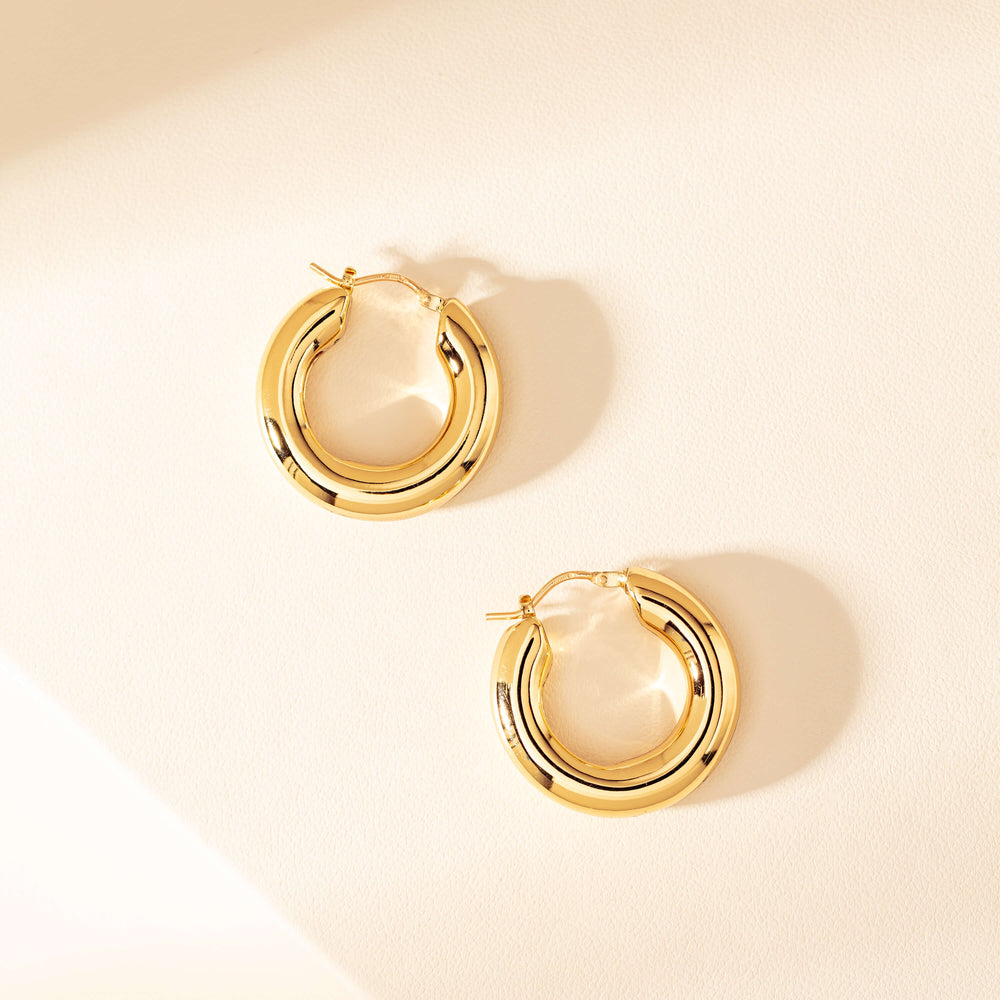 14ct Yellow Gold Hollow Large Round Hoop Earrings