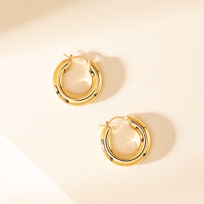 Crafted from 14ct yellow gold, these hollow large round hoop earrings are a must-have for your collection. These add a touch of elegance to any outfit!