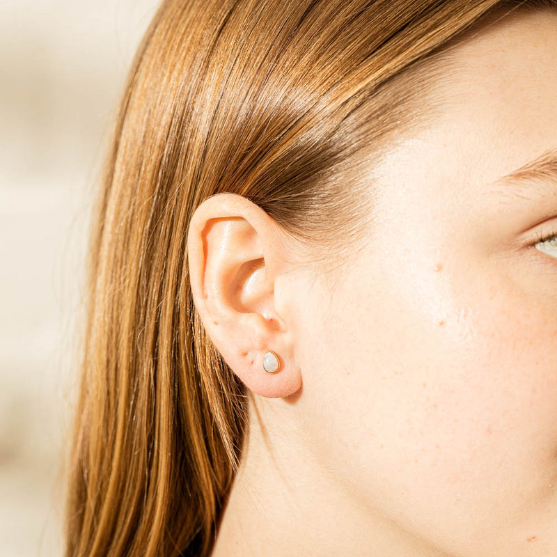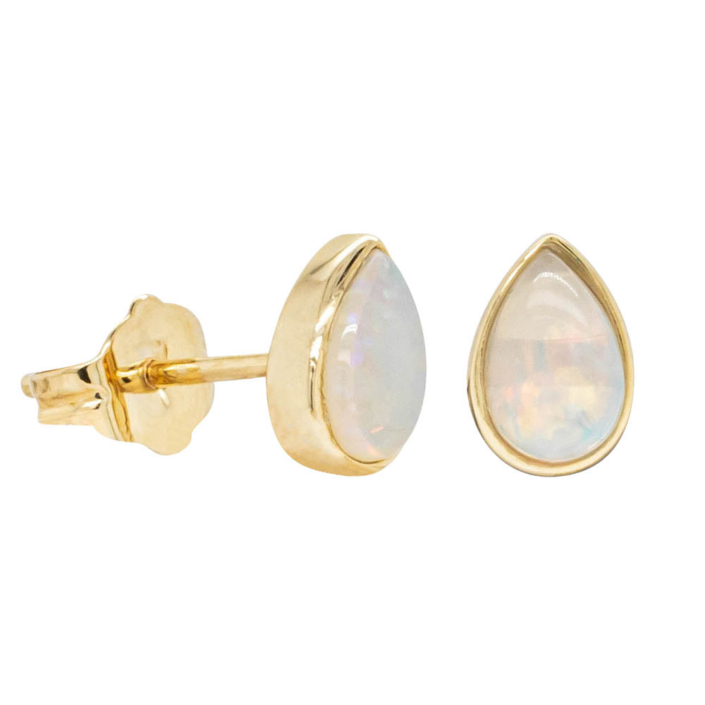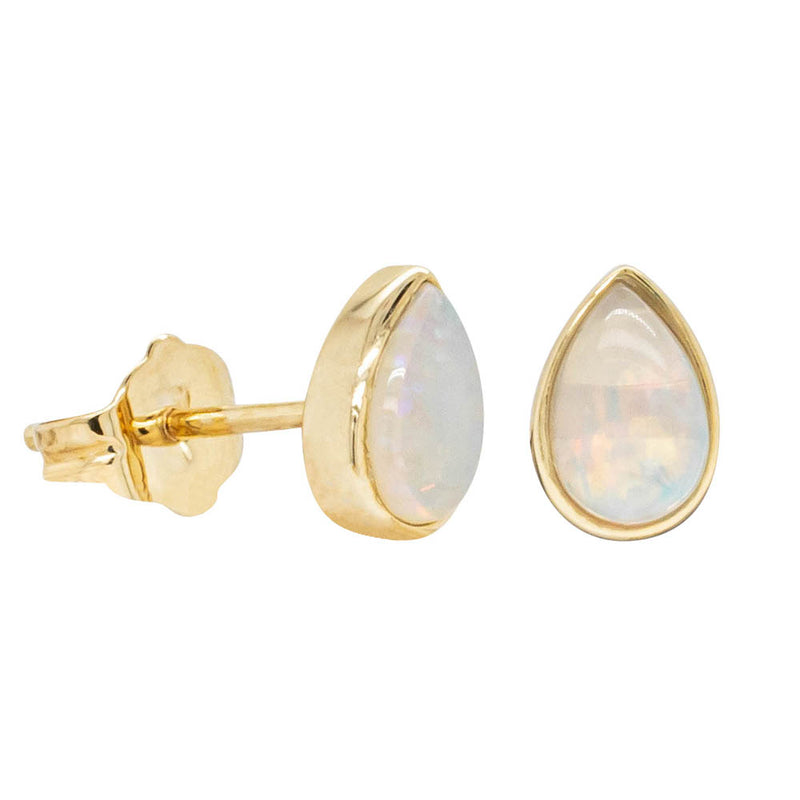 Stand out wearing these beautiful drop shaped opal studs which are crafted in 14ct yellow gold and are rubover set. Go on, treat yourself!