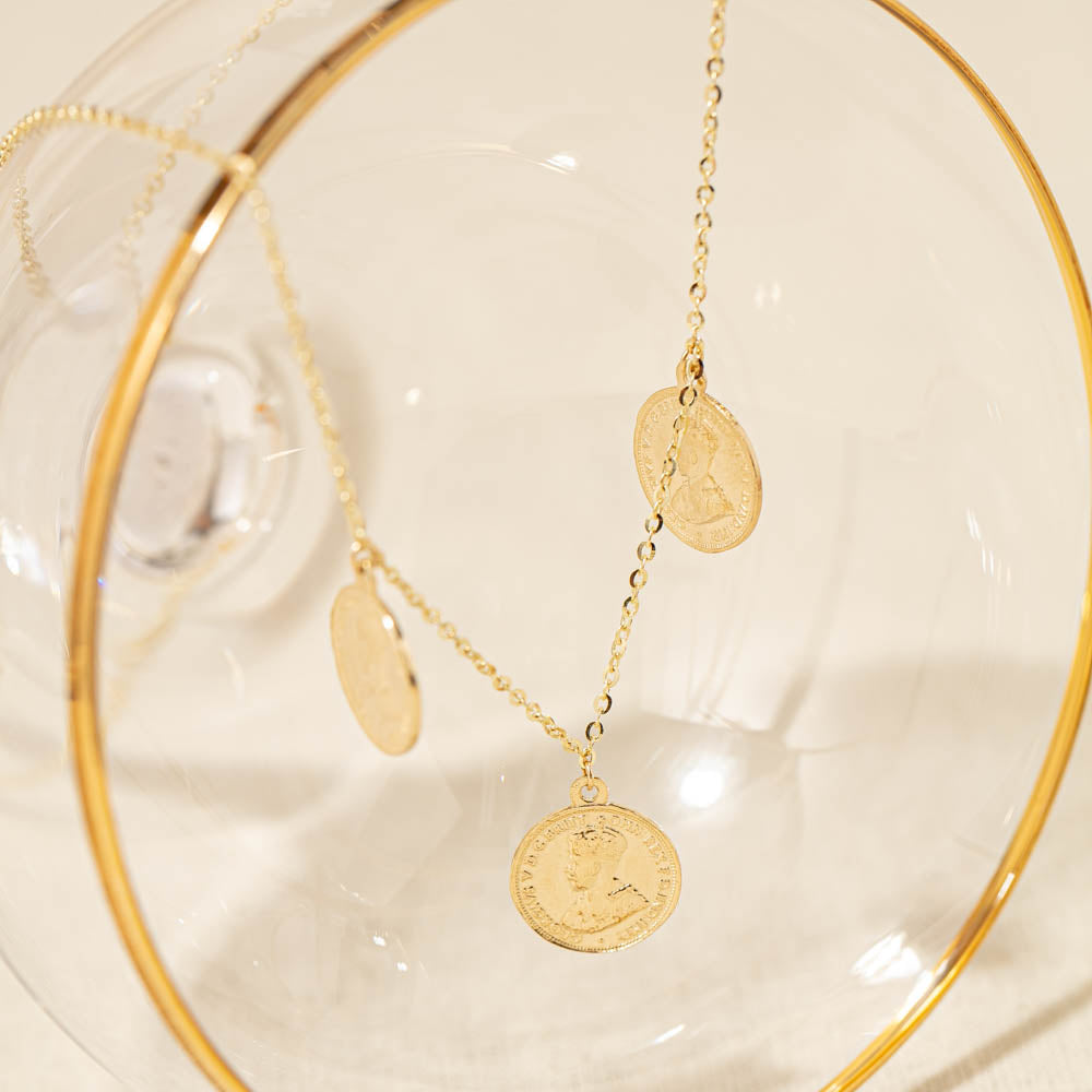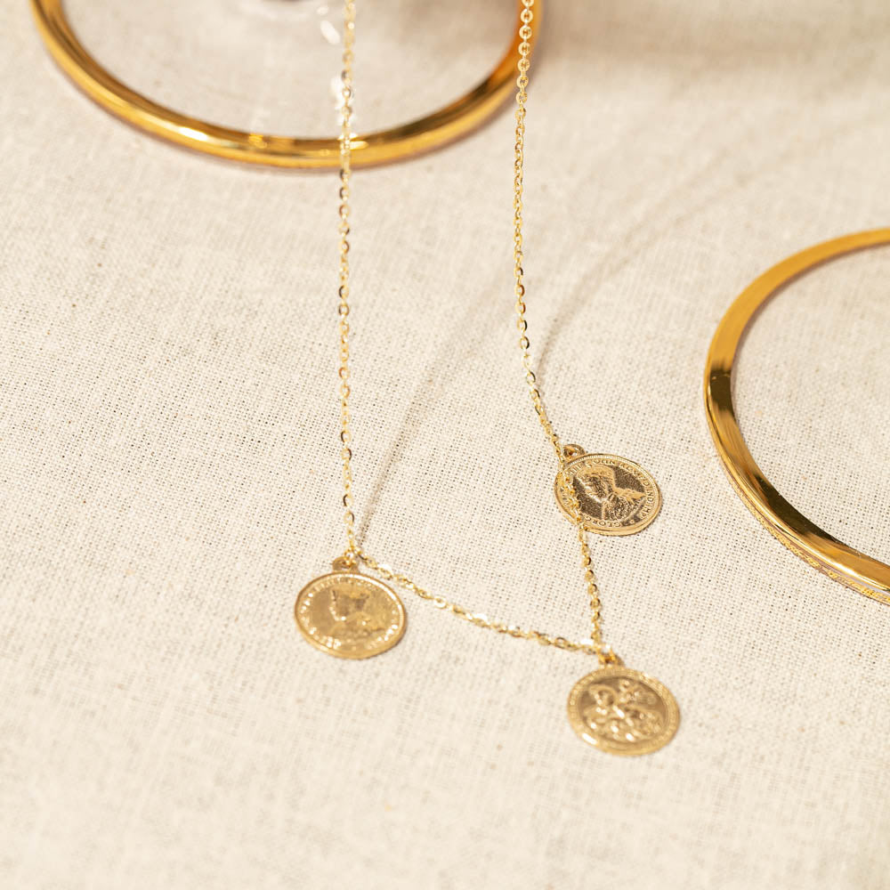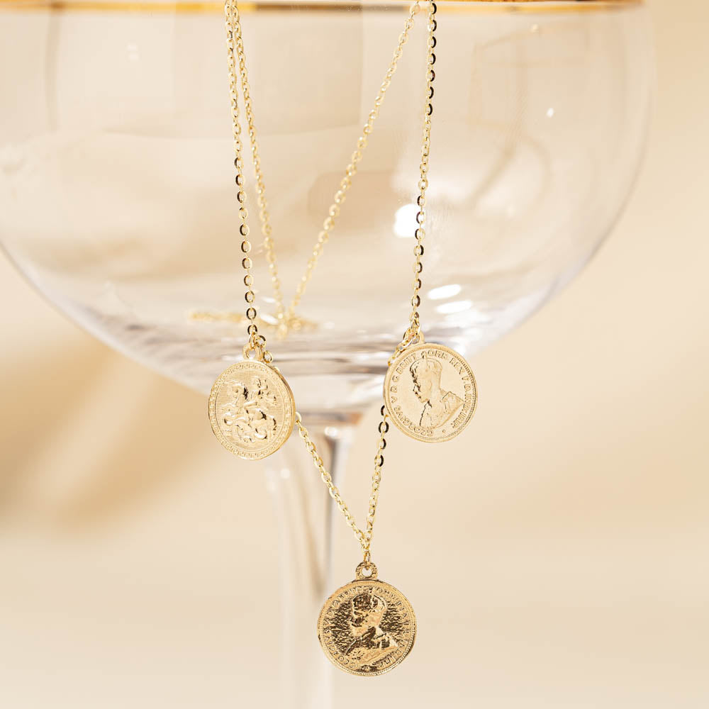 This eye-catching 14ct yellow gold Sovrano necklace boasts three coin shaped pendants, perfect for adding an air of sophistication to any outfit. Featuring high quality craftsmanship and a timeless design, it's part of our elegant cocktail collection.