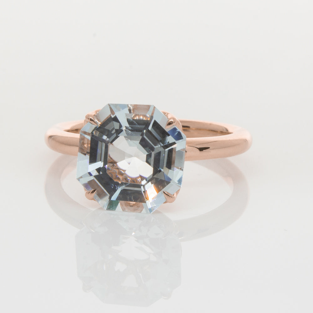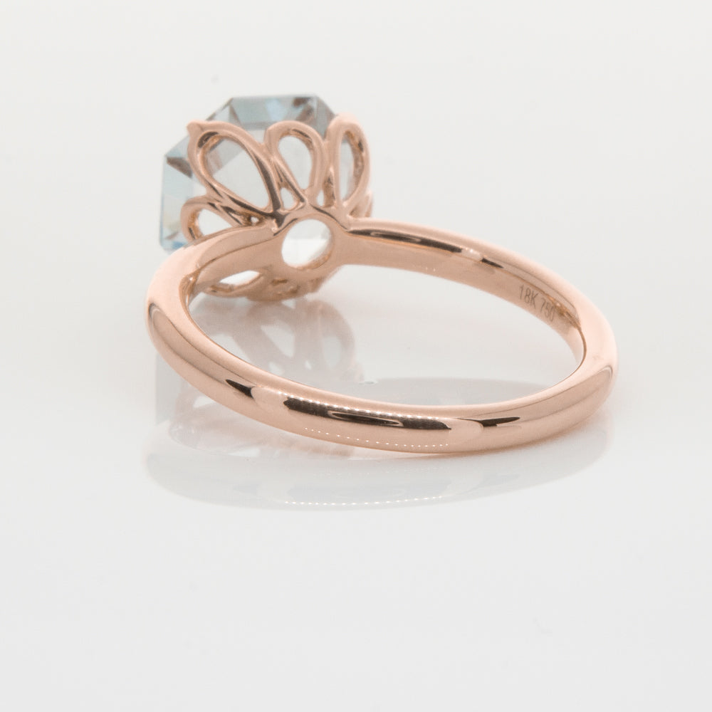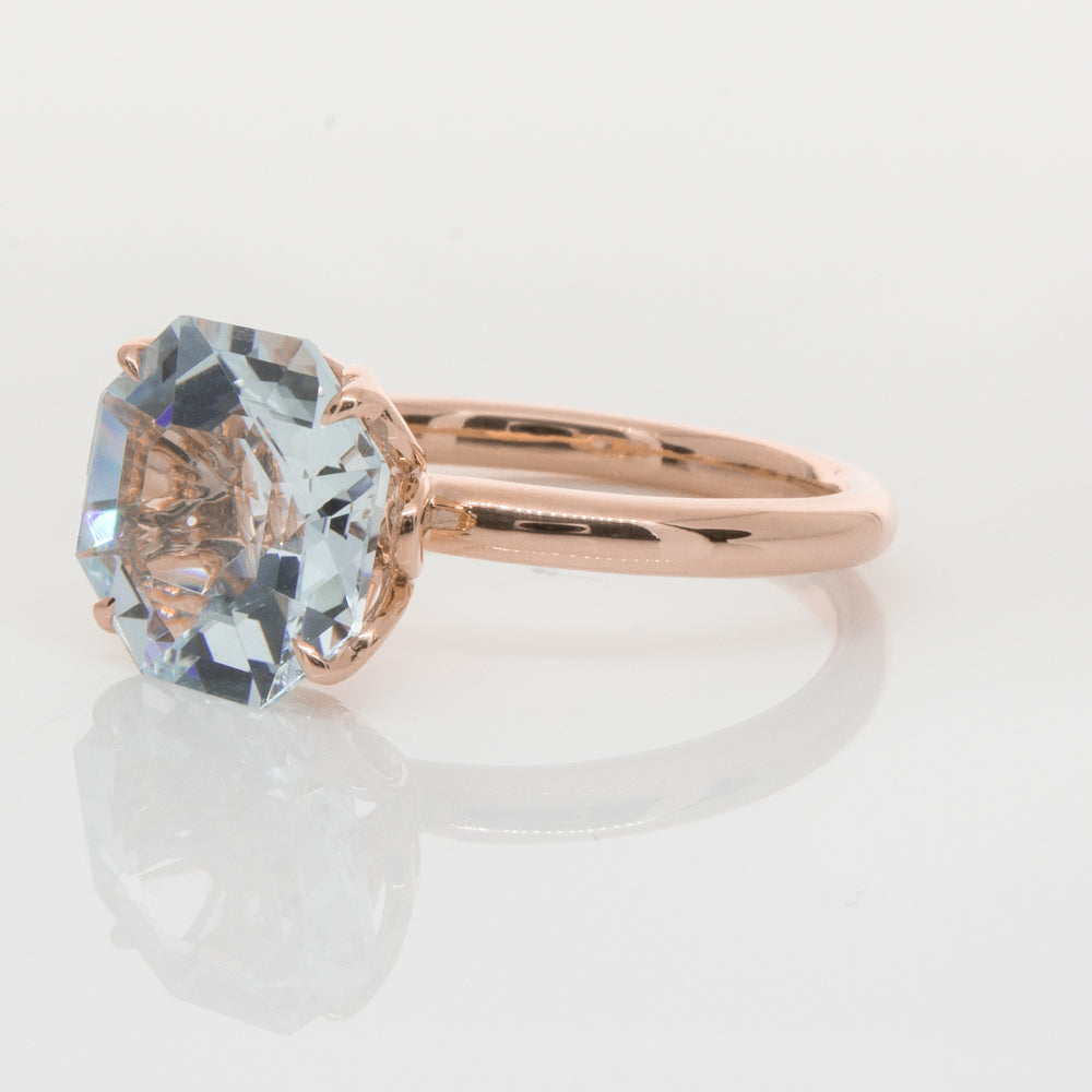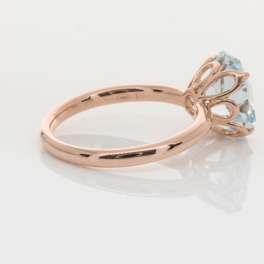 Carefully crafted in 18ct rose gold from our signature 1899 collection, this stunning Octavia ring boasts a custom cut eight-sided aquamarine resting in eight elegant petals. Simply stunning!