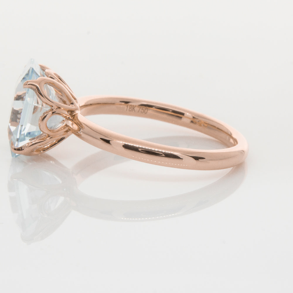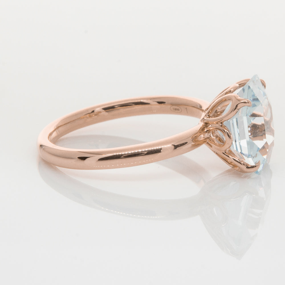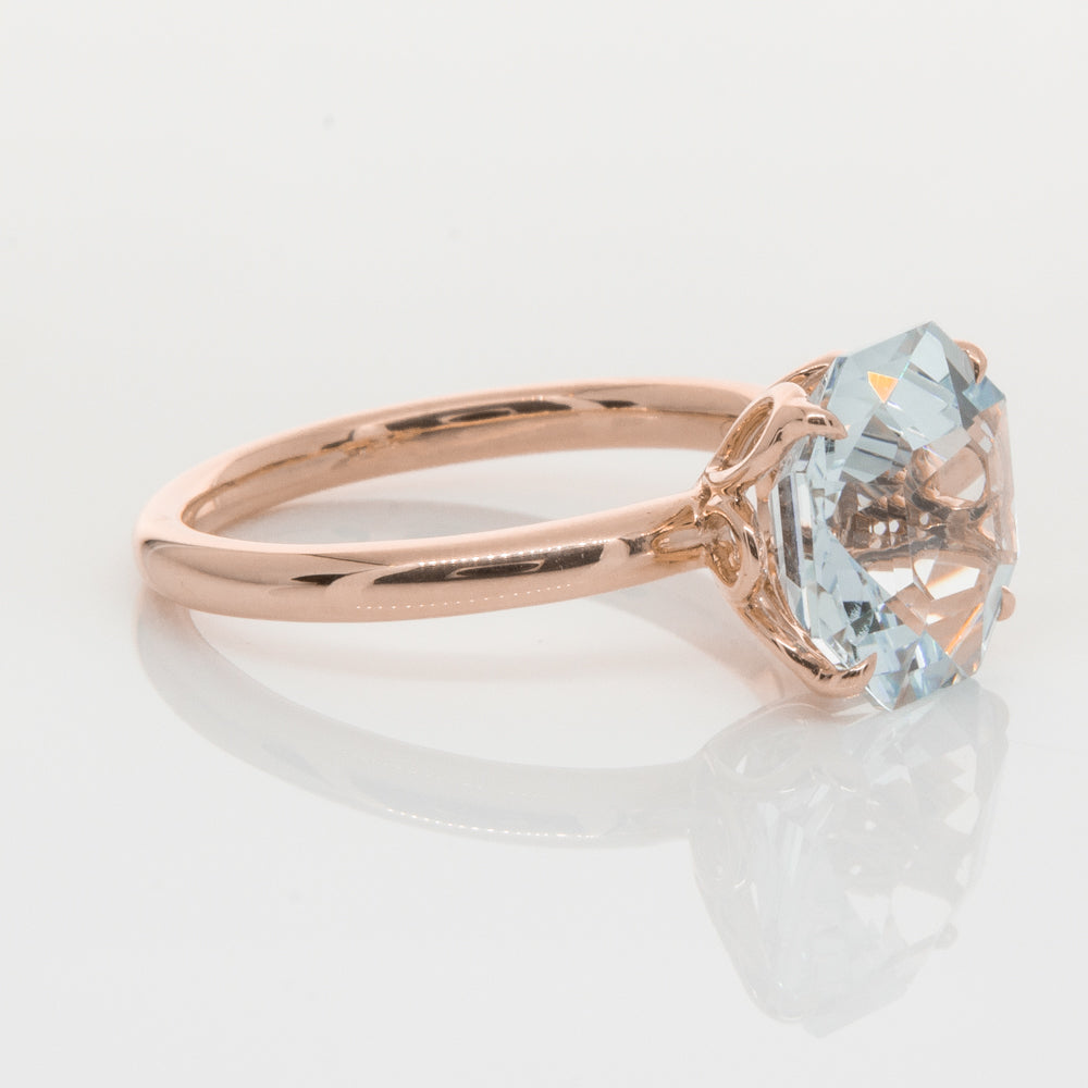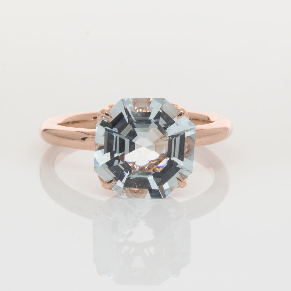 Carefully crafted in 18ct rose gold from our signature 1899 collection, this stunning Octavia ring boasts a custom cut eight-sided aquamarine resting in eight elegant petals. Simply stunning!
