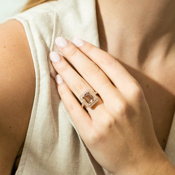18ct Rose Gold 3.76ct Morganite & Diamond Ring