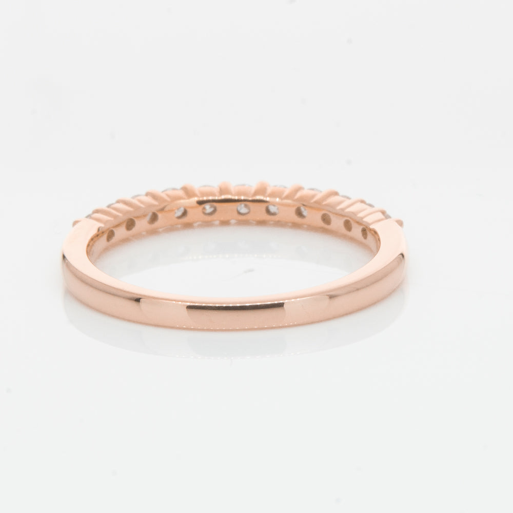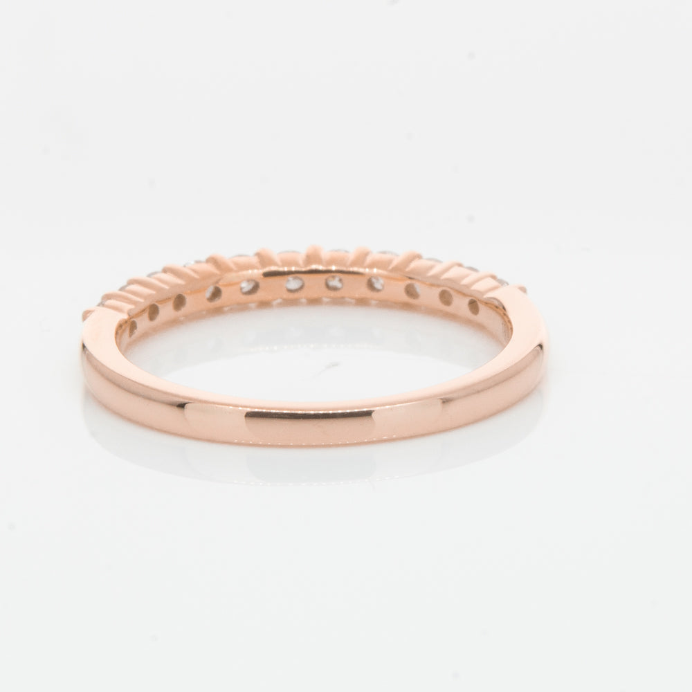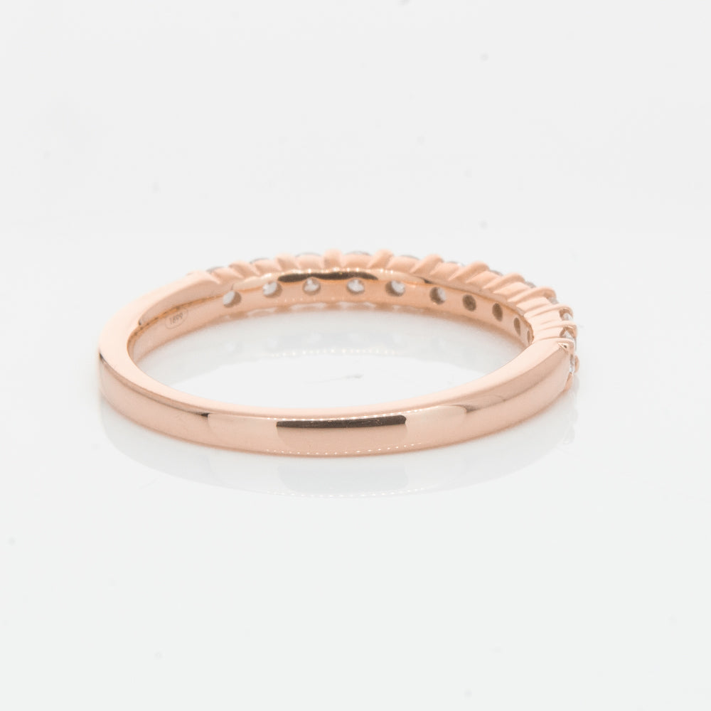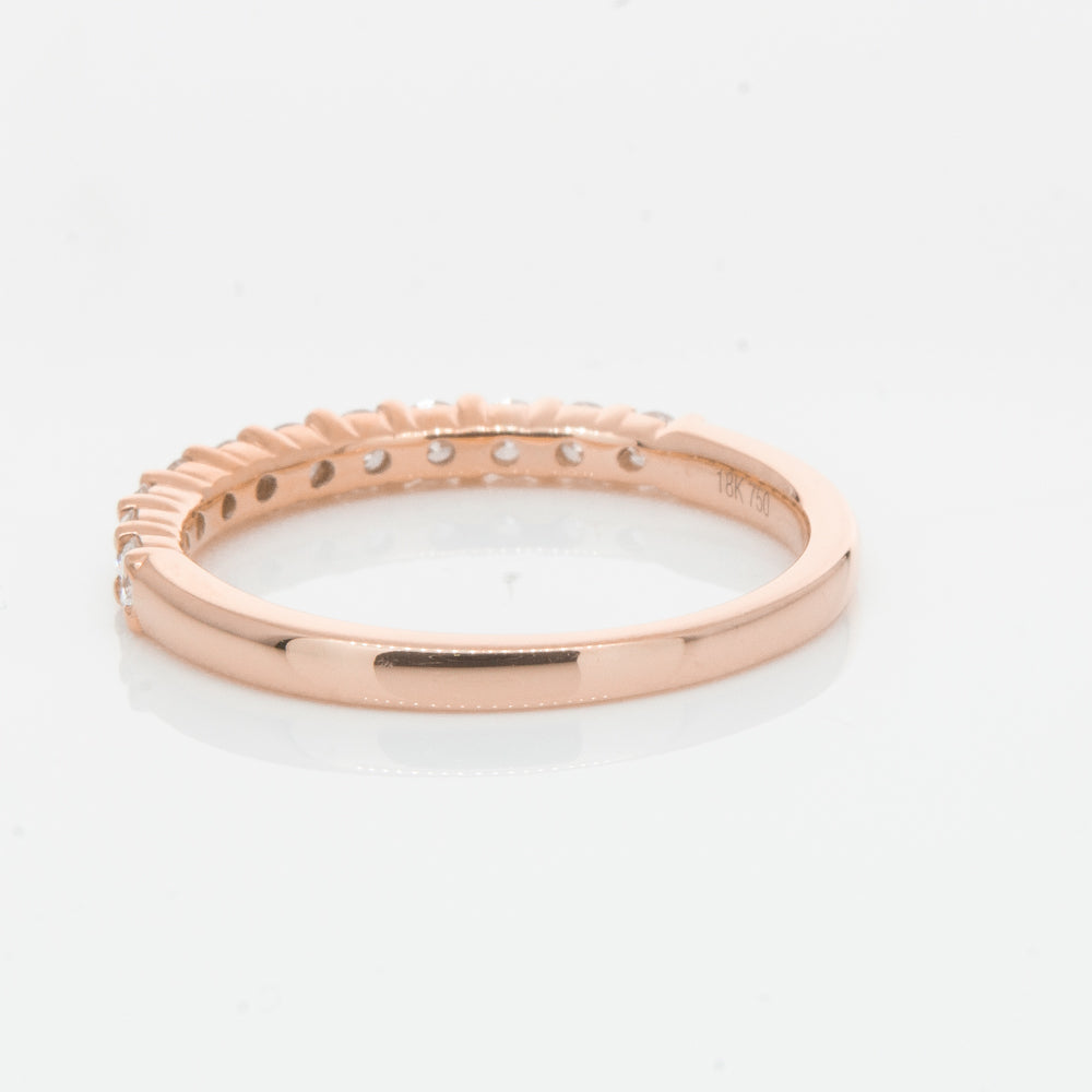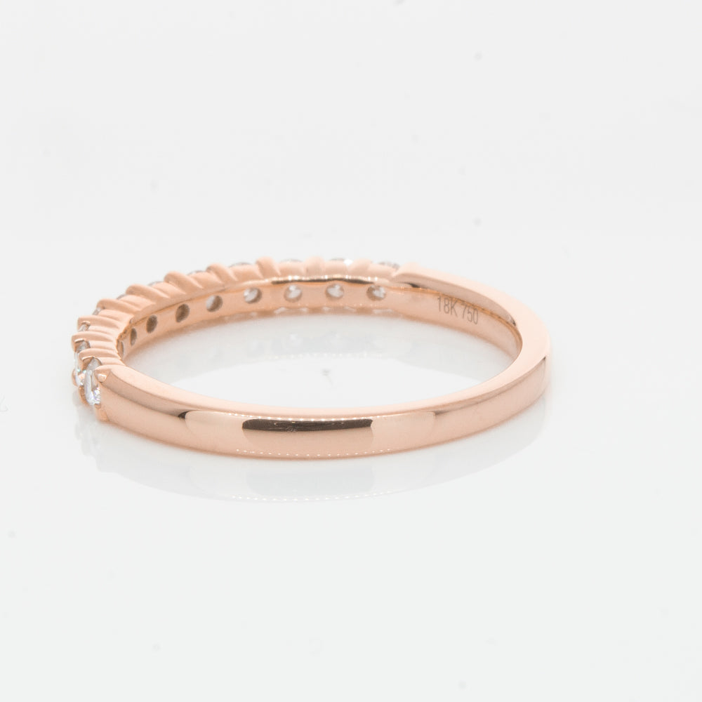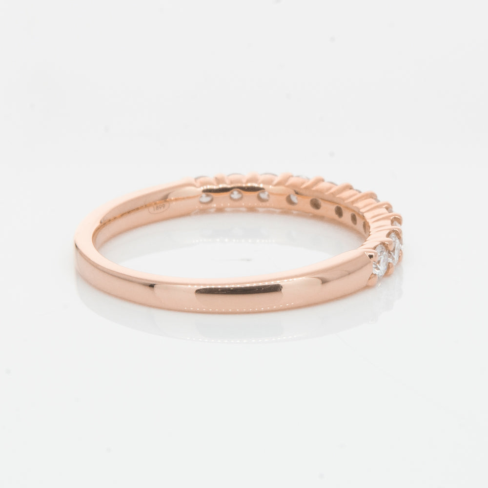 This luxurious 18ct rose gold band boasts 11 shimmering round brilliant cut diamonds resting in elegant claw settings.