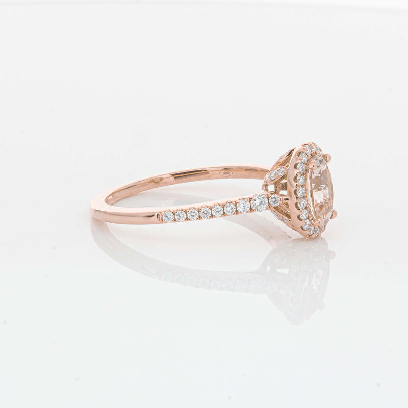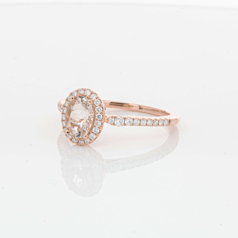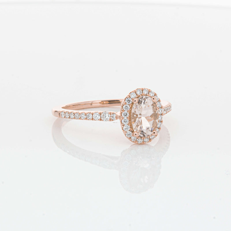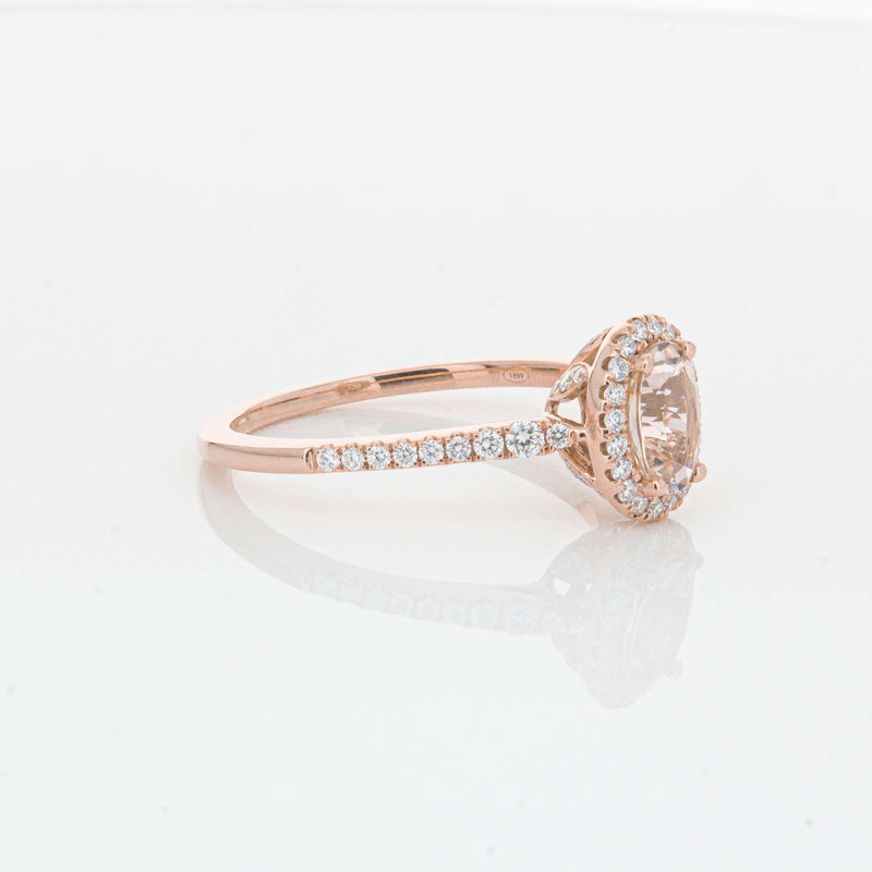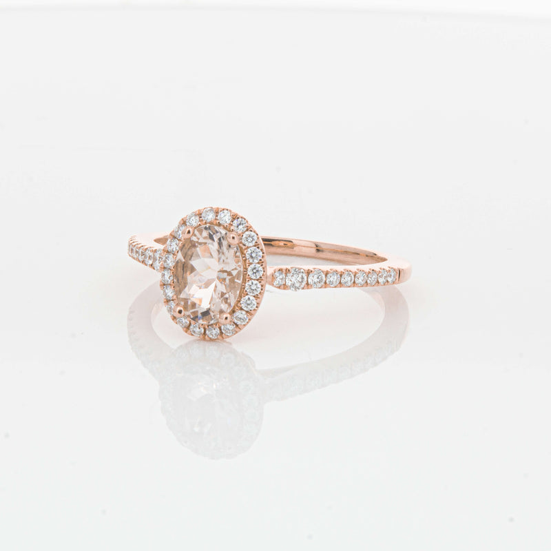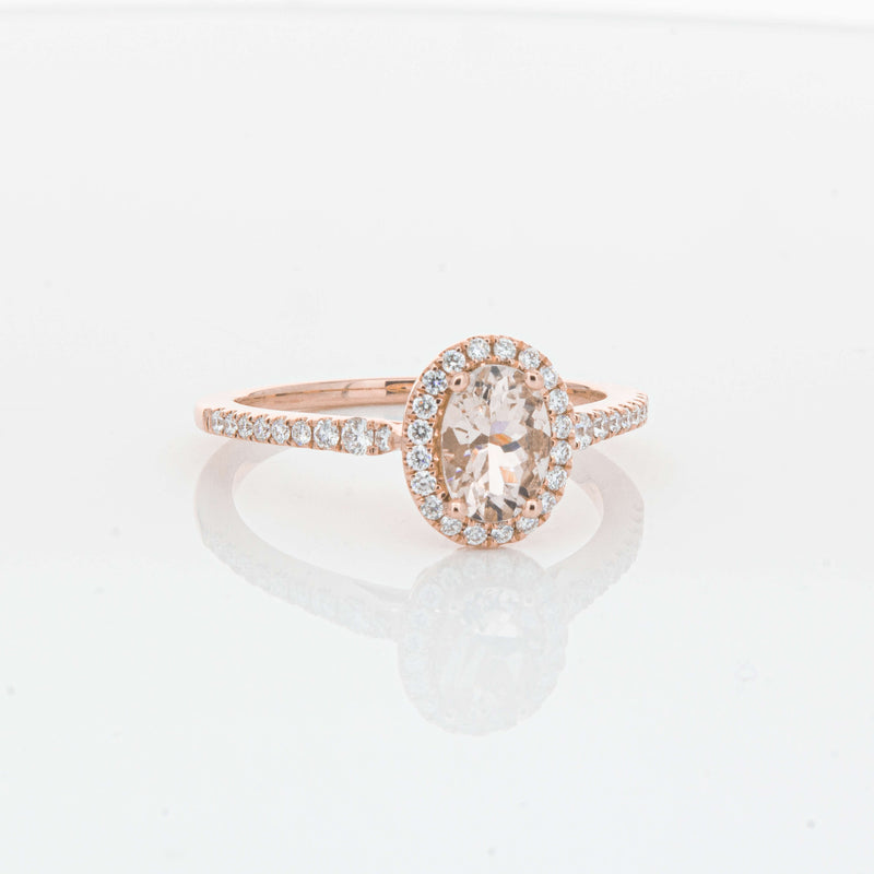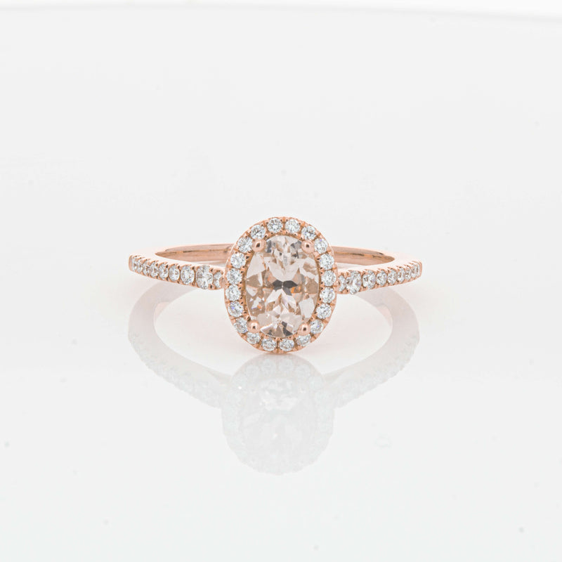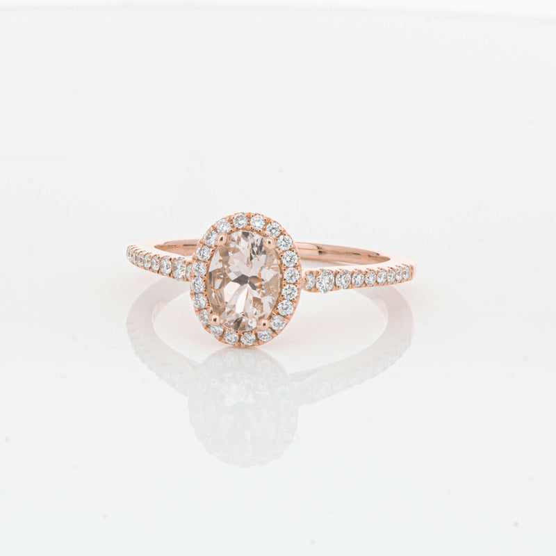 Soft peach hued oval faceted morganite combines with exceptional sparkle to make a luminous statement in this gorgeous mini Sierra ring from our signature 1899 collection.
