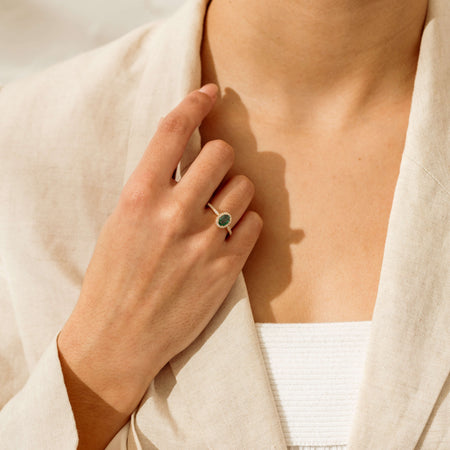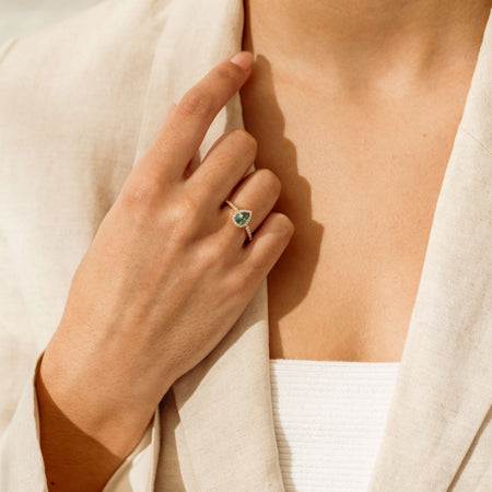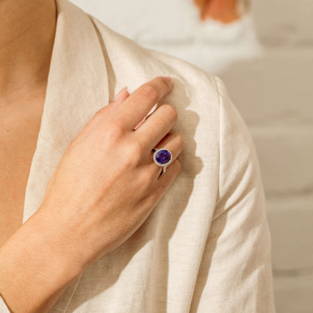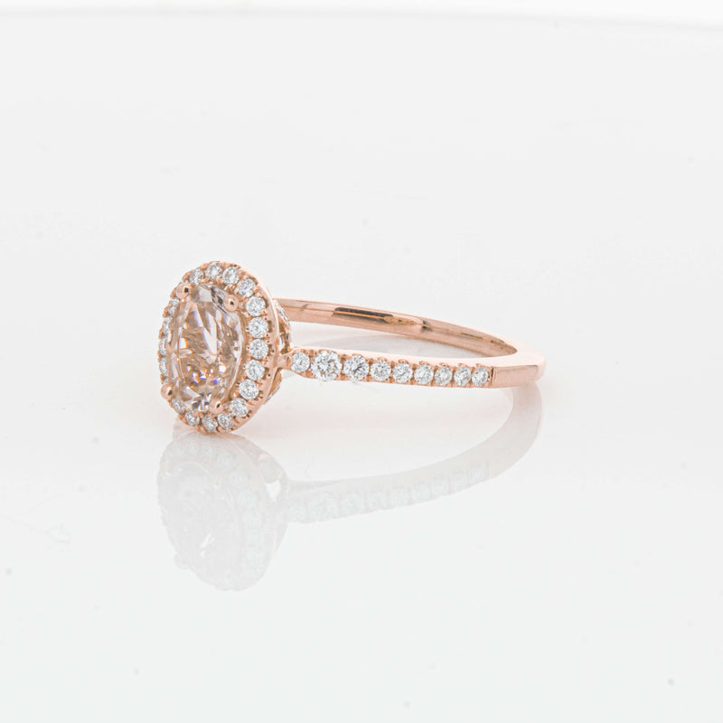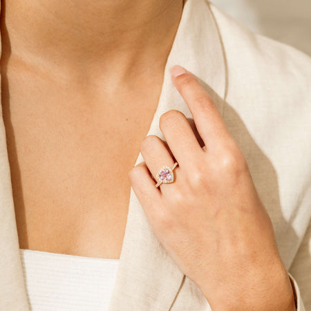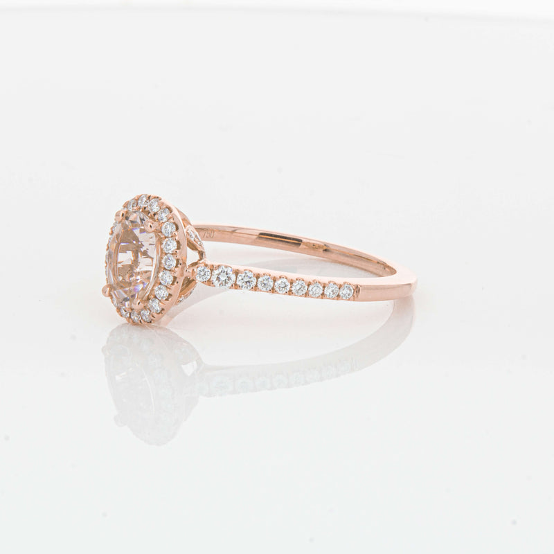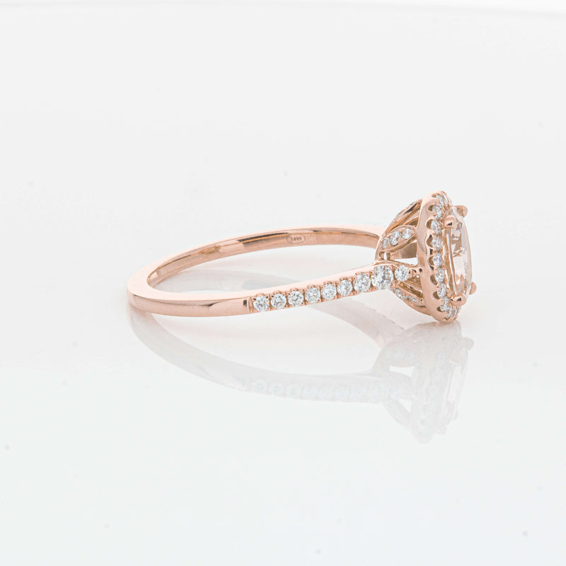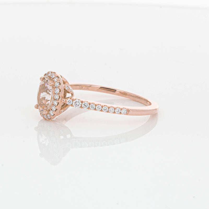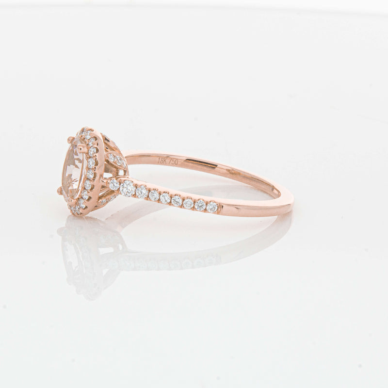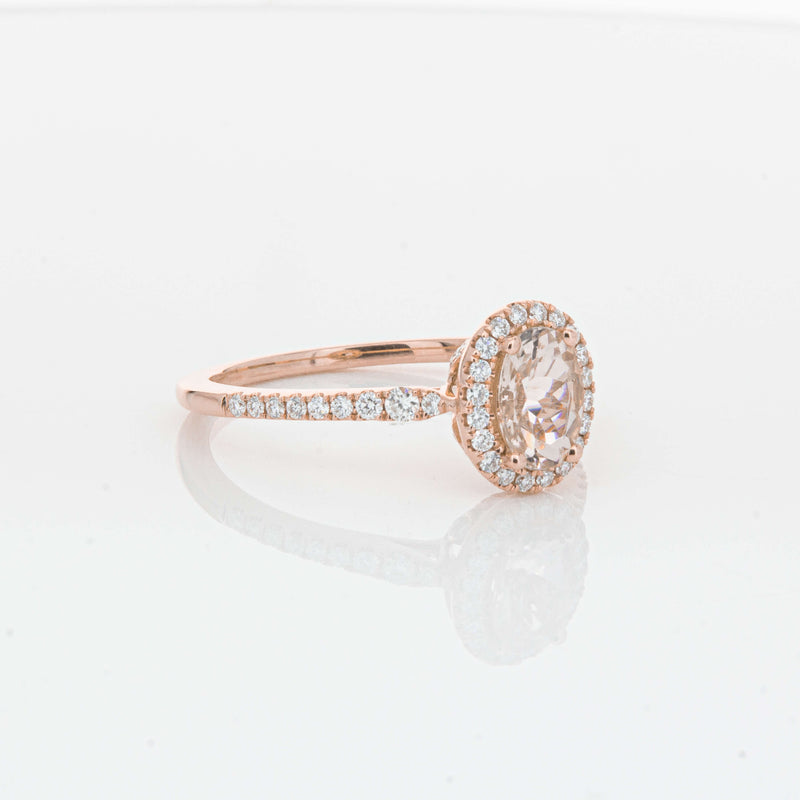 Soft peach hued oval faceted morganite combines with exceptional sparkle to make a luminous statement in this gorgeous mini Sierra ring from our signature 1899 collection.