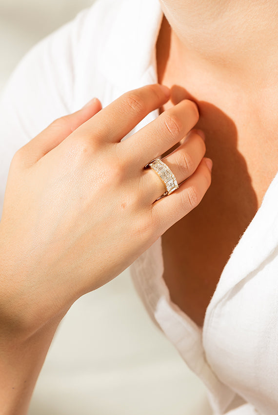 Model wearing natural diamond and gemstone jewellery from the 1899 Collection