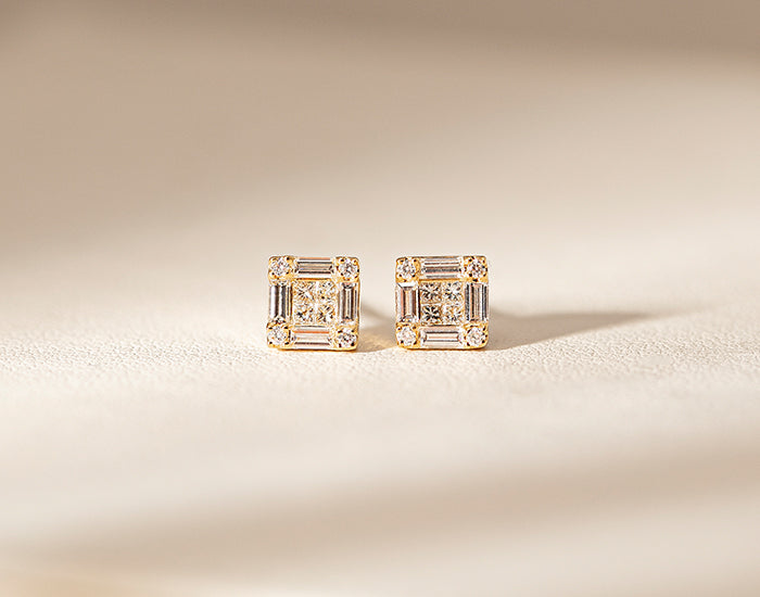 You will sparkle bright in these stunning diamond Quattro stud earrings. These sophisticated earrings boast princess, round brilliant and baguette cut diamonds set in 18ct rose gold from our signature 1899 collection. You will feel like royalty!