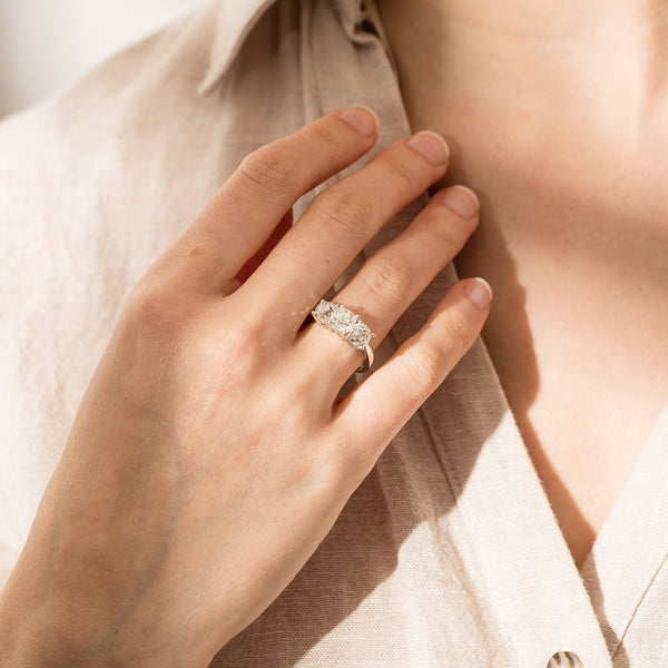 Treat her to something special with this classic diamond ring for our Heritage collection. The Heritage collection features a beautiful selection of unique vintage diamonds, hand cut by master craftsmen of a bygone era. The Heritage collection imparts old world glamour into signature pieces which reflect the unique nature of your love. This gorgeous piece is beautifully crafted in 18ct white gold and boasts three old mine cut diamonds which rest in a three graduated claw setting. A ring she will cherish forever.