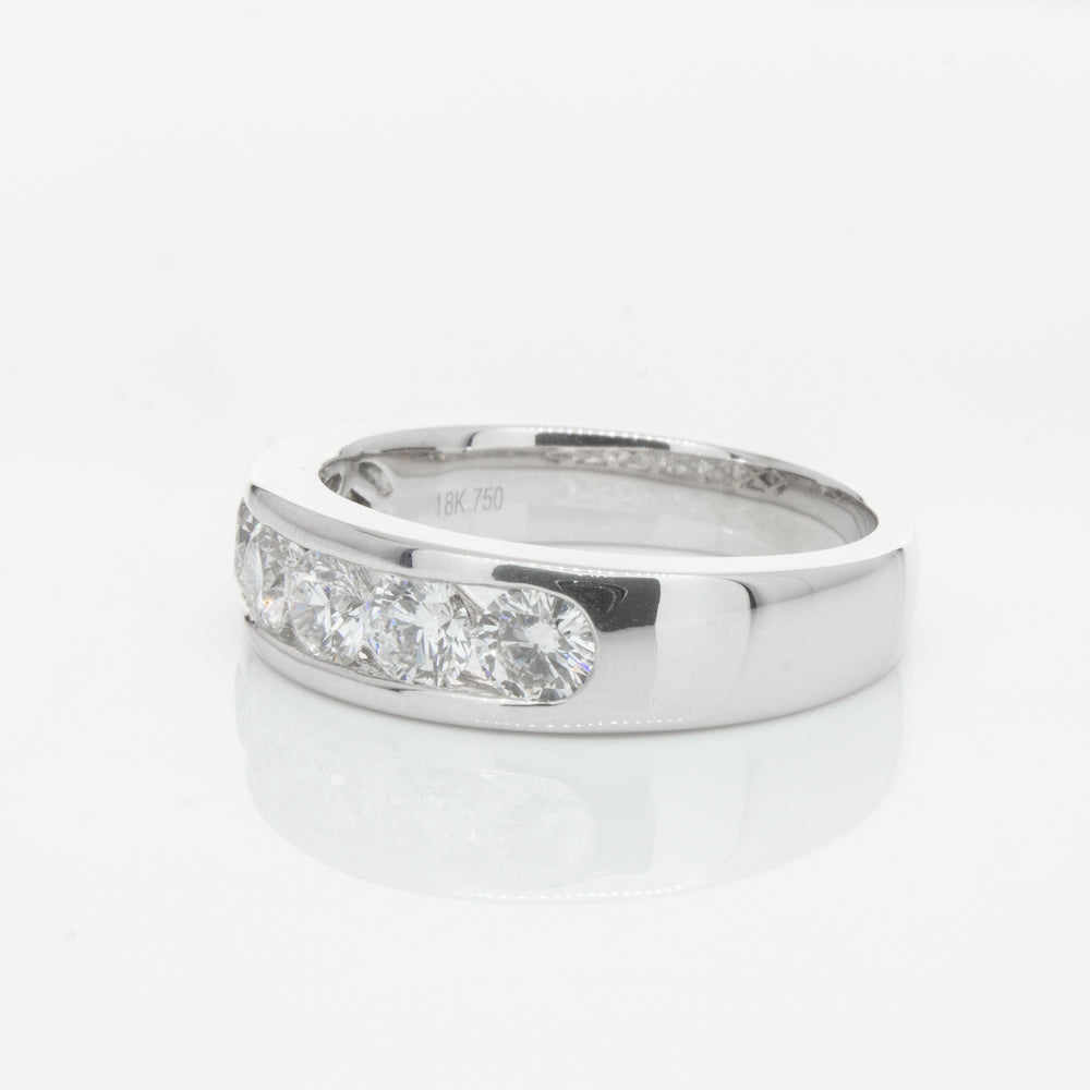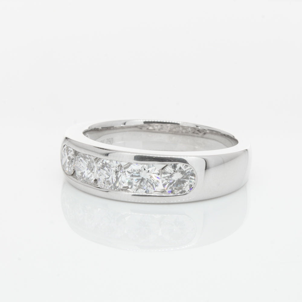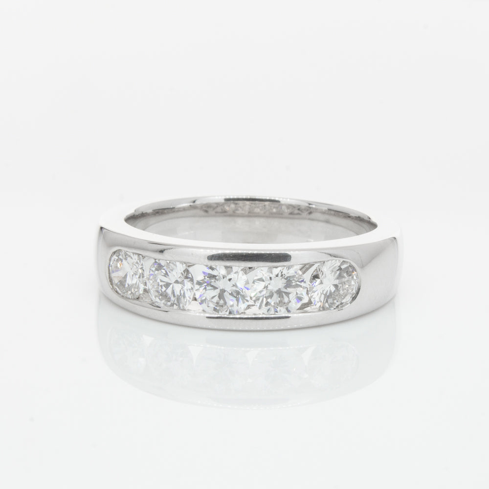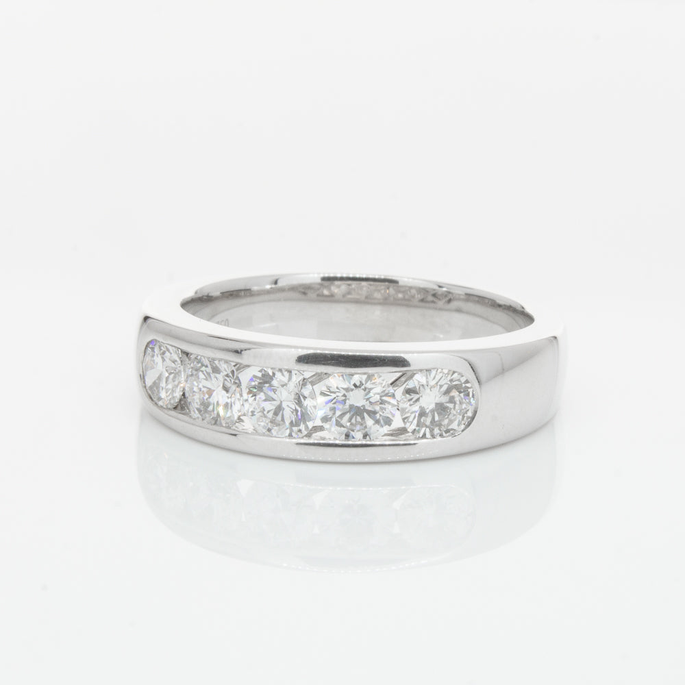 This glittering diamond Loire ring boasts 5 dazzling round brilliant cut diamonds resting in an 18ct white gold channel setting. The perfect present to mark that special occasion or anniversary.