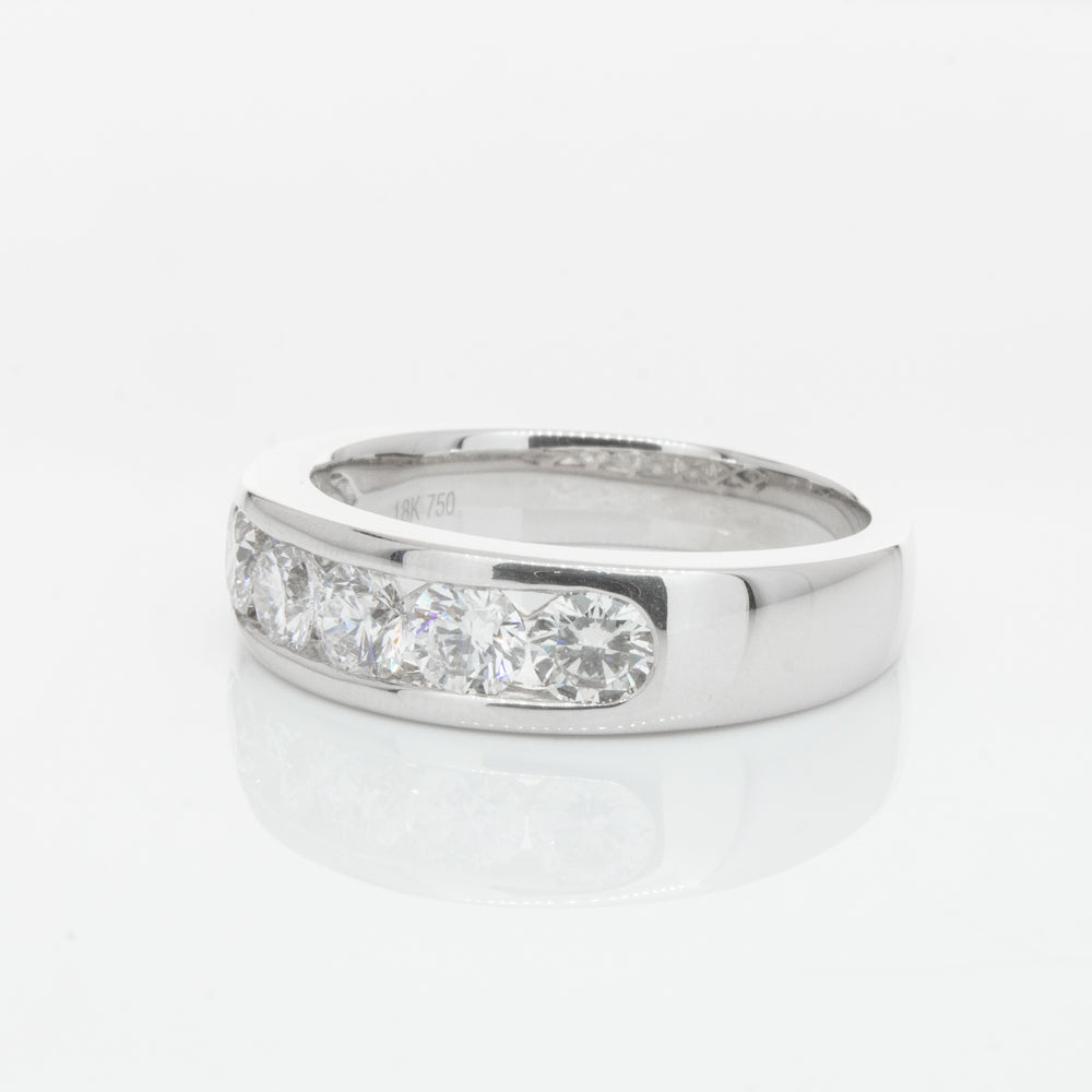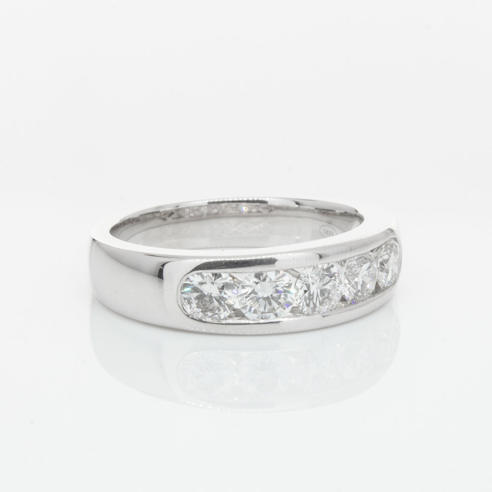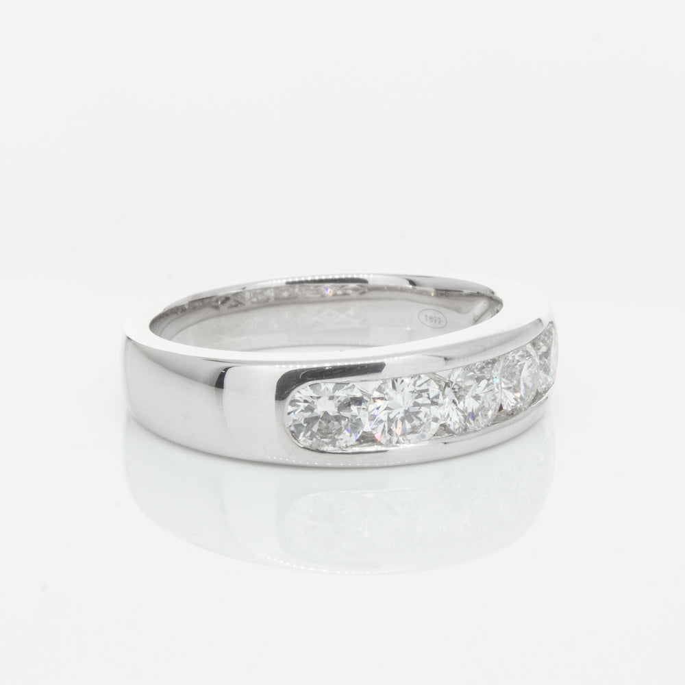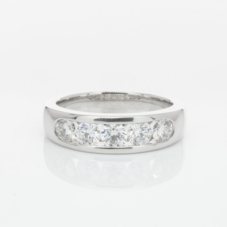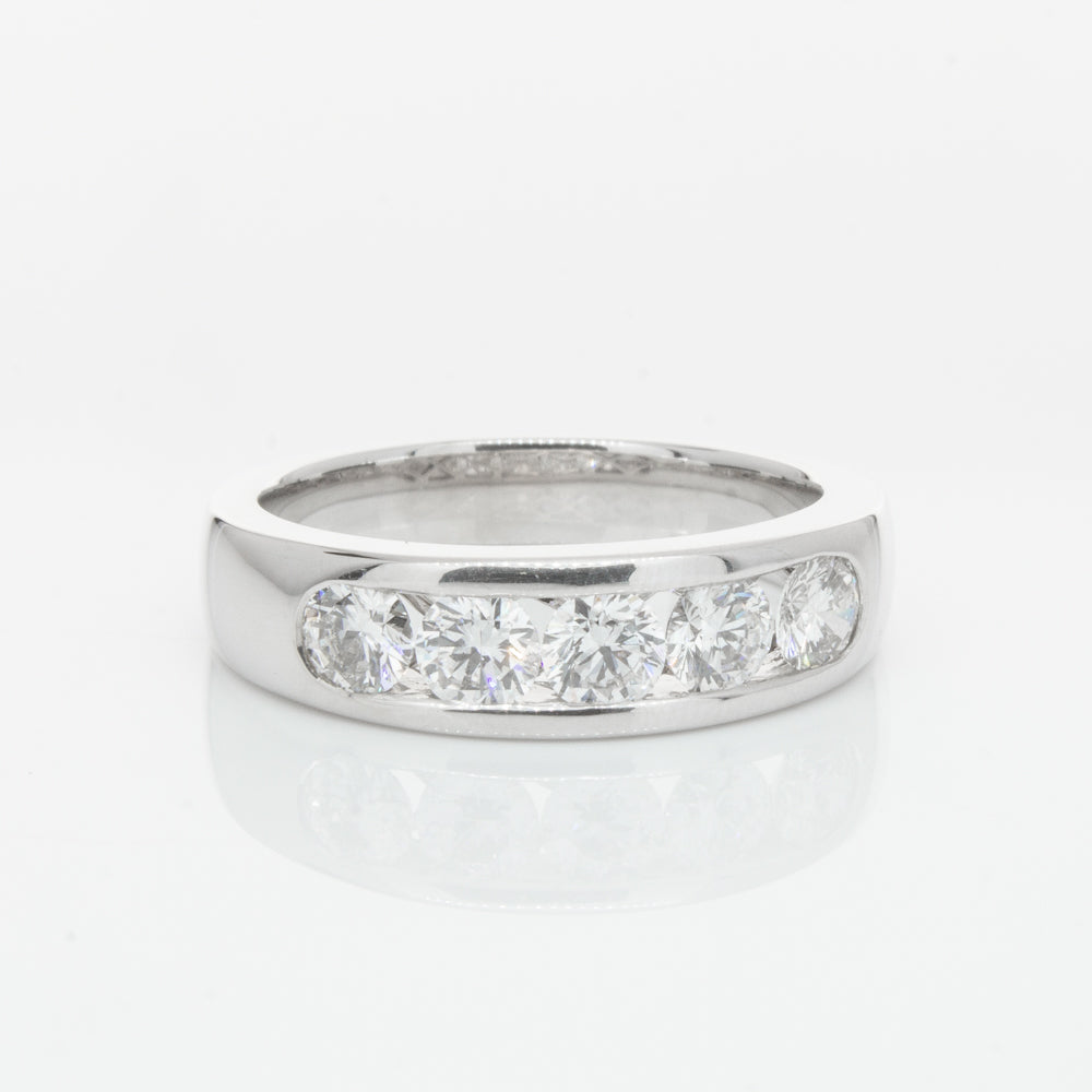 This glittering diamond Loire ring boasts 5 dazzling round brilliant cut diamonds resting in an 18ct white gold channel setting. The perfect present to mark that special occasion or anniversary.
