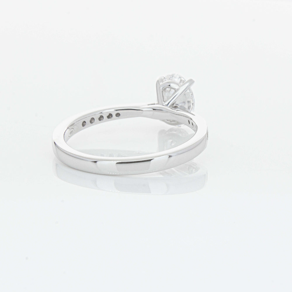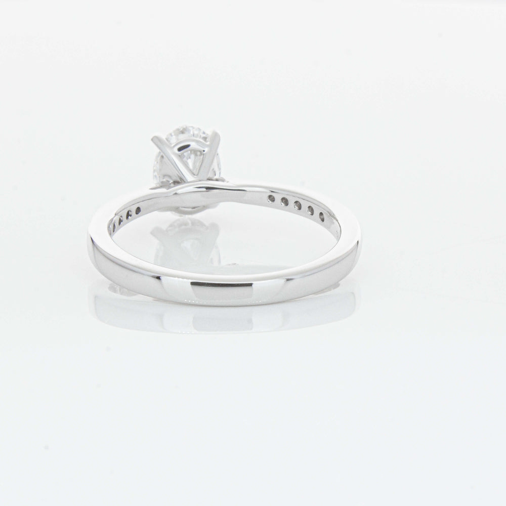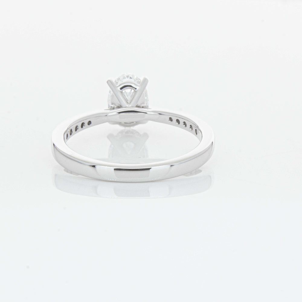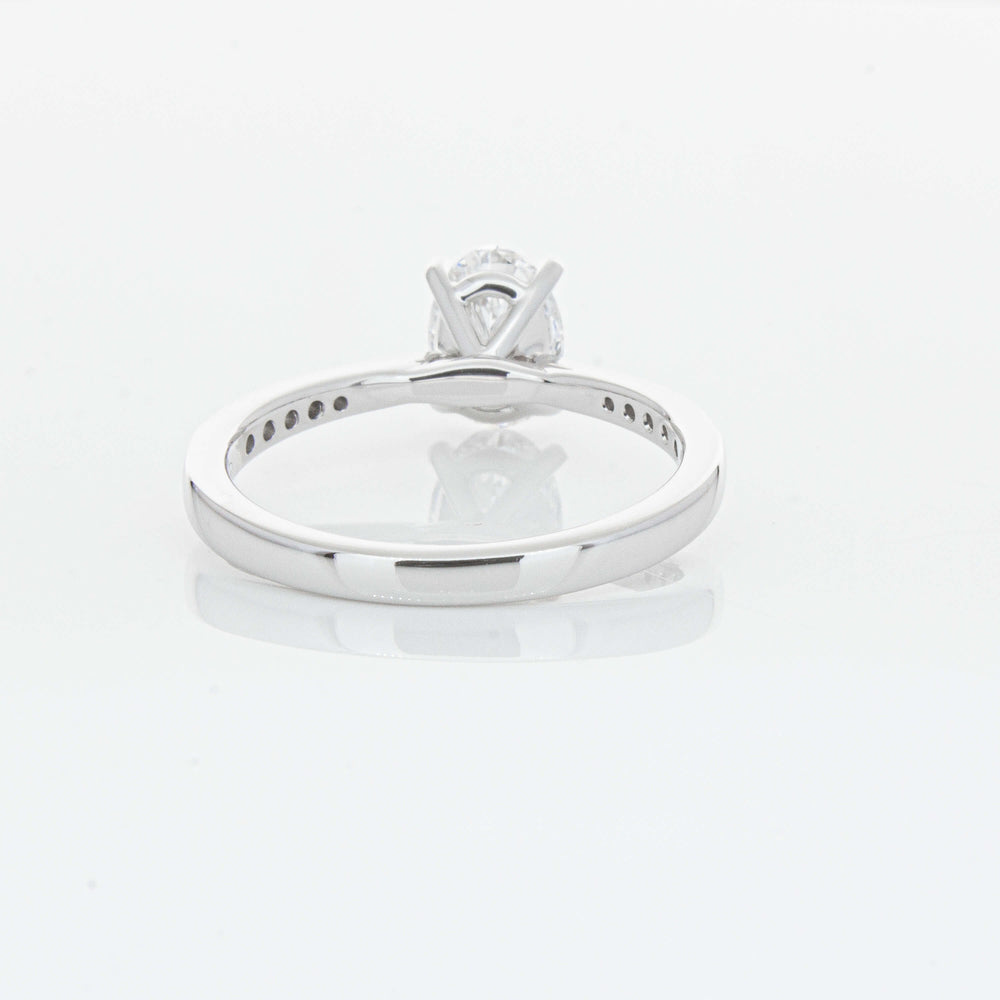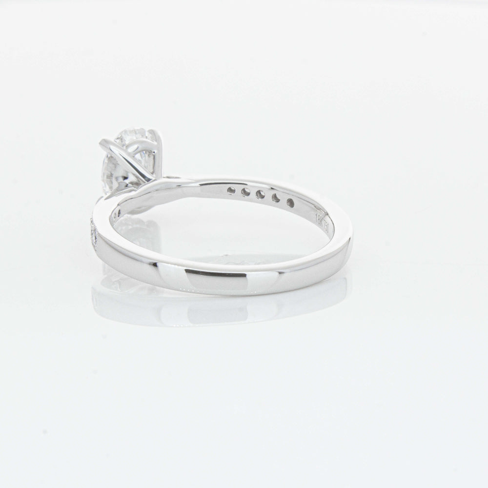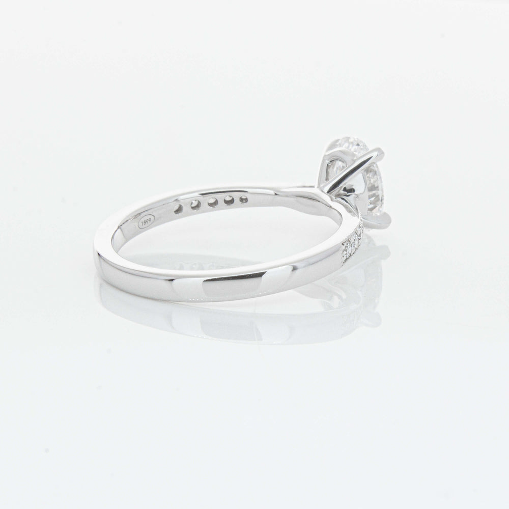 A delicate diamond set band with milgrain detailing, tapers towards the zenith to showcase a sparkling diamond.
