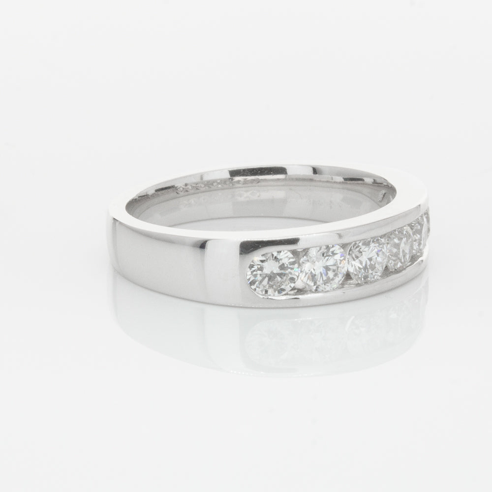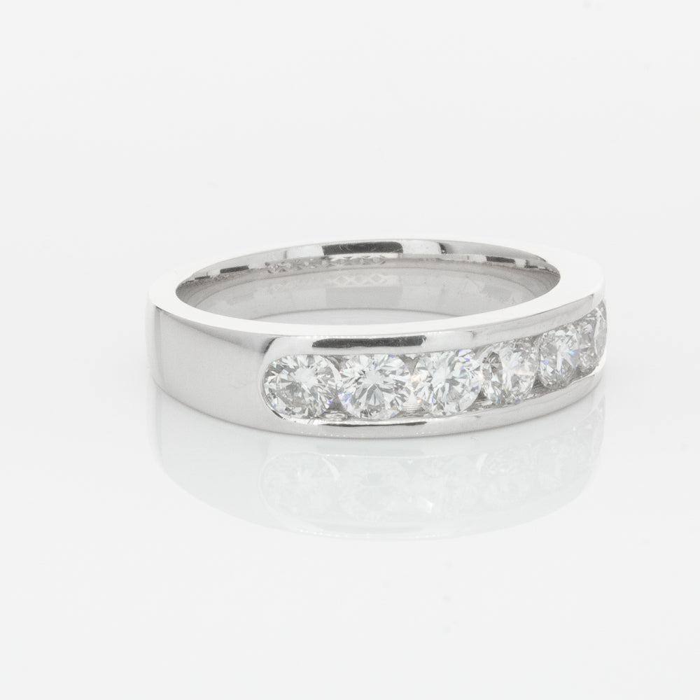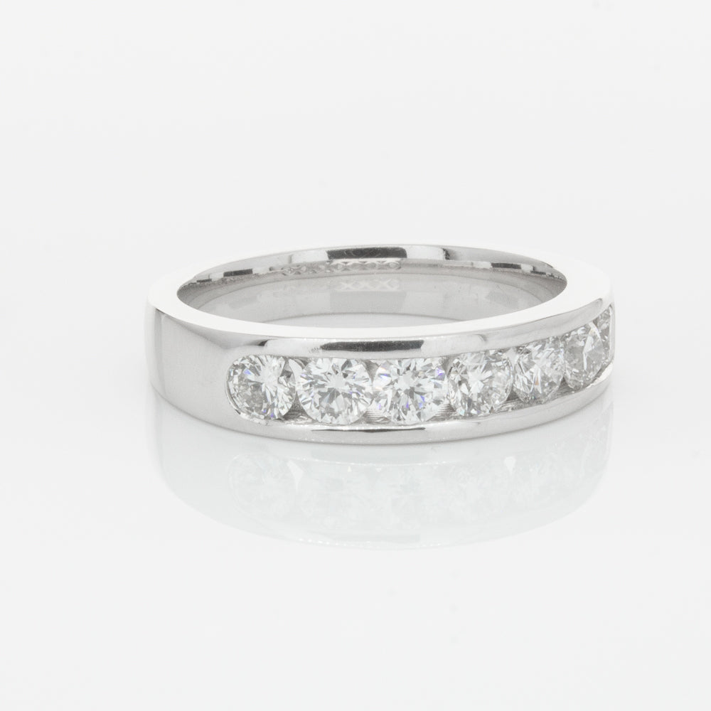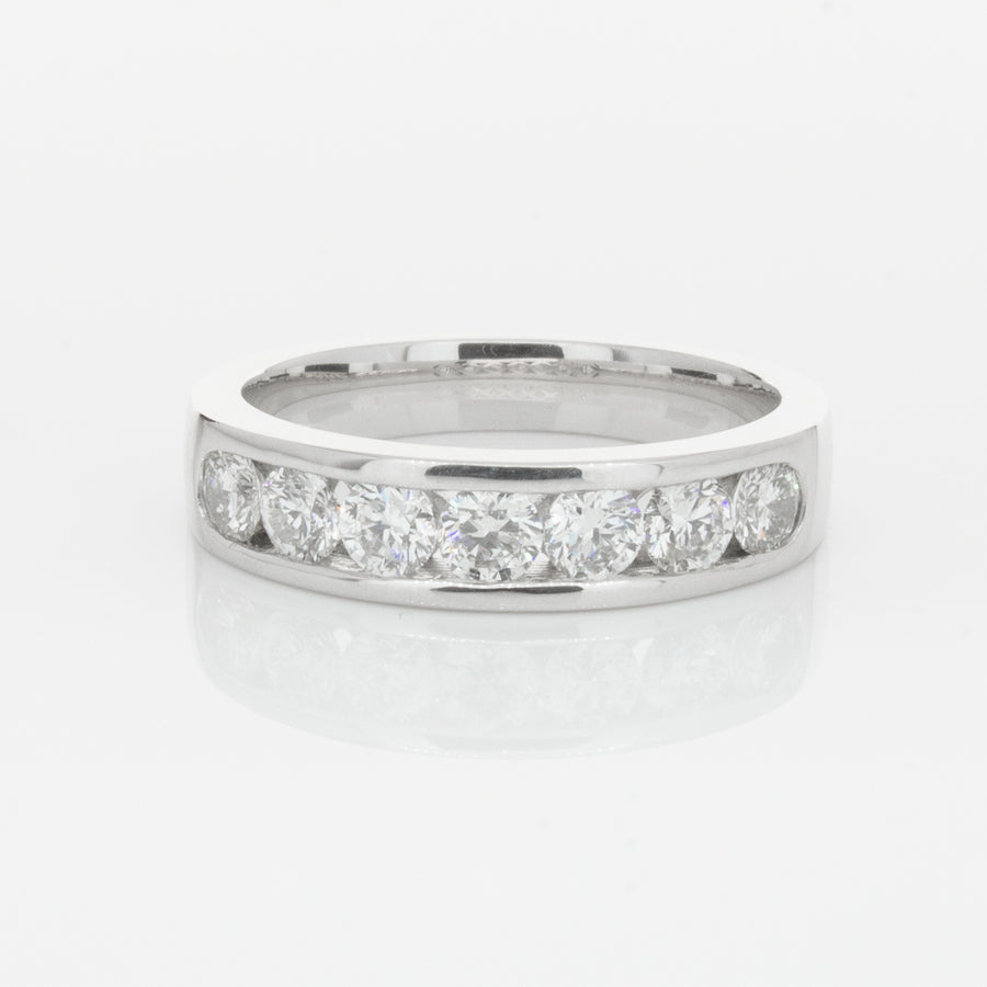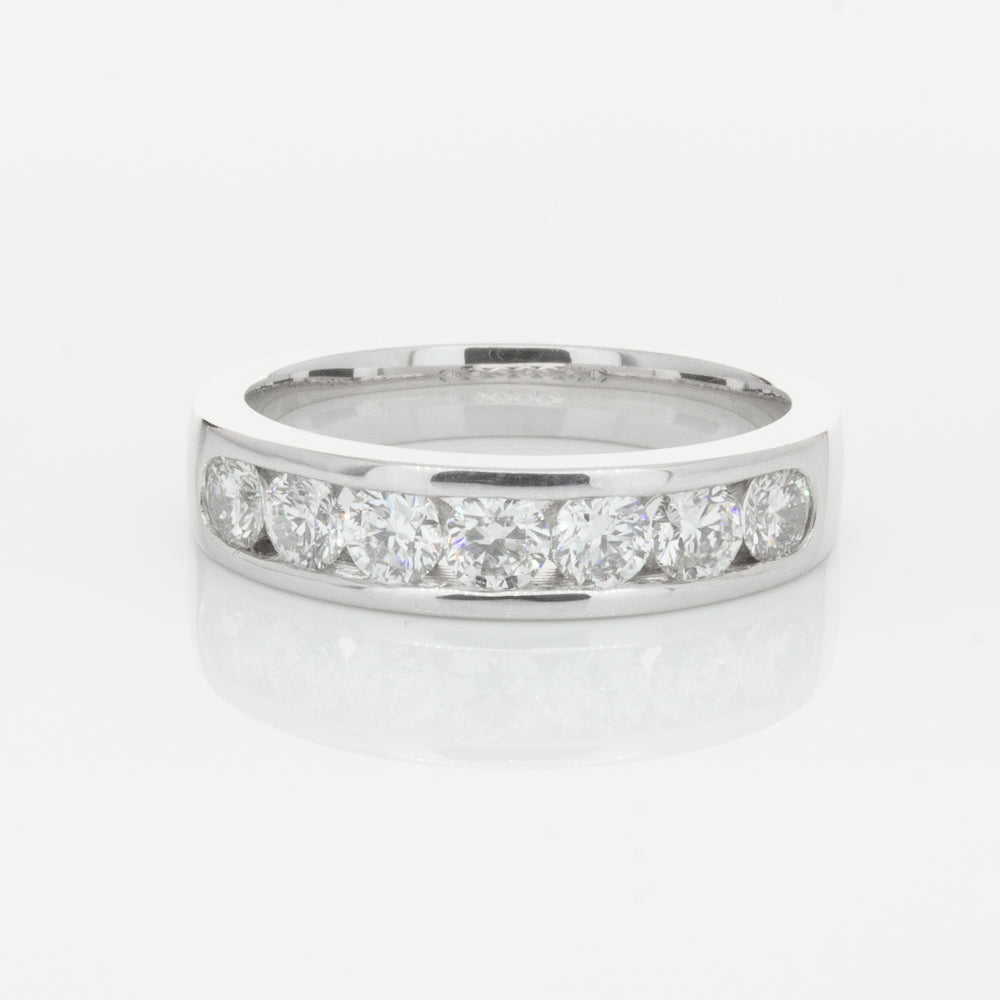 Beautifully crafted in high palladium 18ct white gold, this timeless piece from our signature 1899 collection features seven channel set round brilliant cut diamonds which rest in a stylish tapering band.