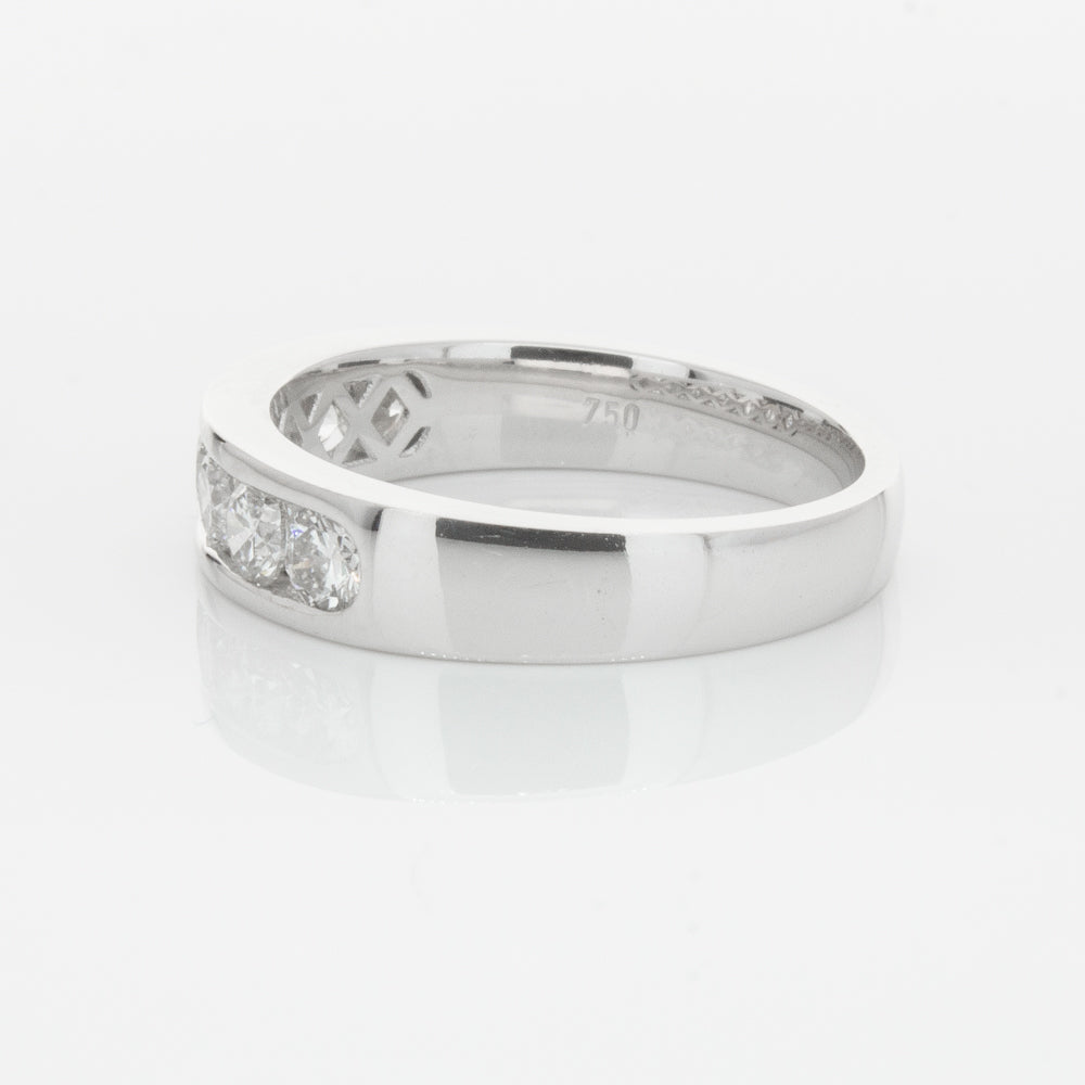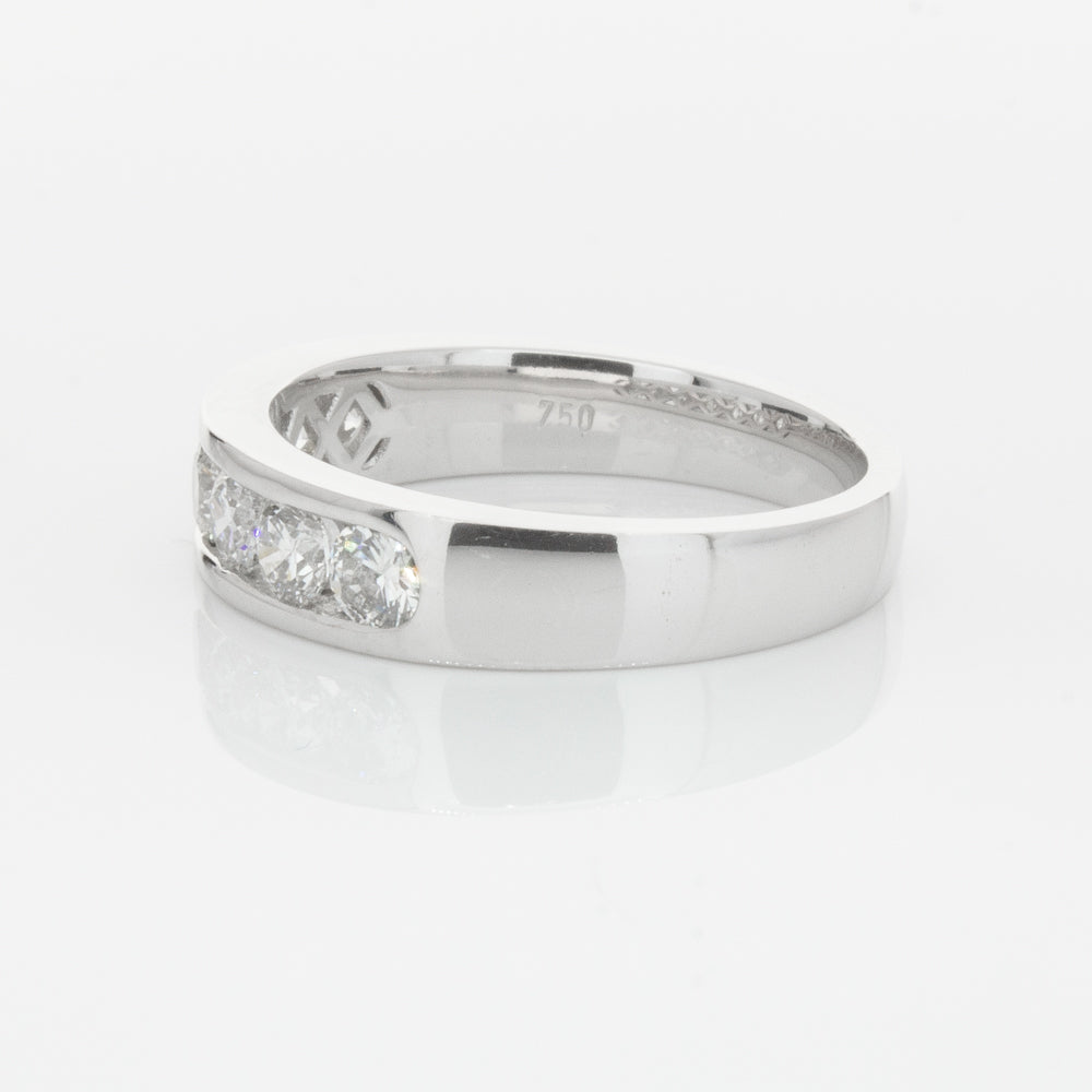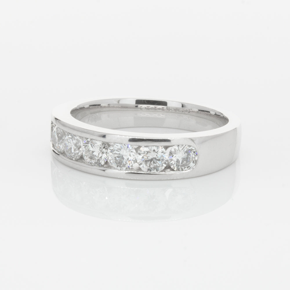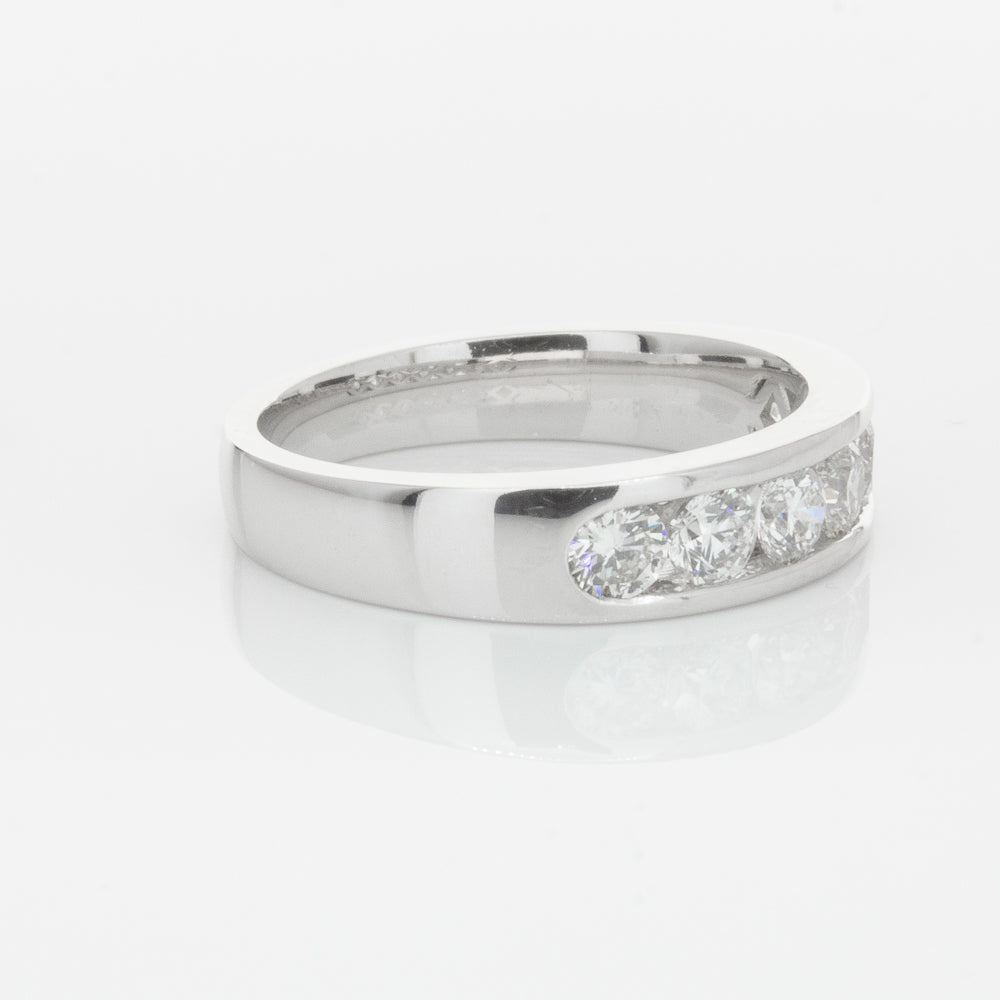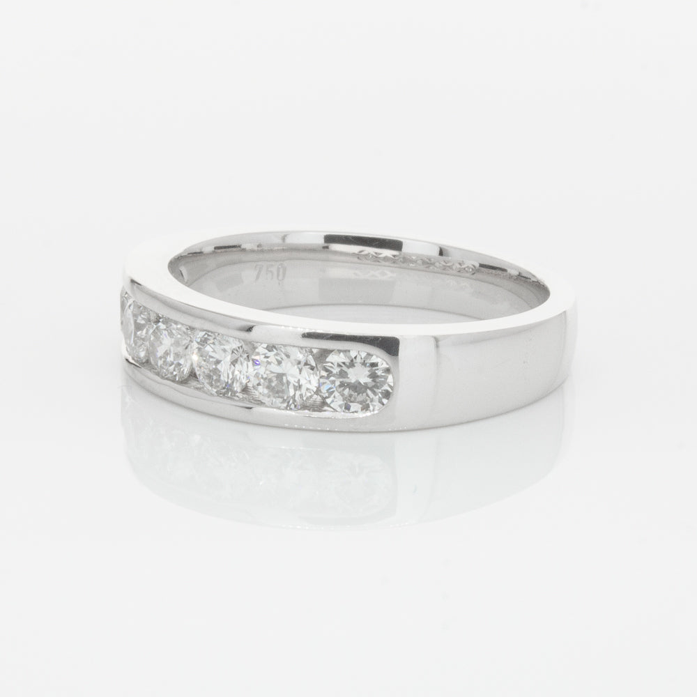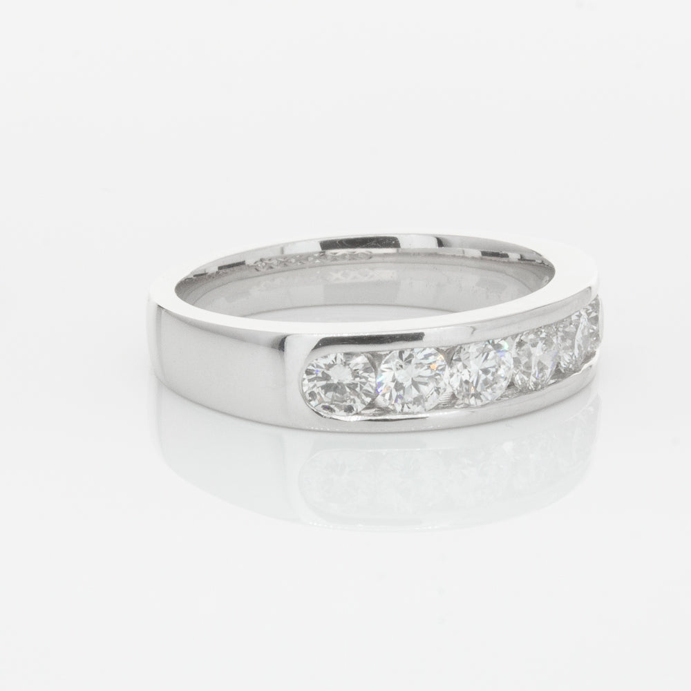 Beautifully crafted in high palladium 18ct white gold, this timeless piece from our signature 1899 collection features seven channel set round brilliant cut diamonds which rest in a stylish tapering band.