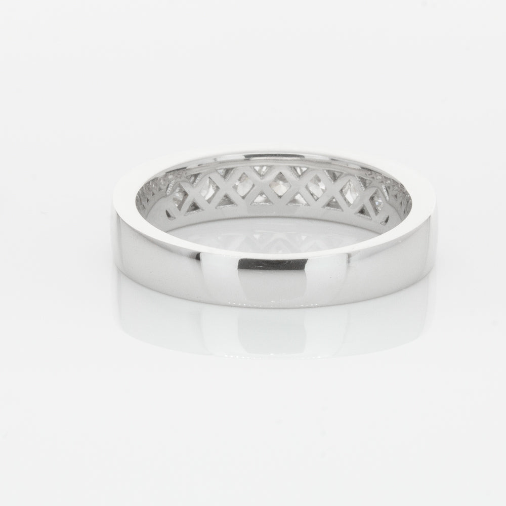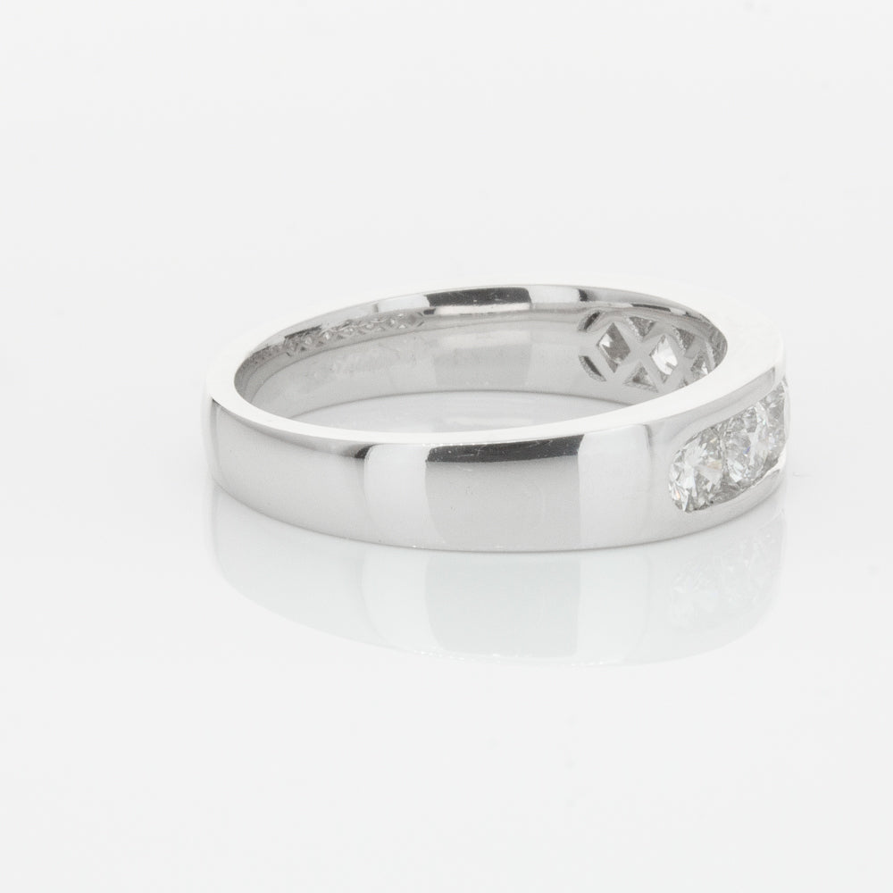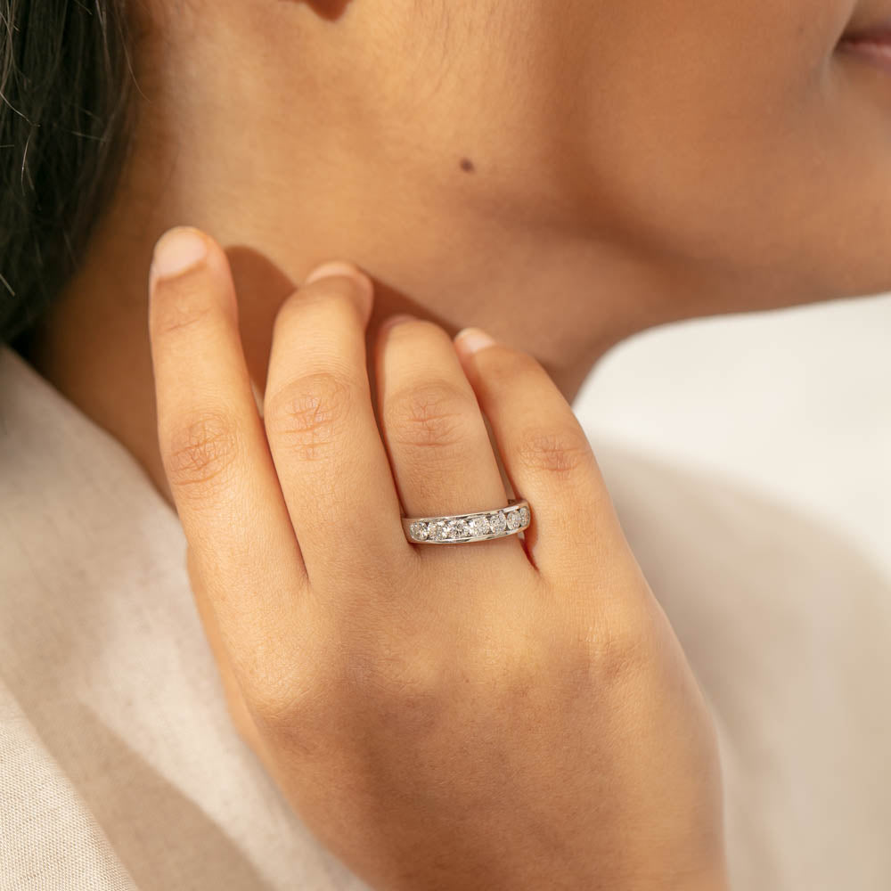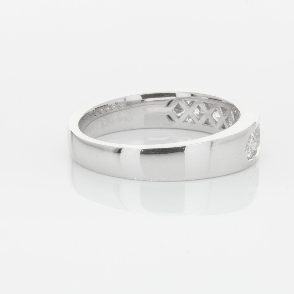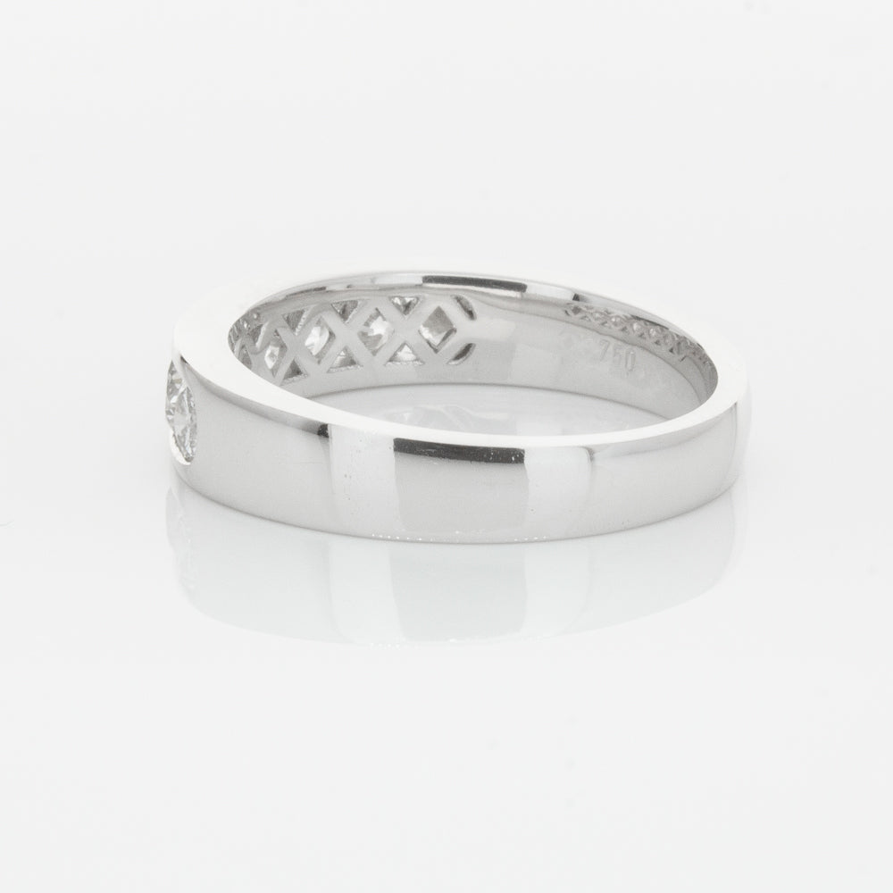 Beautifully crafted in high palladium 18ct white gold, this timeless piece from our signature 1899 collection features seven channel set round brilliant cut diamonds which rest in a stylish tapering band.