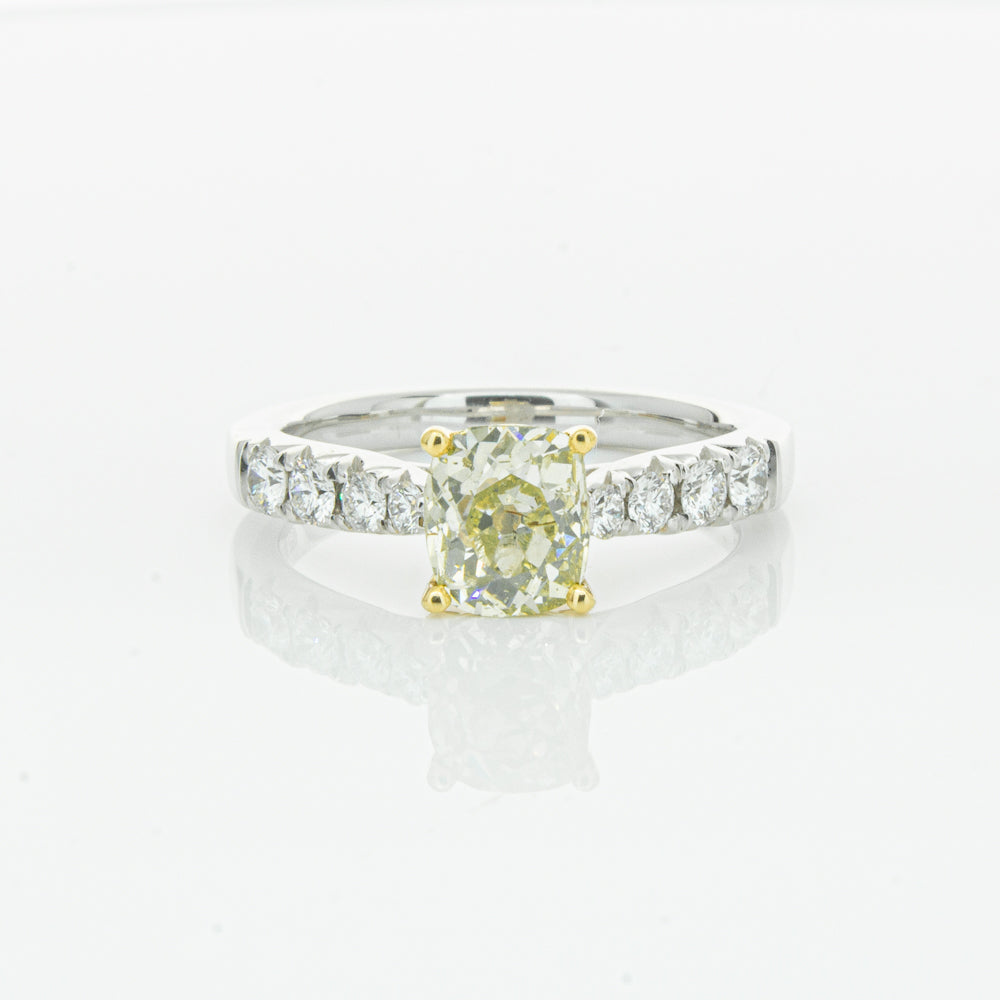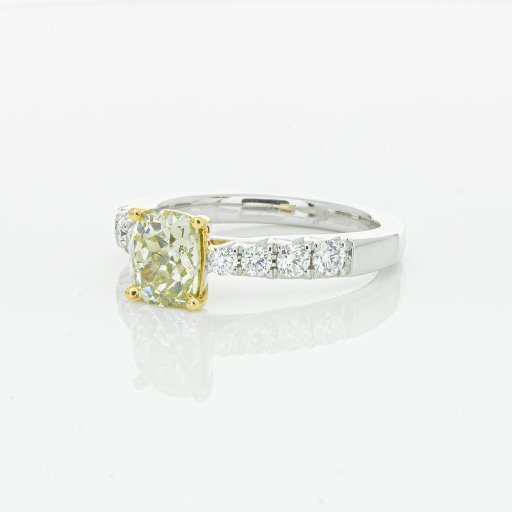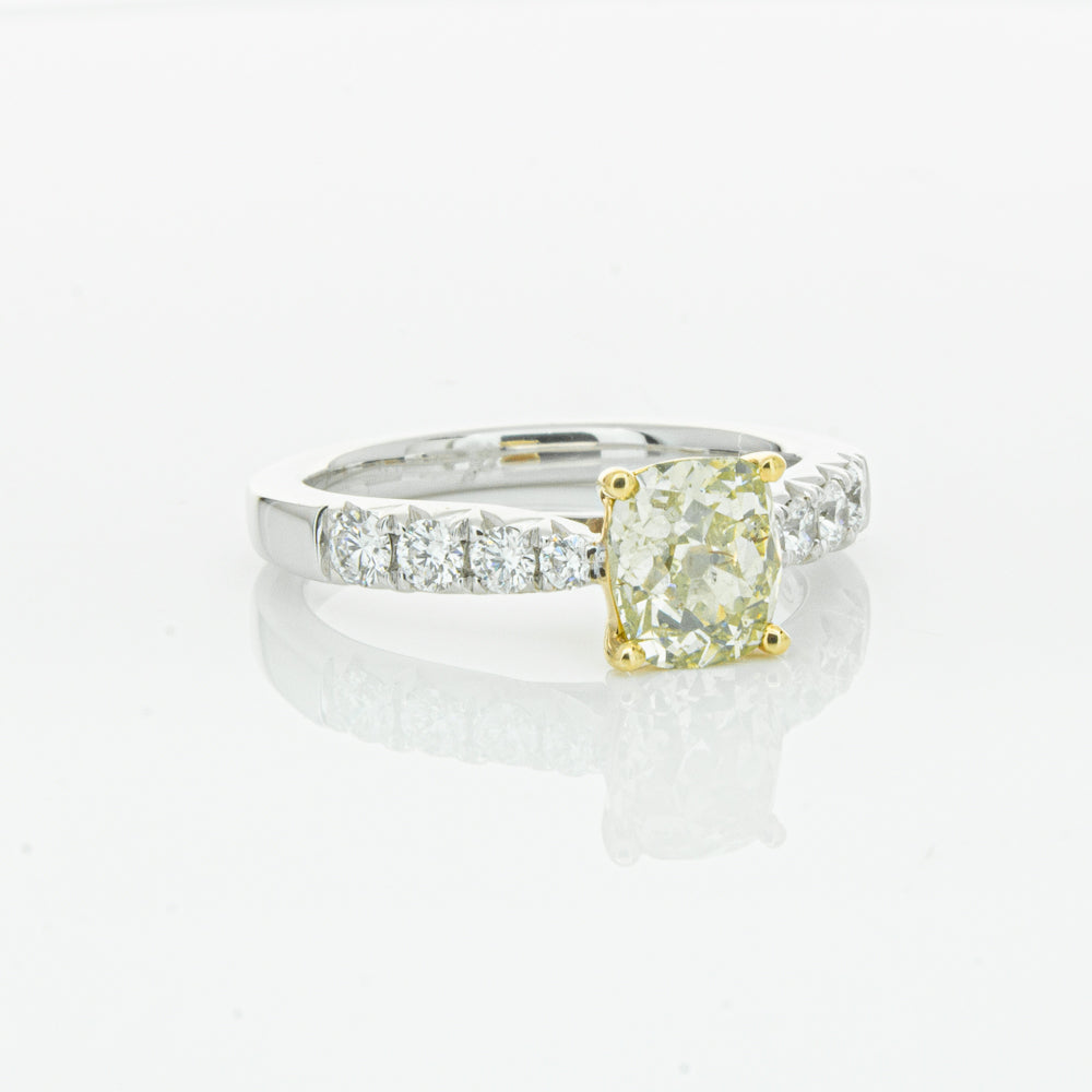 From our Heritage collection, this Phoenix ring boasts an impressive old mine cut diamond resting in an elegant 18ct yellow gold four claw setting. An 18ct white gold tapered diamond set band adds extra elegance to this breathtaking ring.