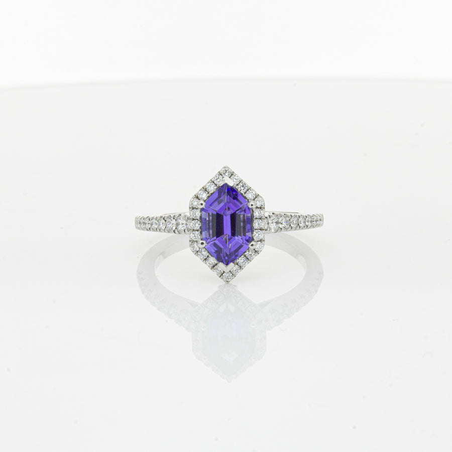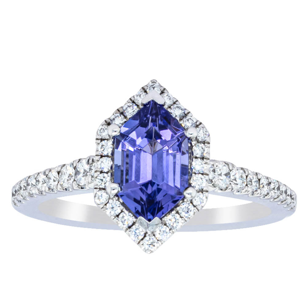 Lively in colour, this hexagonal cut Tanzanite gemstone combines with exceptional sparkle to make a luminous statement in this gorgeous mini Sierra ring from our signature 1899 collection. Crafted in beautiful 18ct white gold.