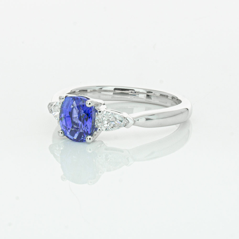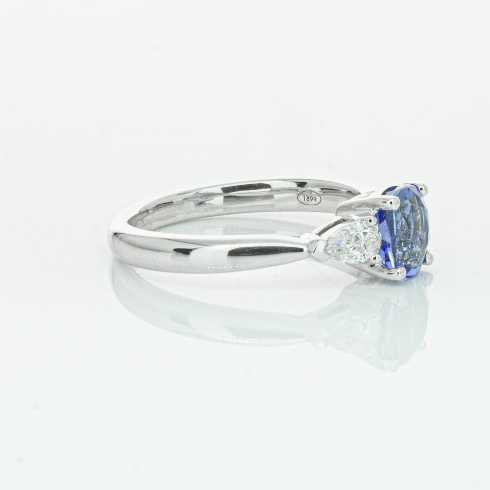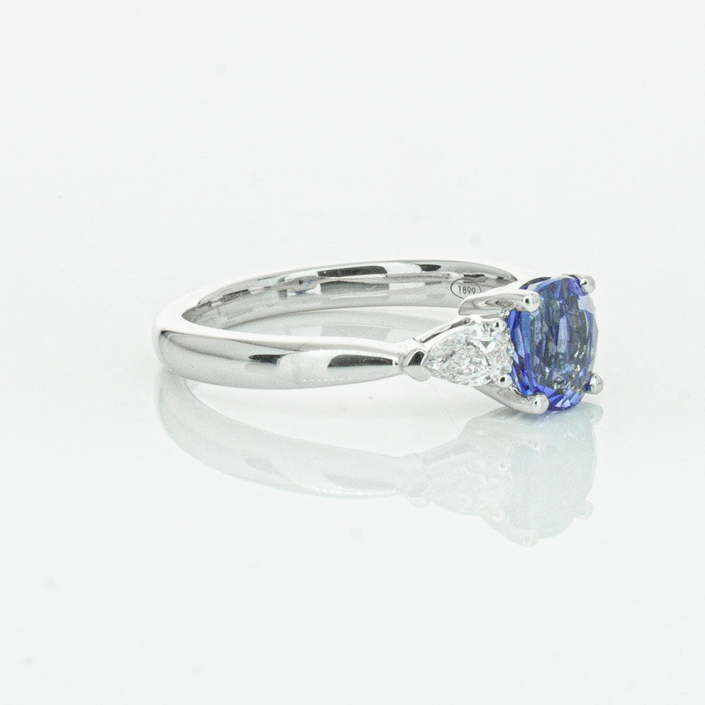 This Ayla Ring from our signature 1899 collection is a timeless reflection of classic beauty, set in 18ct white gold and featuring a 1.38ct oval faceted sapphire and two pear brilliant cut diamonds. An incomparable choice for special occasions.