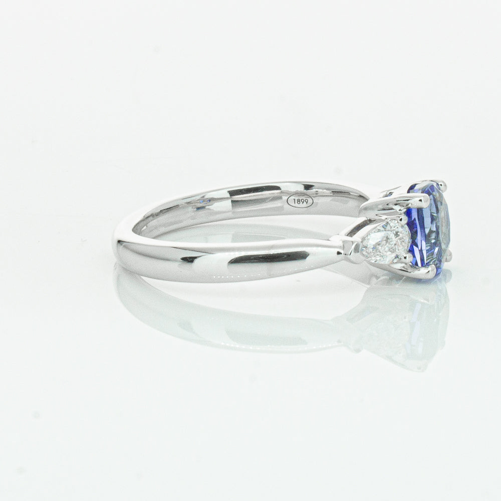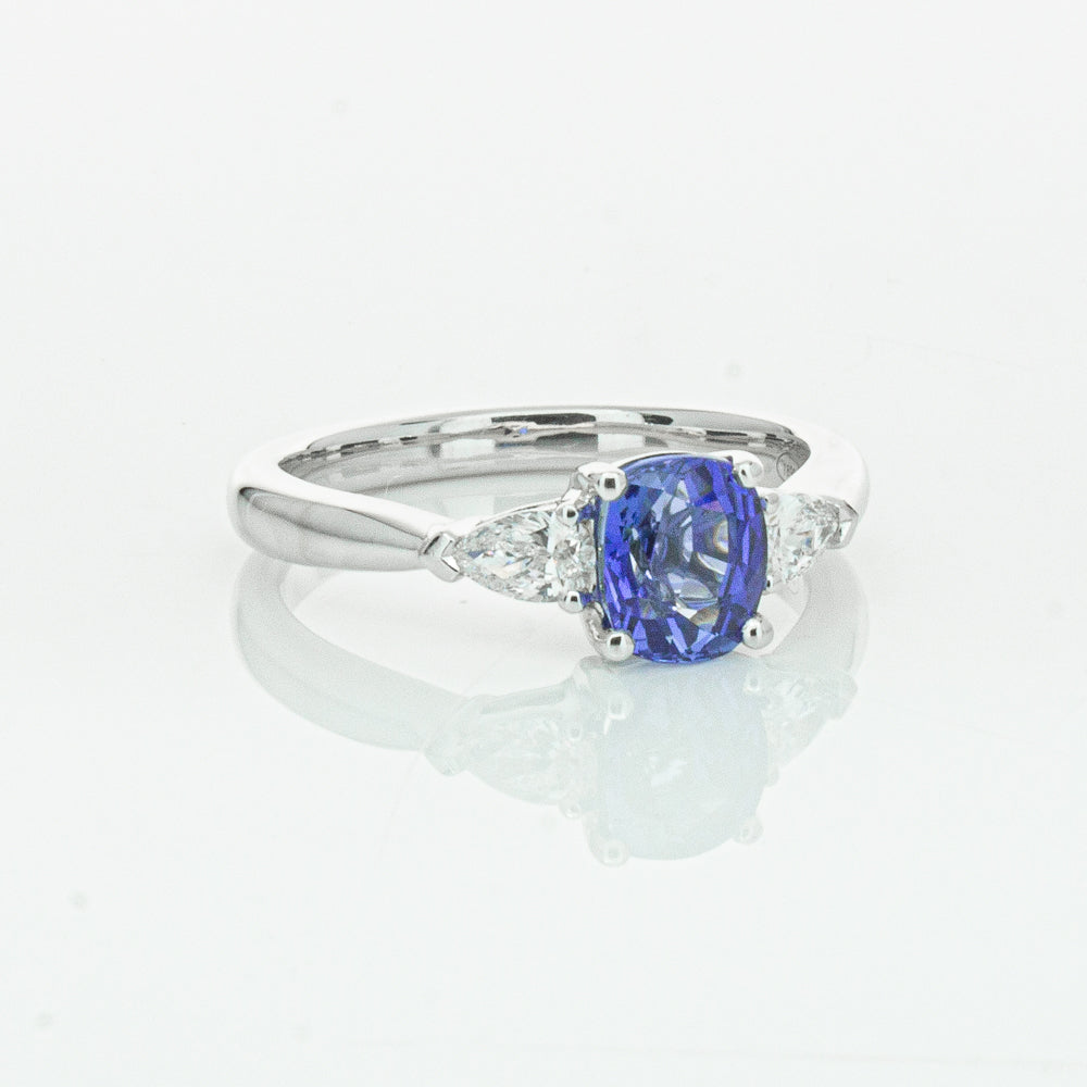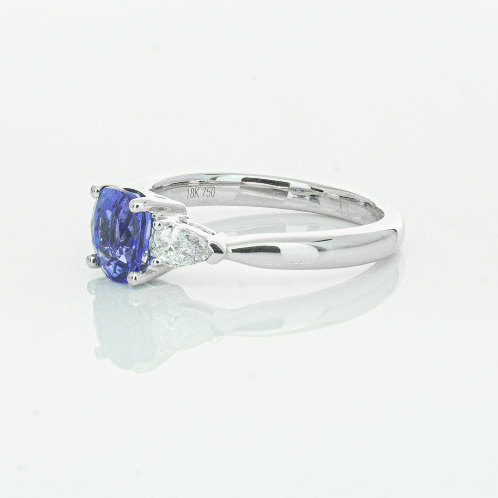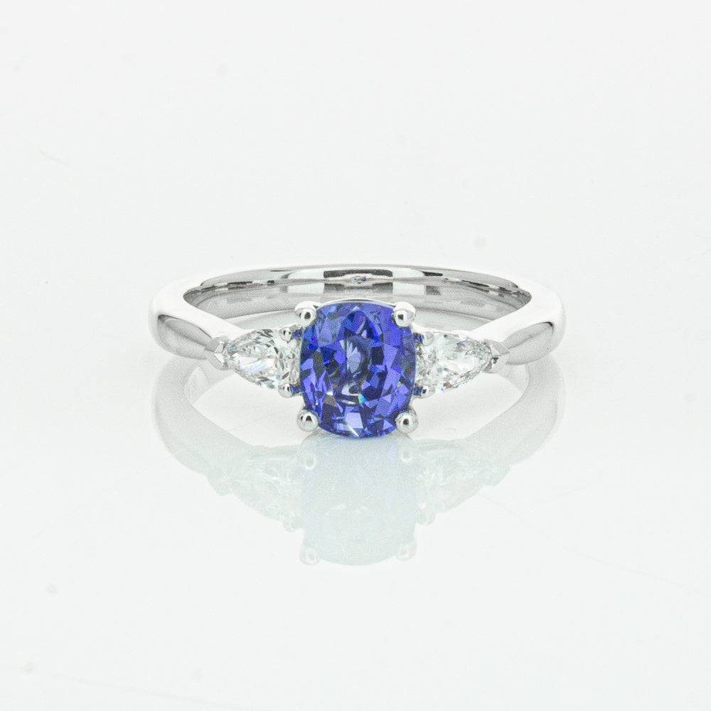 This Ayla Ring from our signature 1899 collection is a timeless reflection of classic beauty, set in 18ct white gold and featuring a 1.38ct oval faceted sapphire and two pear brilliant cut diamonds. An incomparable choice for special occasions.