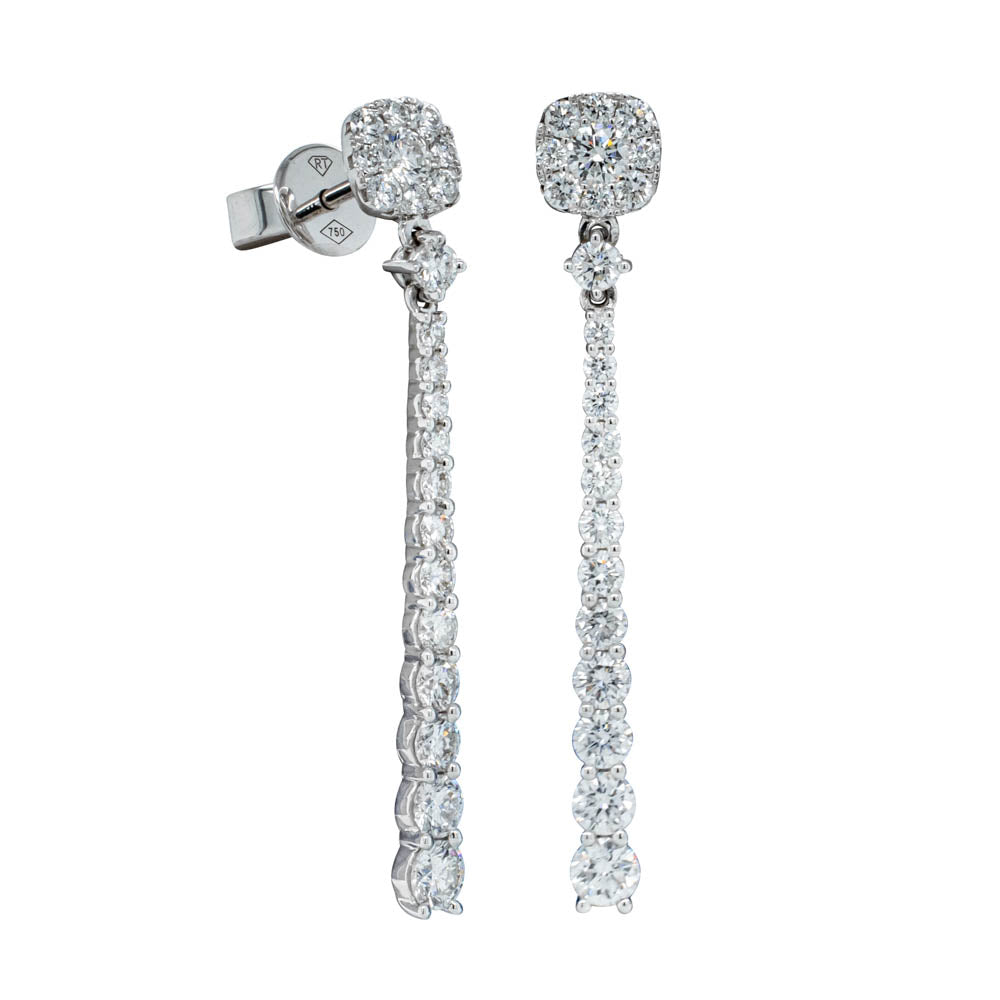 Be the envy of all wearing these sparkling diamond earrings. Crafted carefully in 18ct white gold this elegant pair features round brilliant cut diamonds forming an elegant drop shape. You will receive many compliments wearing this shimmering pair!
