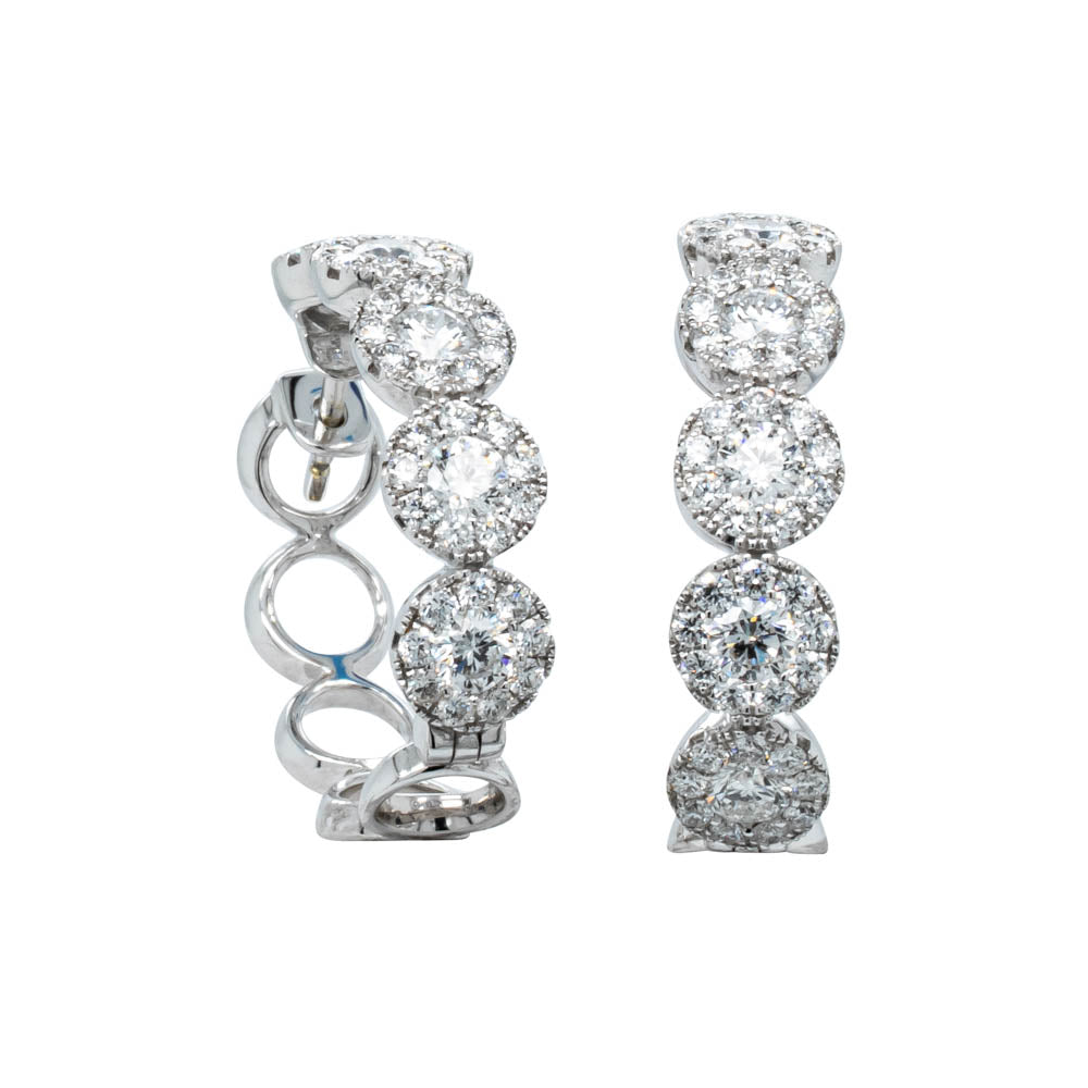 18ct White Gold 1.64ct Diamond Cluster Hoop Earrings