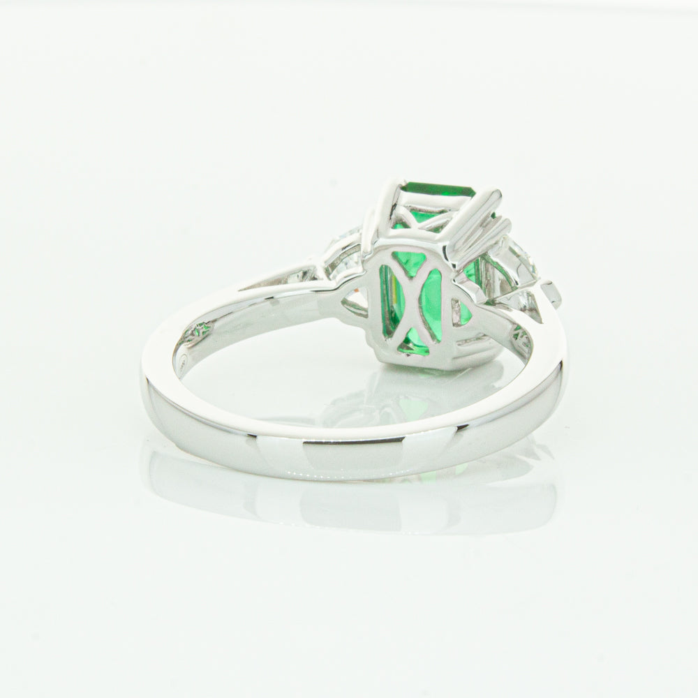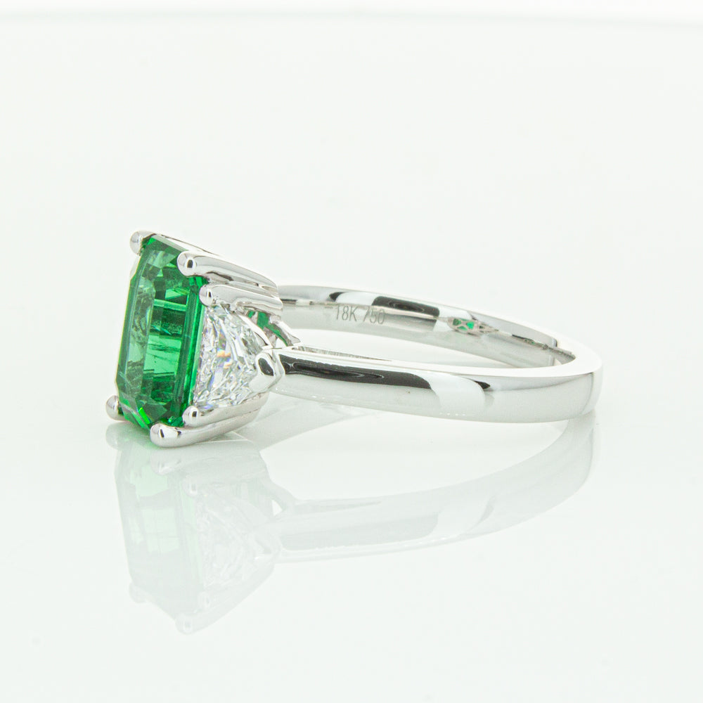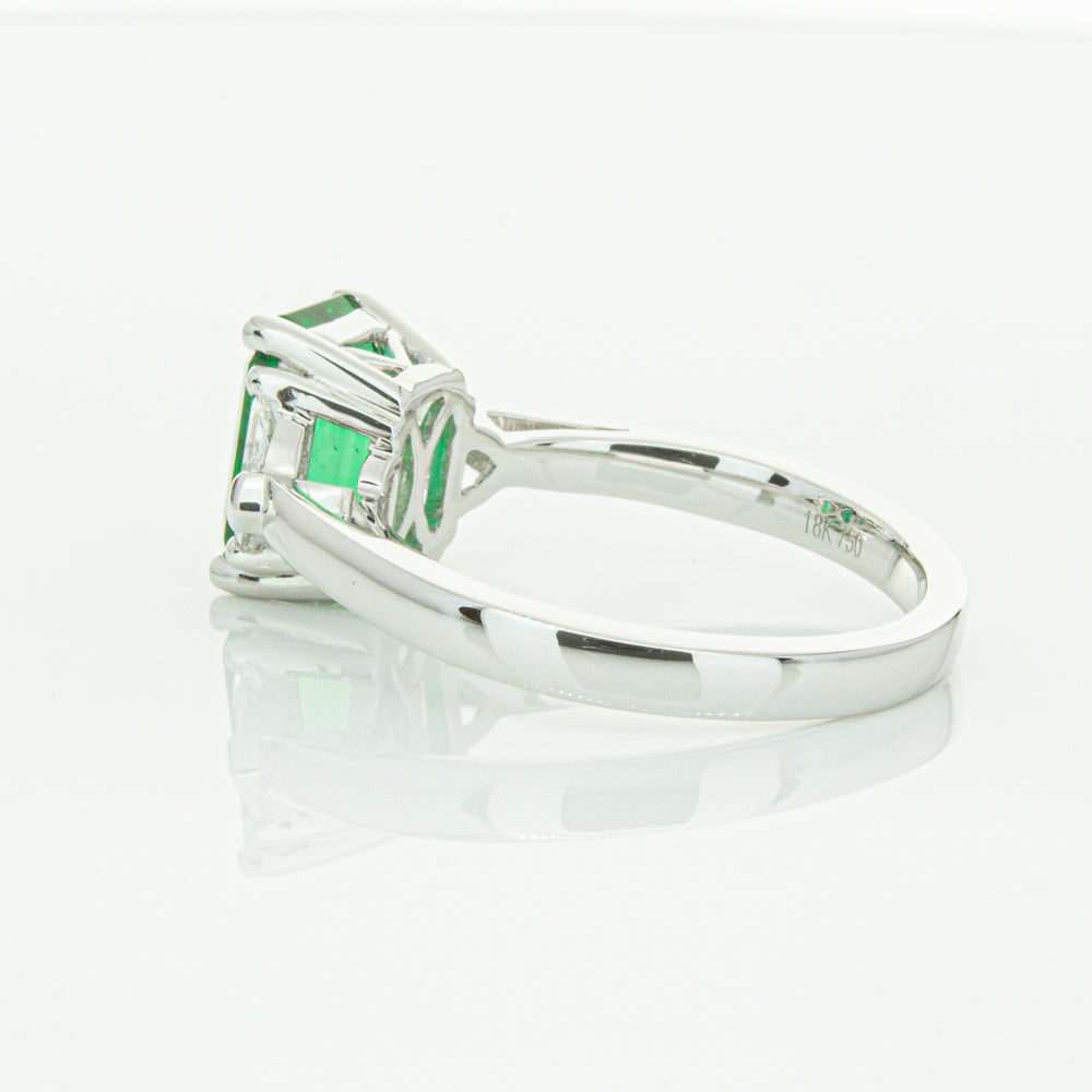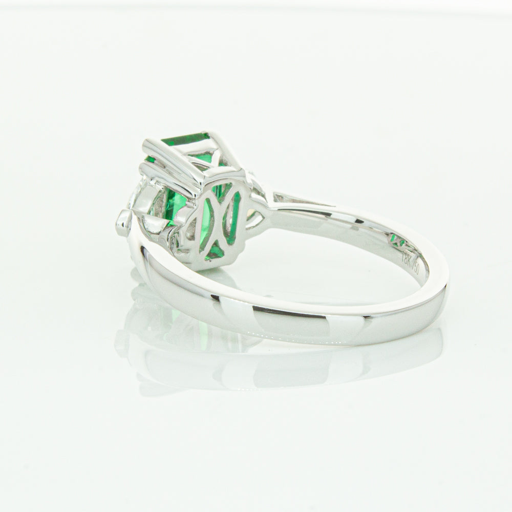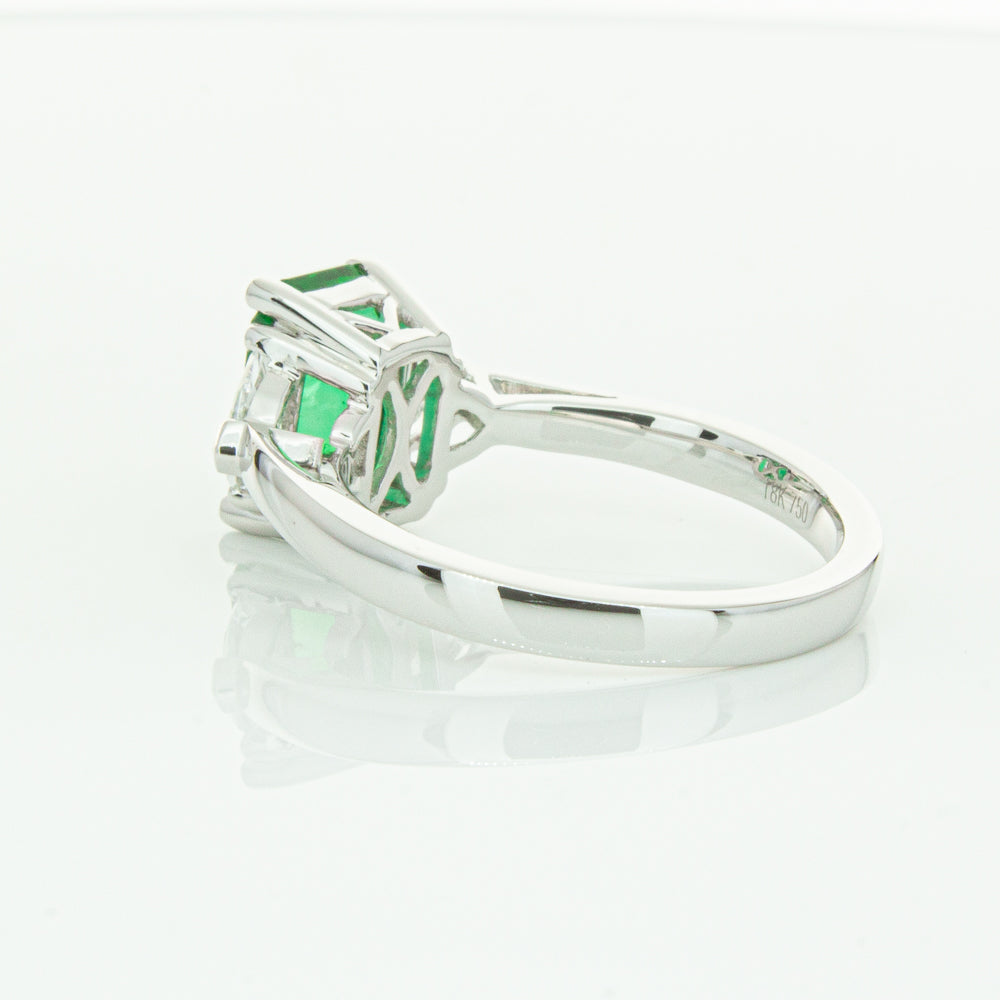 18ct White Gold Emerald & Diamond Three Stone Ring