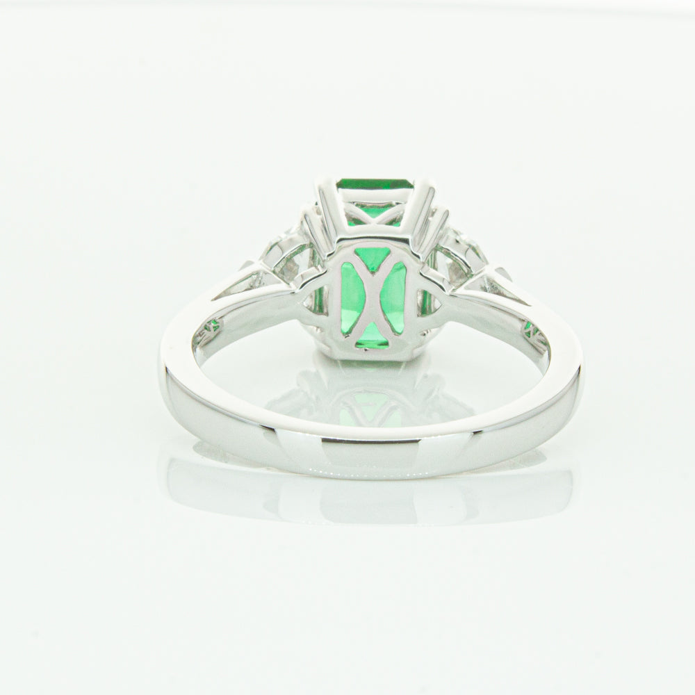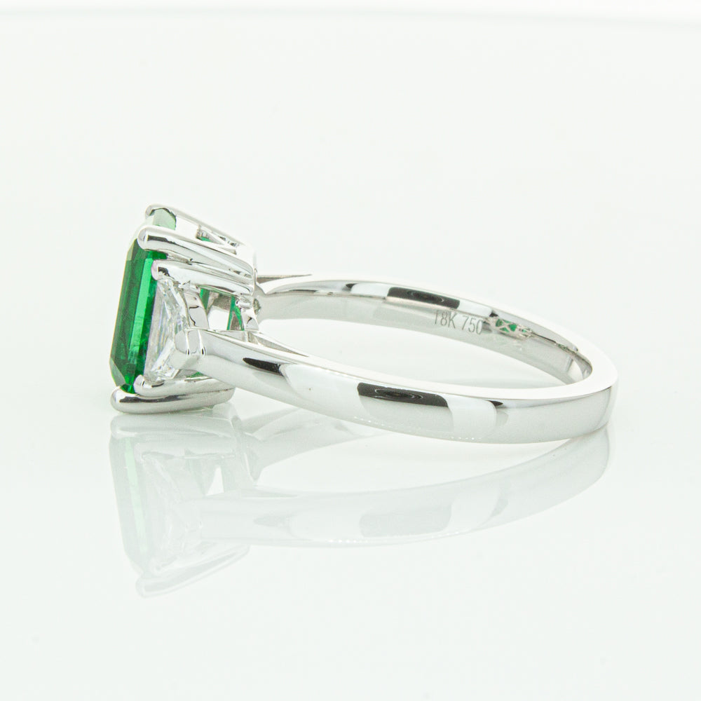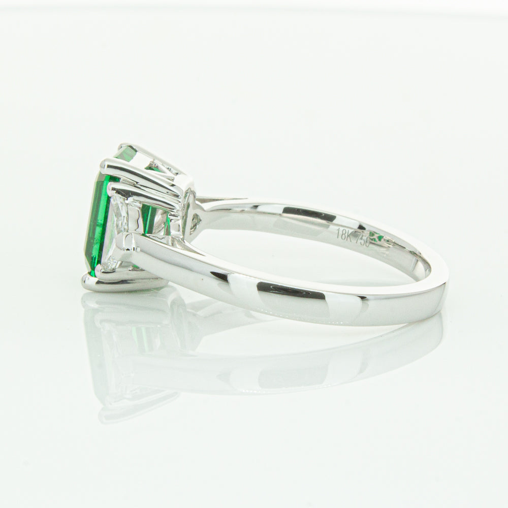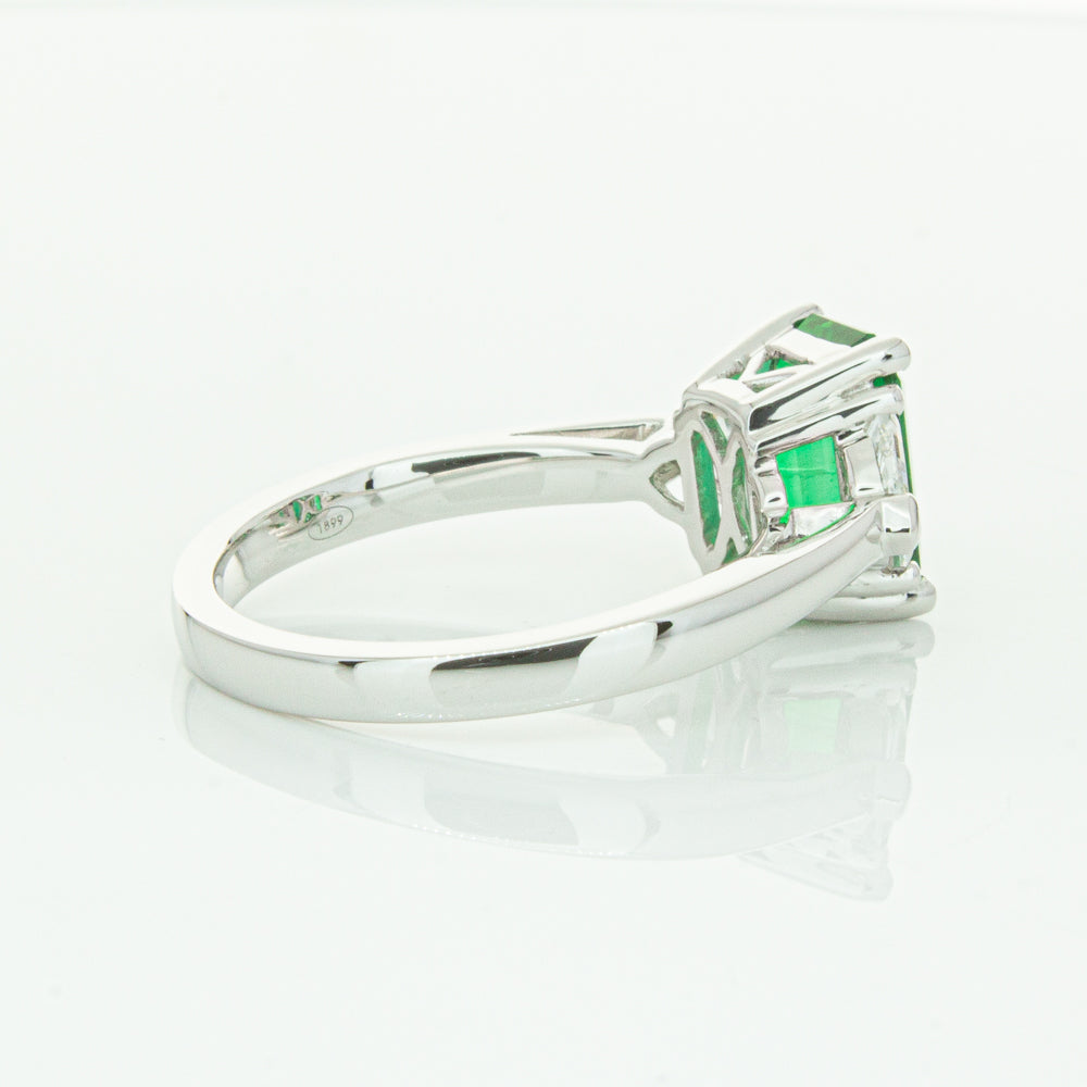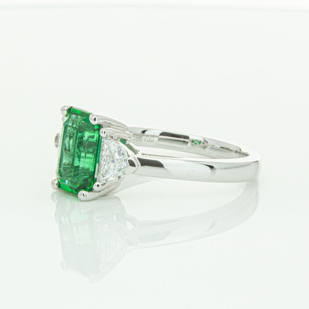 18ct White Gold Emerald & Diamond Three Stone Ring