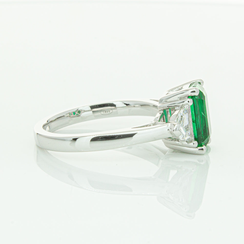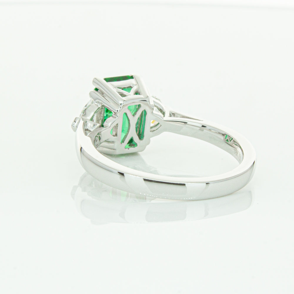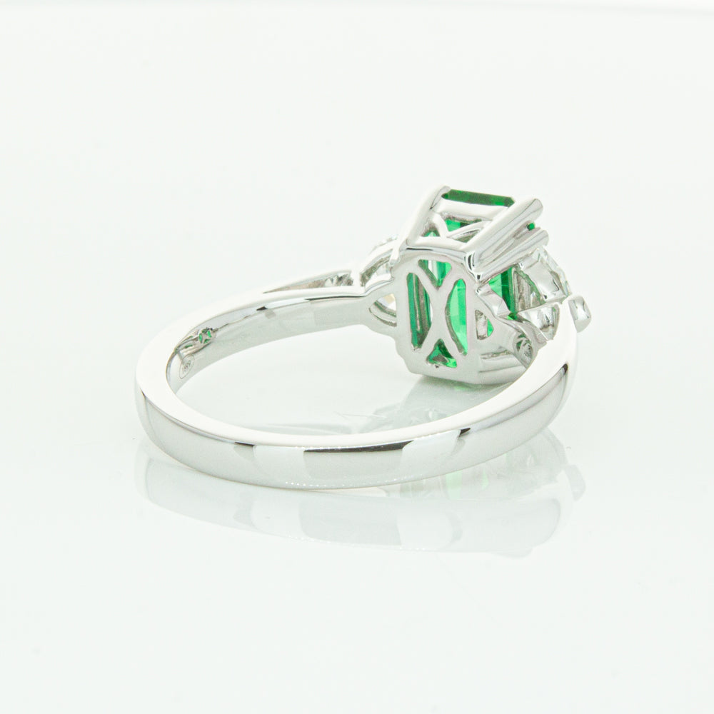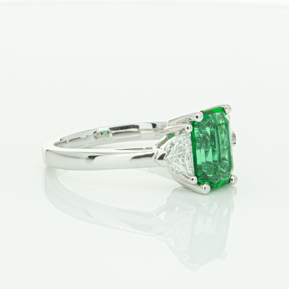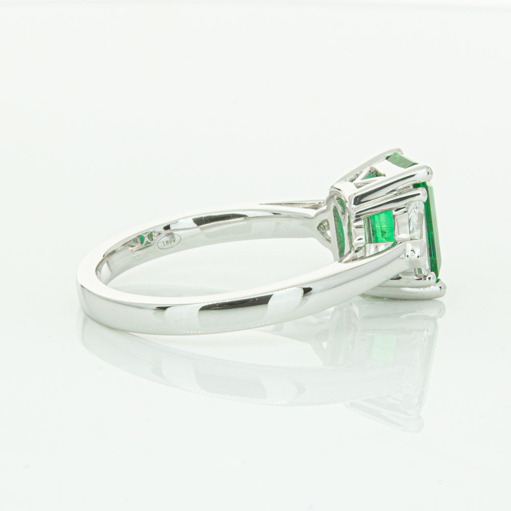 18ct White Gold Emerald & Diamond Three Stone Ring