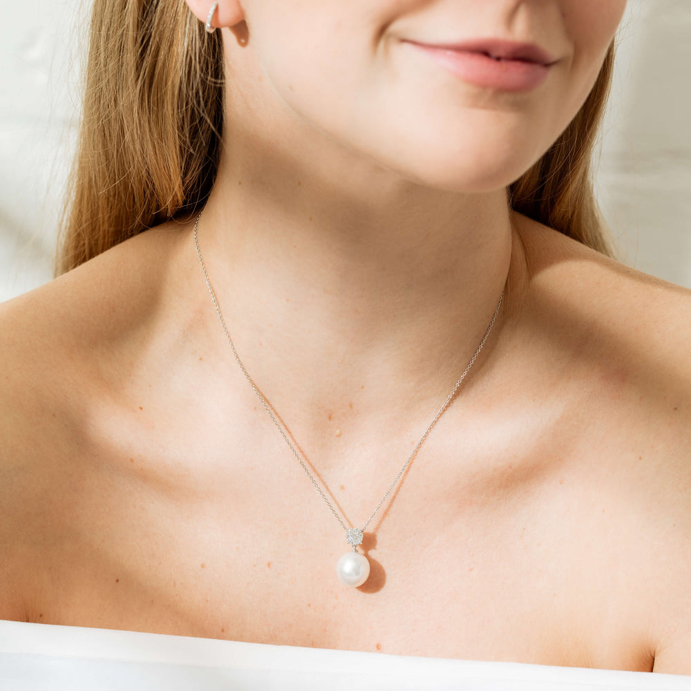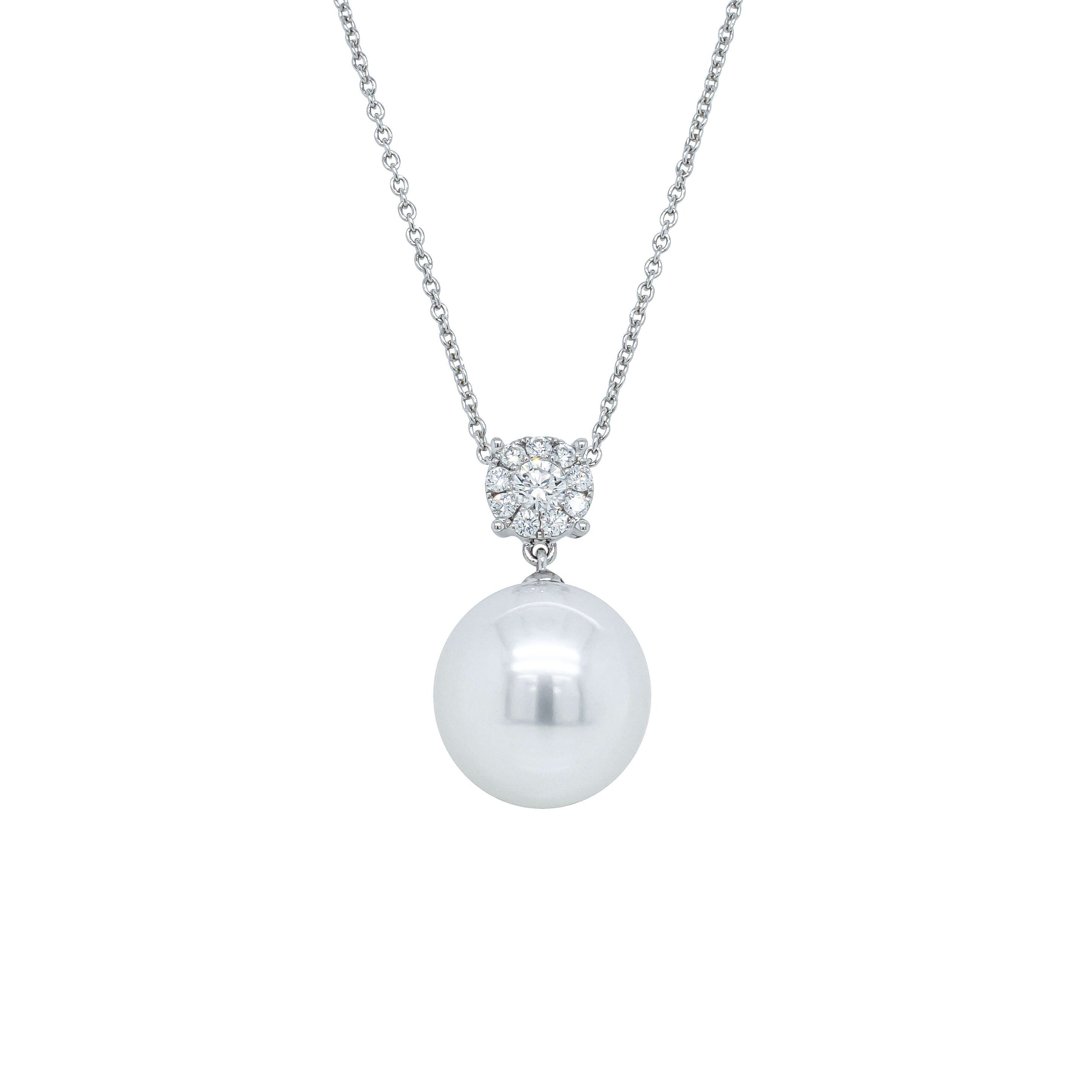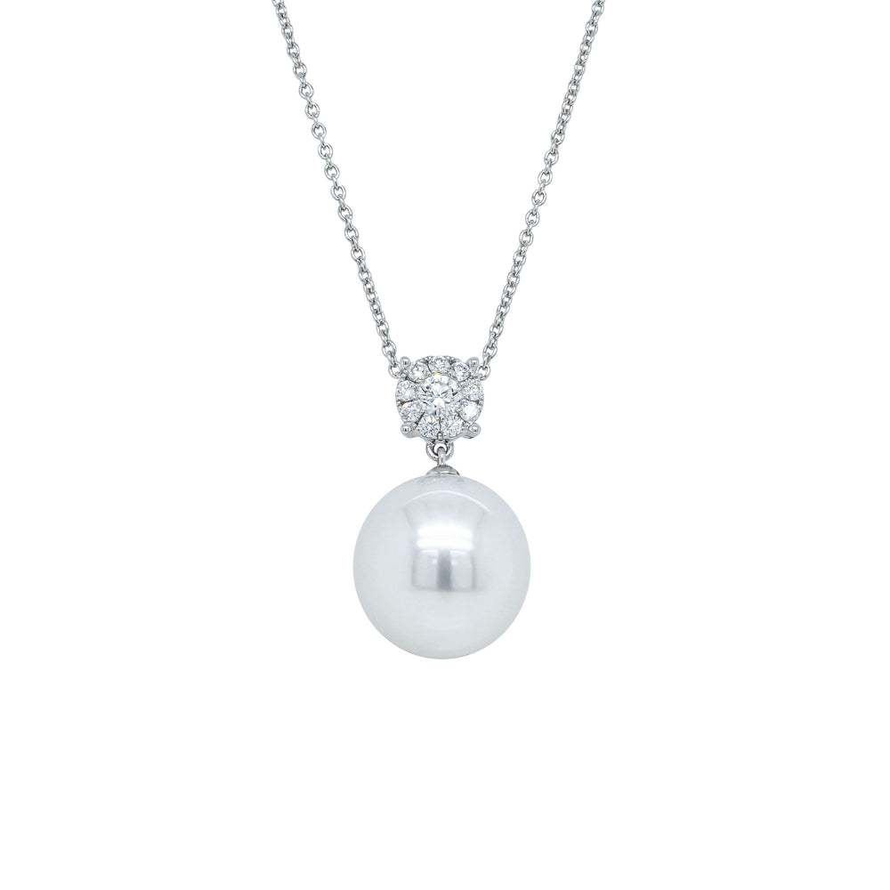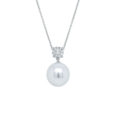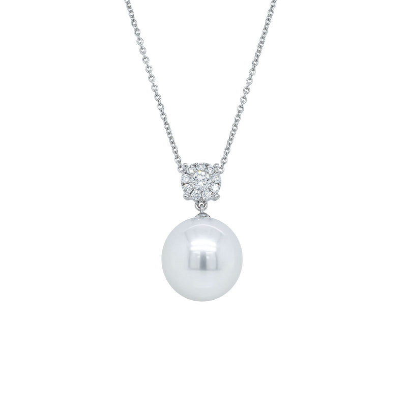 Carefully crafted in 18ct white gold from our signature 1899 collection, this gorgeous pendant boasts a spectacular 13.4mm South Sea pearl with dazzling white diamonds.
