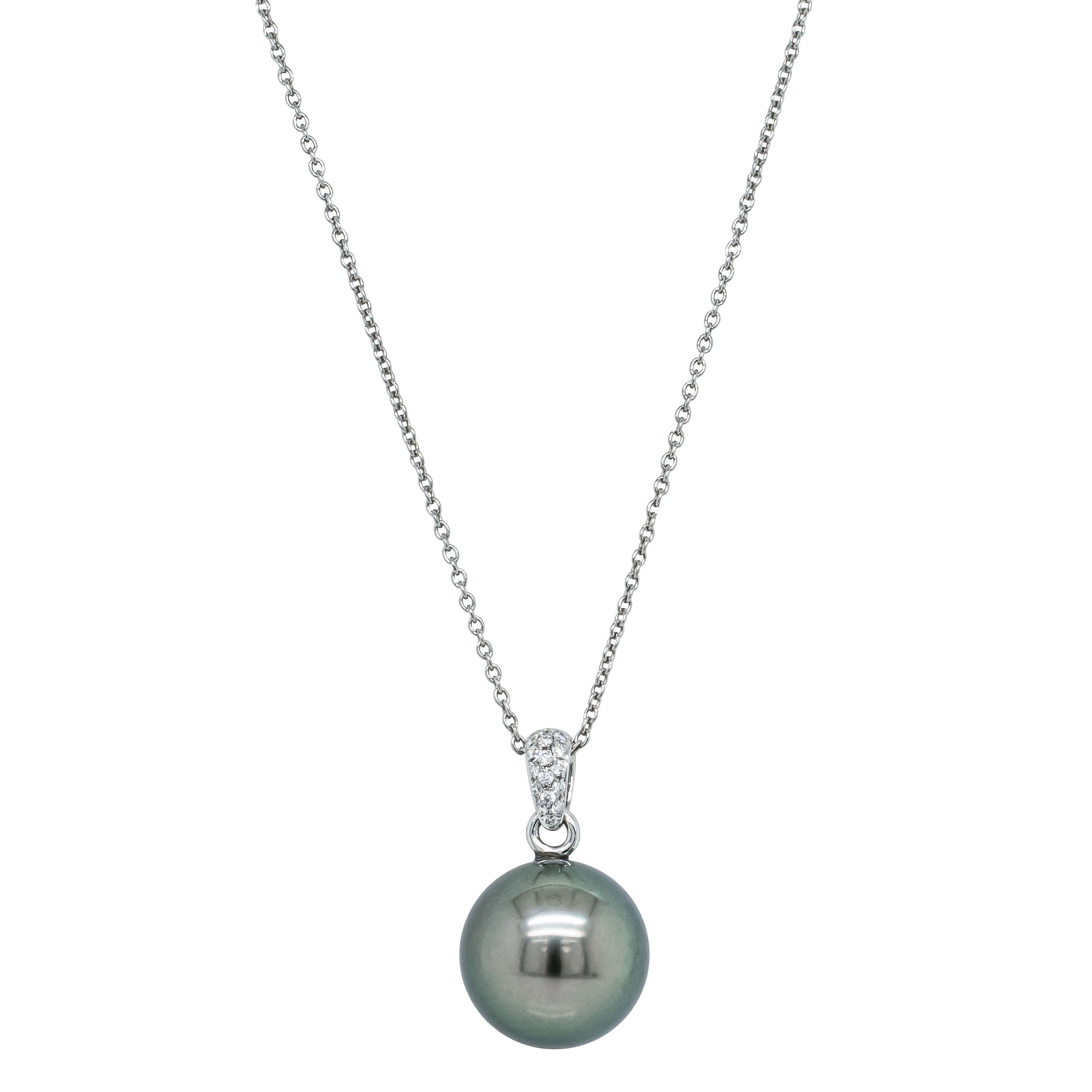 18ct White Gold 13.5mm Tahitian Pearl & Diamond Pendant