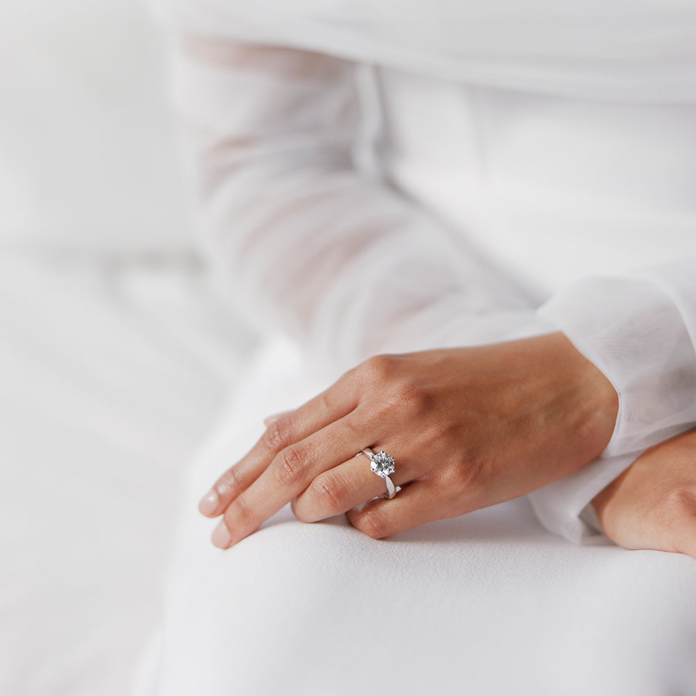 Our brightest star. Nova represents our vision of the quintessential engagement ring. It simply asks, “will you marry me?” Perfected through decades of refinement, the gently rounded shoulders softly taper leading to a finely balanced six claw rex setting securing your YES.