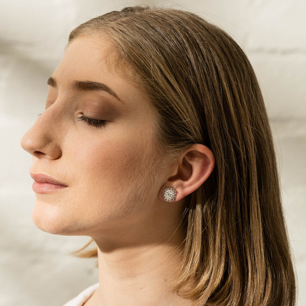 With lots of sparkle, these breathtaking diamond studs are sure to receive many compliments. This shimmering pair feature dazzling round brilliant diamonds, framed by glittering diamond halos. Crafted in luxurious 18ct white gold.