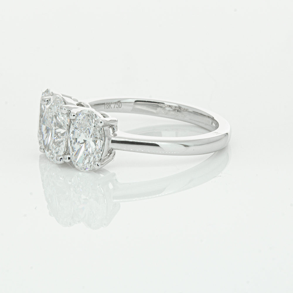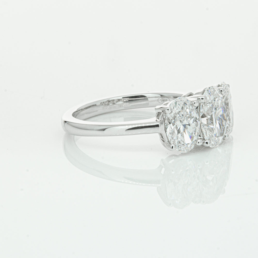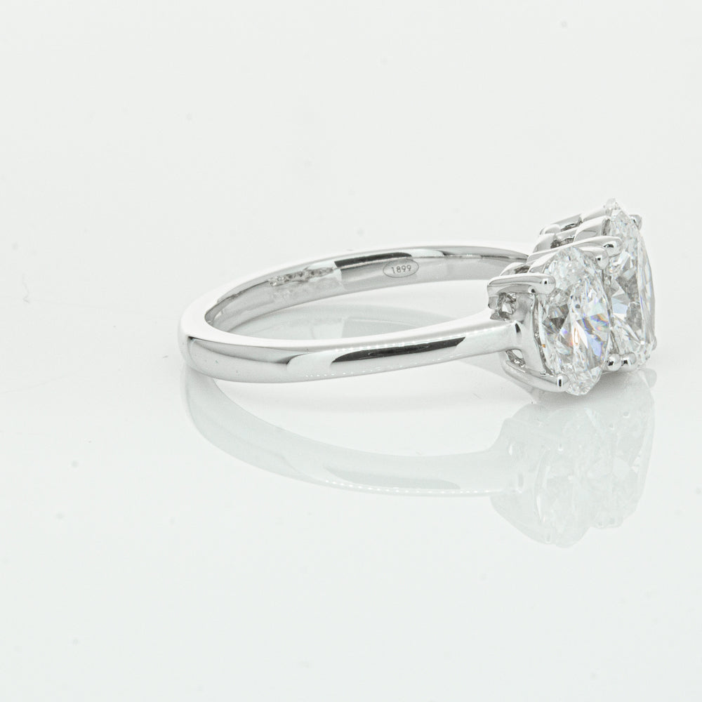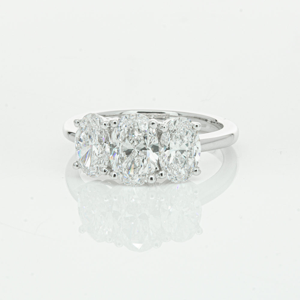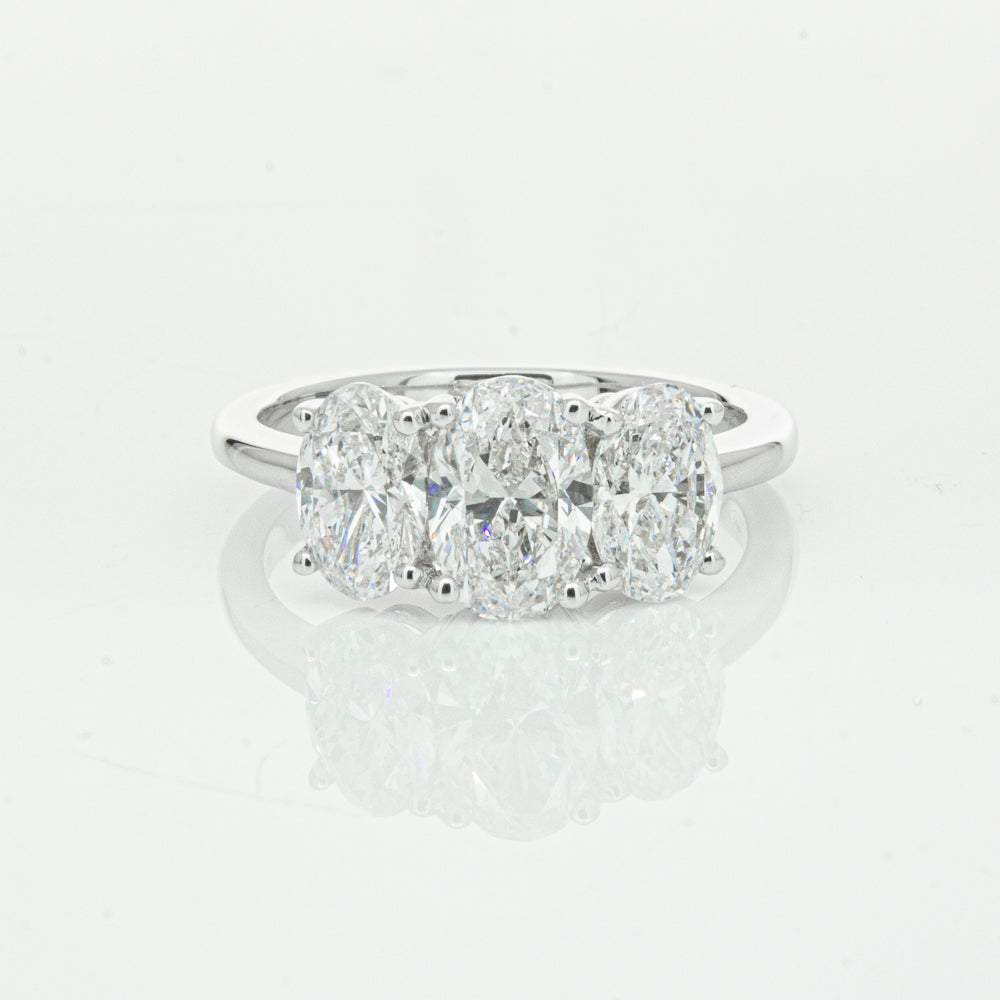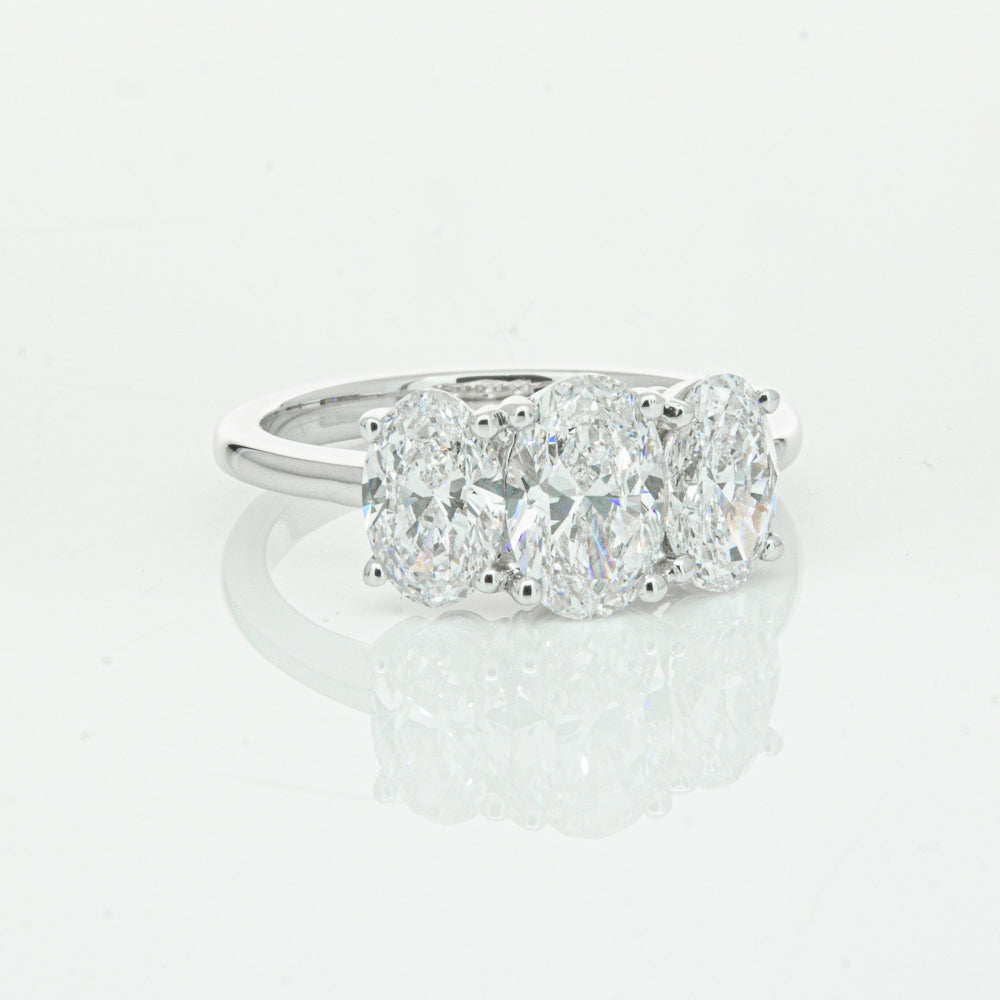 This exquisite oval diamond graduated three stone ring demonstrates sophisticated design at its finest. The refined band is crafted from our high palladium 18 carat white gold, providing enhanced wearability for a piece that deserves to be worn and enjoyed daily. Undeniably, the instant attraction is the trio of perfectly aligned brilliant oval shaped diamonds, each expertly cut and polished to bring out their unique brilliance and fire.