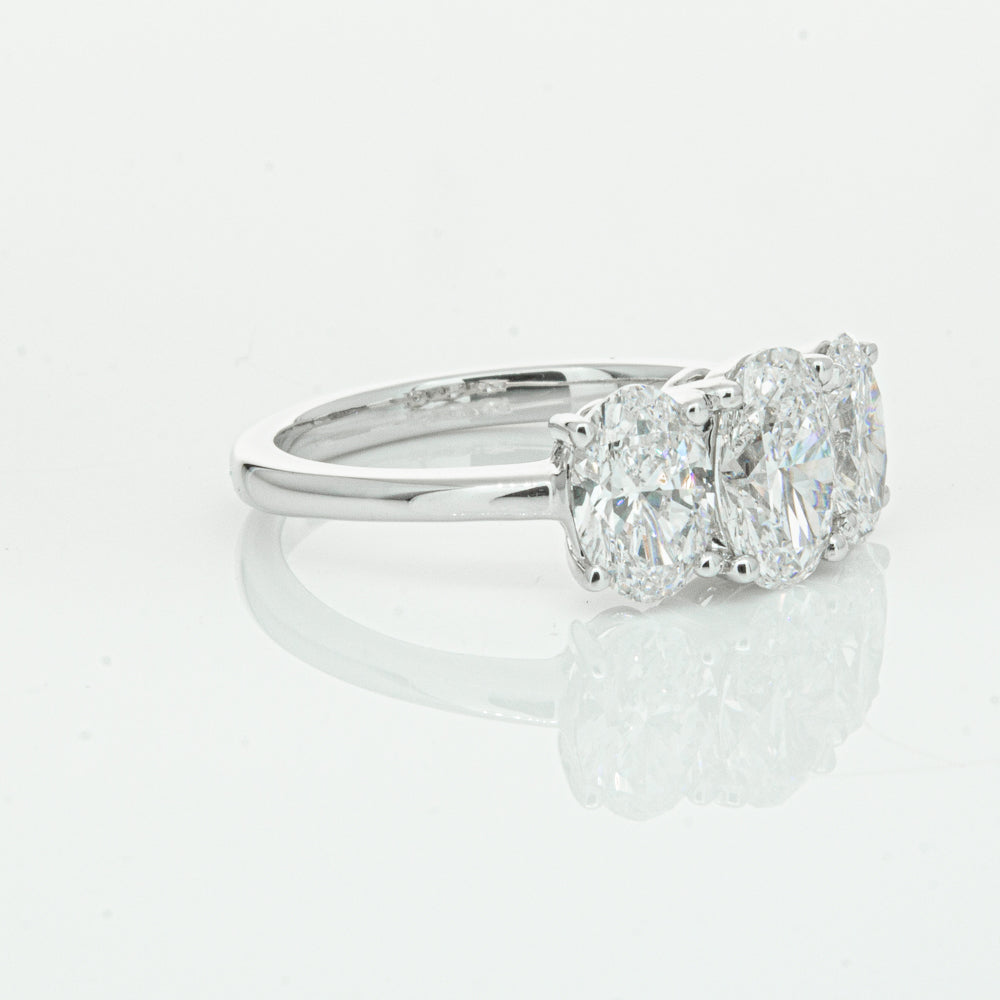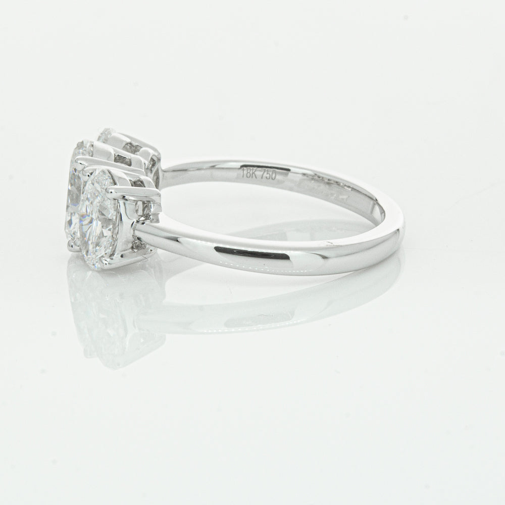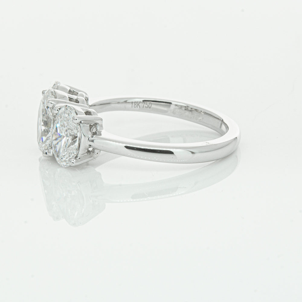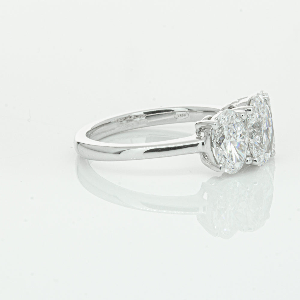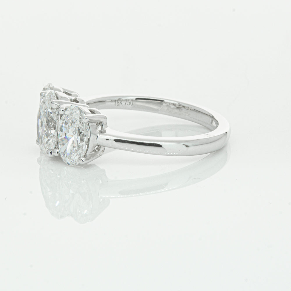 This exquisite oval diamond graduated three stone ring demonstrates sophisticated design at its finest. The refined band is crafted from our high palladium 18 carat white gold, providing enhanced wearability for a piece that deserves to be worn and enjoyed daily. Undeniably, the instant attraction is the trio of perfectly aligned brilliant oval shaped diamonds, each expertly cut and polished to bring out their unique brilliance and fire.