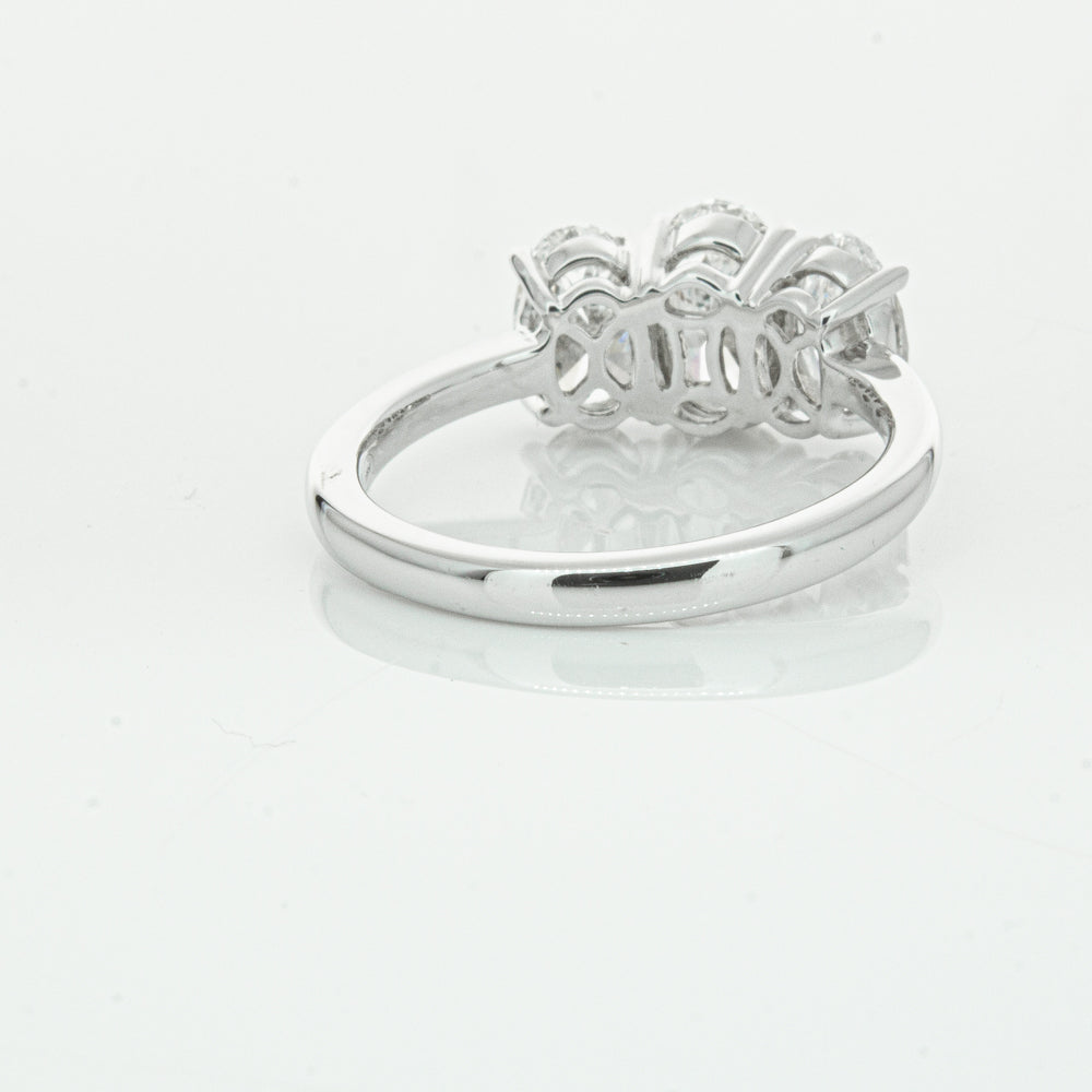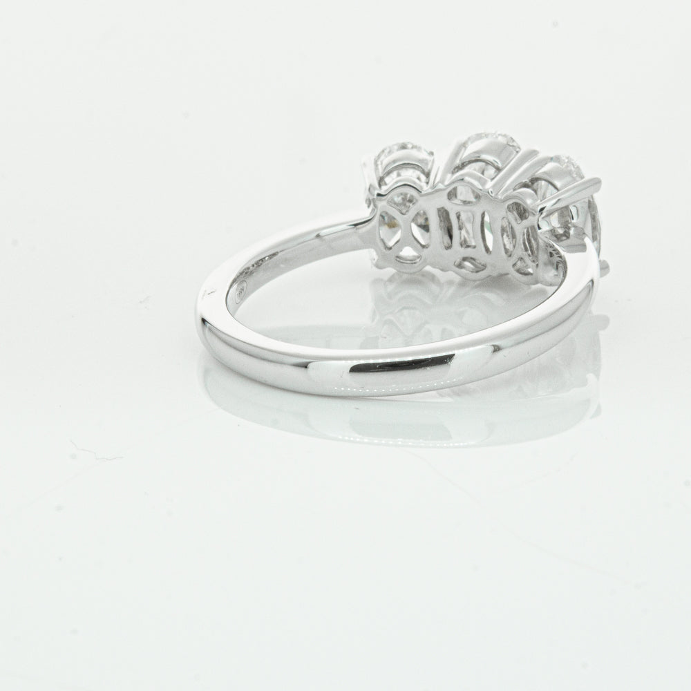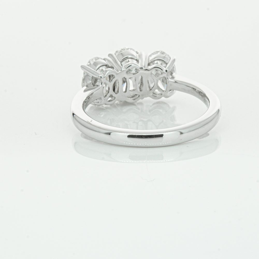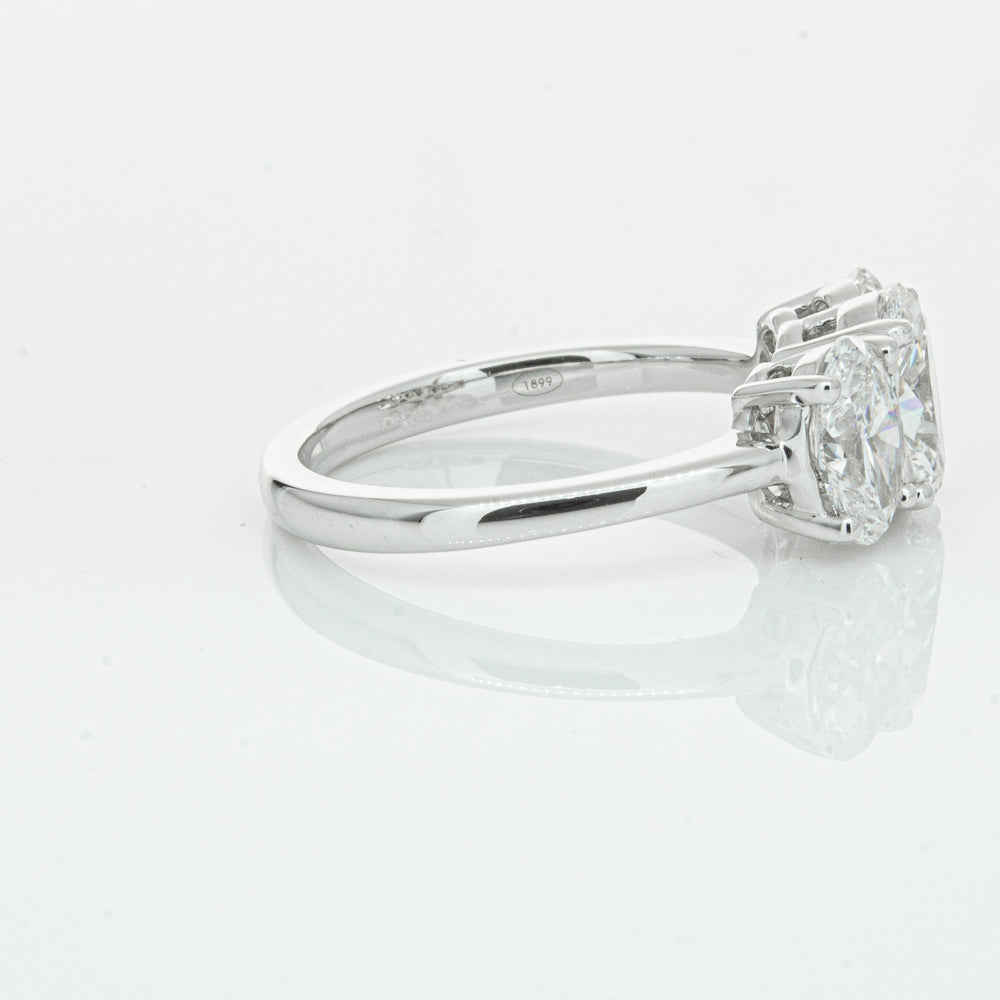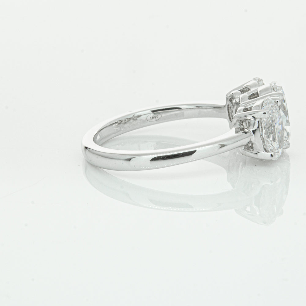 This exquisite oval diamond graduated three stone ring demonstrates sophisticated design at its finest. The refined band is crafted from our high palladium 18 carat white gold, providing enhanced wearability for a piece that deserves to be worn and enjoyed daily. Undeniably, the instant attraction is the trio of perfectly aligned brilliant oval shaped diamonds, each expertly cut and polished to bring out their unique brilliance and fire.