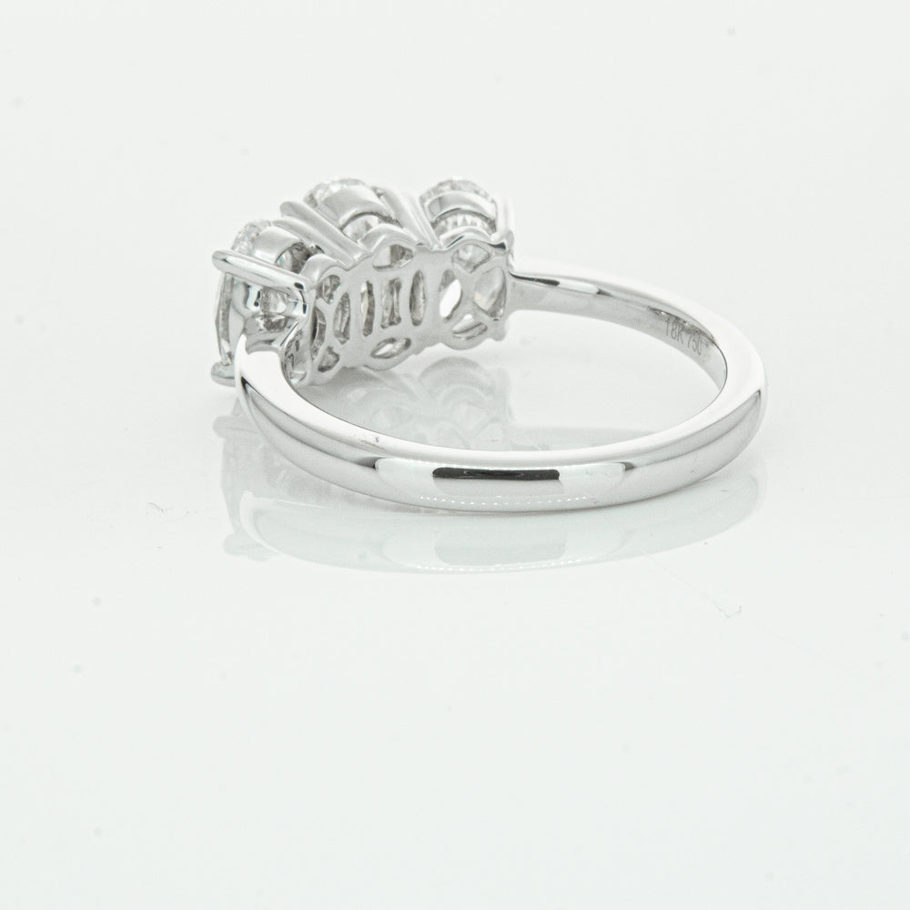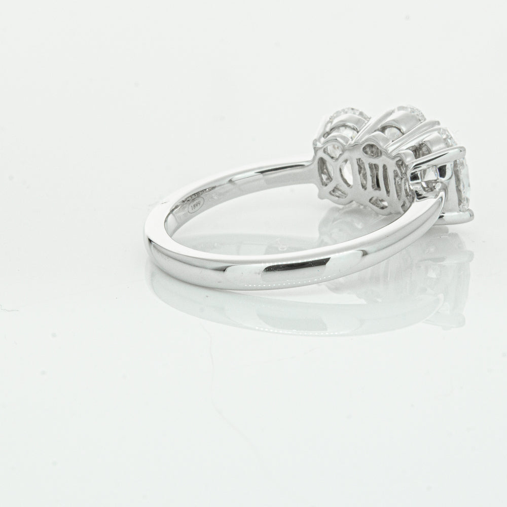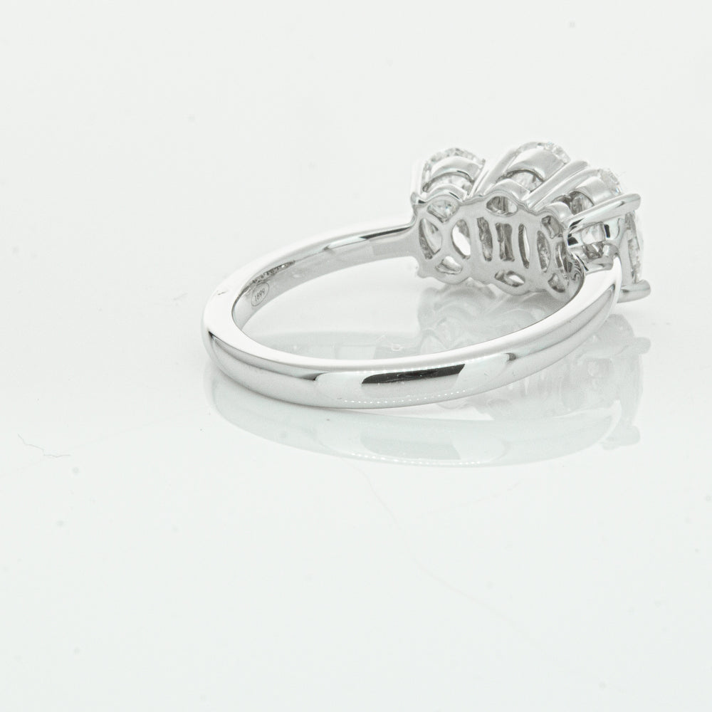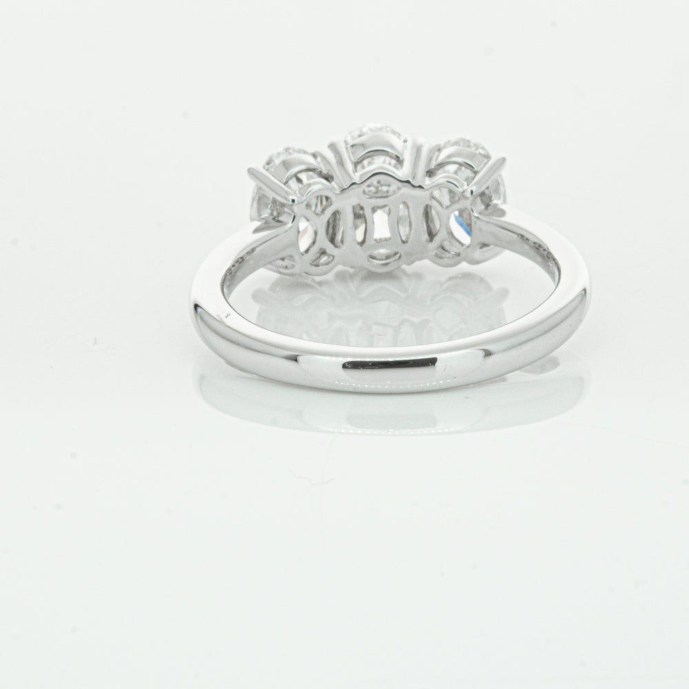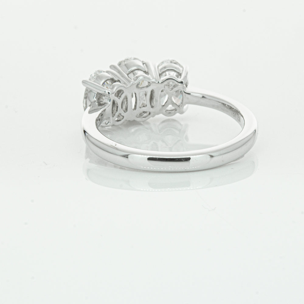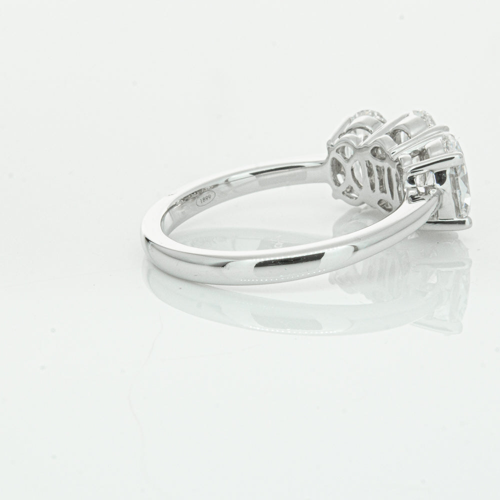 This exquisite oval diamond graduated three stone ring demonstrates sophisticated design at its finest. The refined band is crafted from our high palladium 18 carat white gold, providing enhanced wearability for a piece that deserves to be worn and enjoyed daily. Undeniably, the instant attraction is the trio of perfectly aligned brilliant oval shaped diamonds, each expertly cut and polished to bring out their unique brilliance and fire.